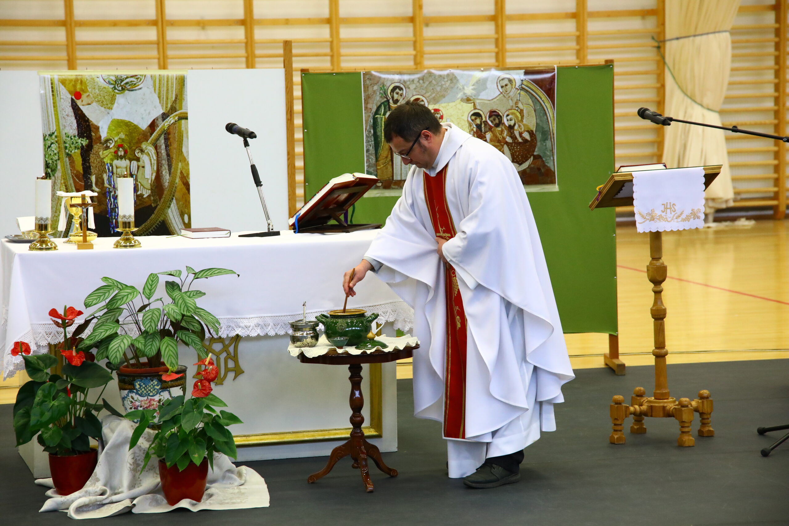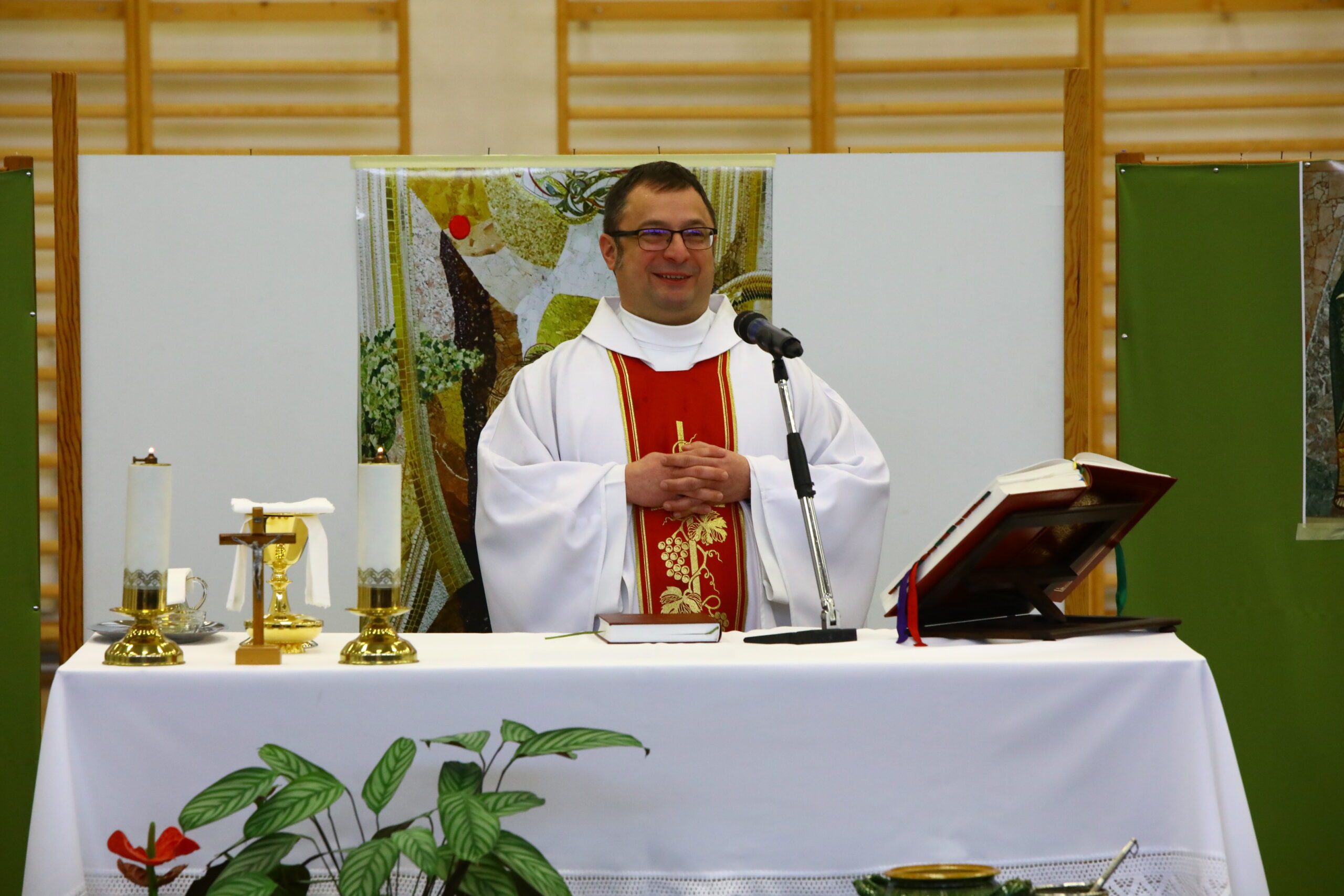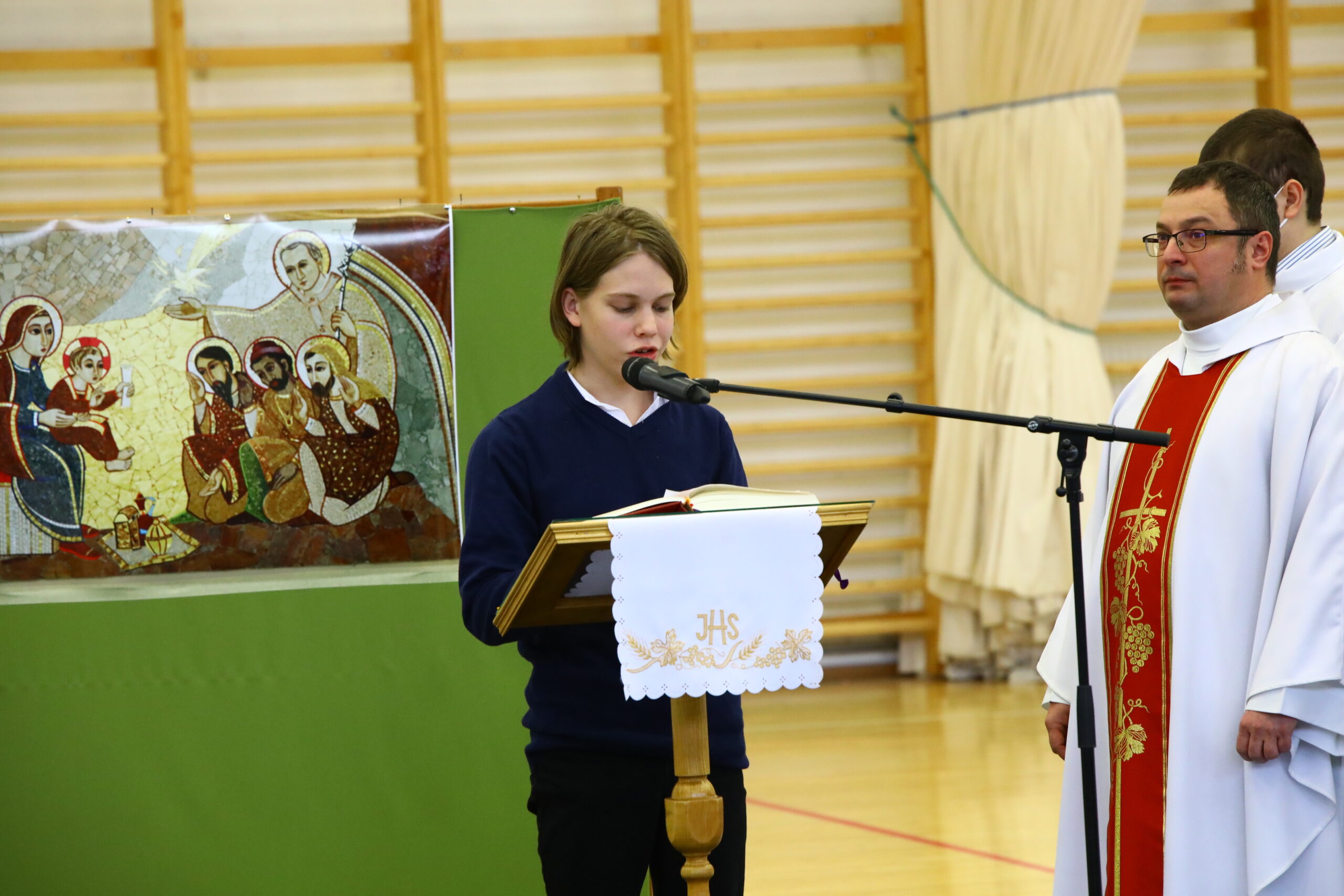 A napkeleti bölcsek eljövetelét, Jézus megkeresztelkedését, illetve csodatételét a kánai menyegzőn Marko Ivan Rupnik jezsuita képzőművész mozaikjainak reprodukciói hirdették a diákoknakk. Az általános iskolások és óvodások szentmiséjében e három jelentést is értelmezték a gyermekek János atya segítségével.  Az Úr imáját legkisebbjeink példát adva a legnagyobbaknak is, tiszta szívvel és bátran imádkozták, a felolvasás szolgálatát tanító nénik, a könyörgések felolvasását a 8. osztályos diákjaink vállalták jó szívvel. Köszönjük cselekvő részvételüket az ünneplésben.