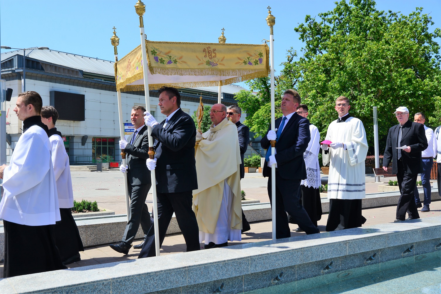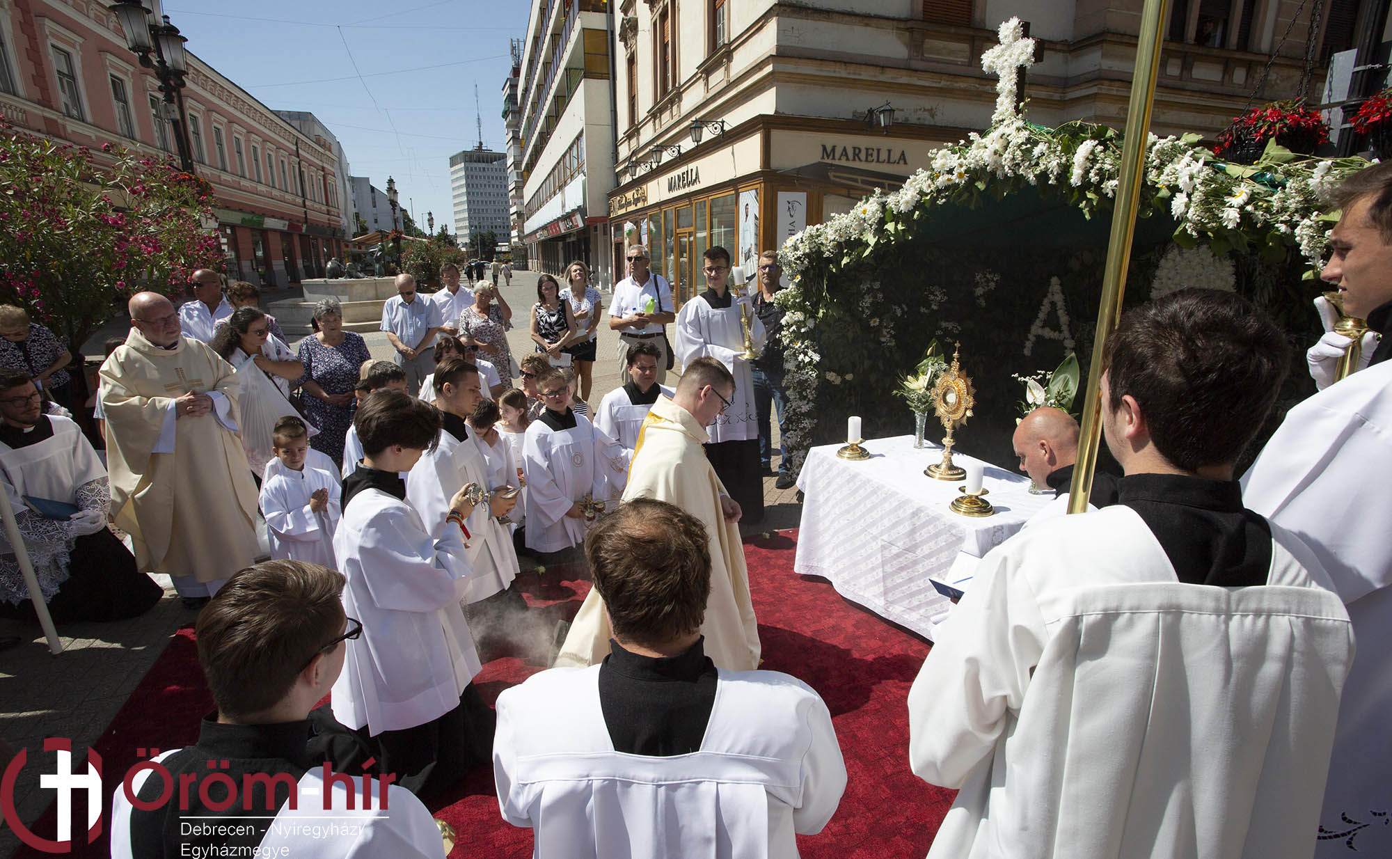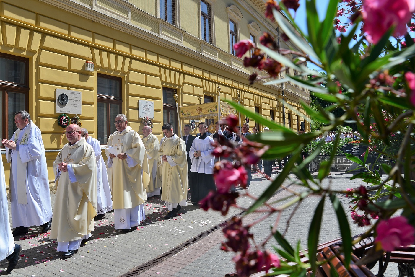 Az ünnepi szentmise a szokásos útvonalon körmenettel, majd szentségi áldással zárult. Külön öröm az idén elsőáldozó gyermekek részvétele az úrnapi körmeneten, akik virágszirmot szórnak az Eucharisztia elé.
