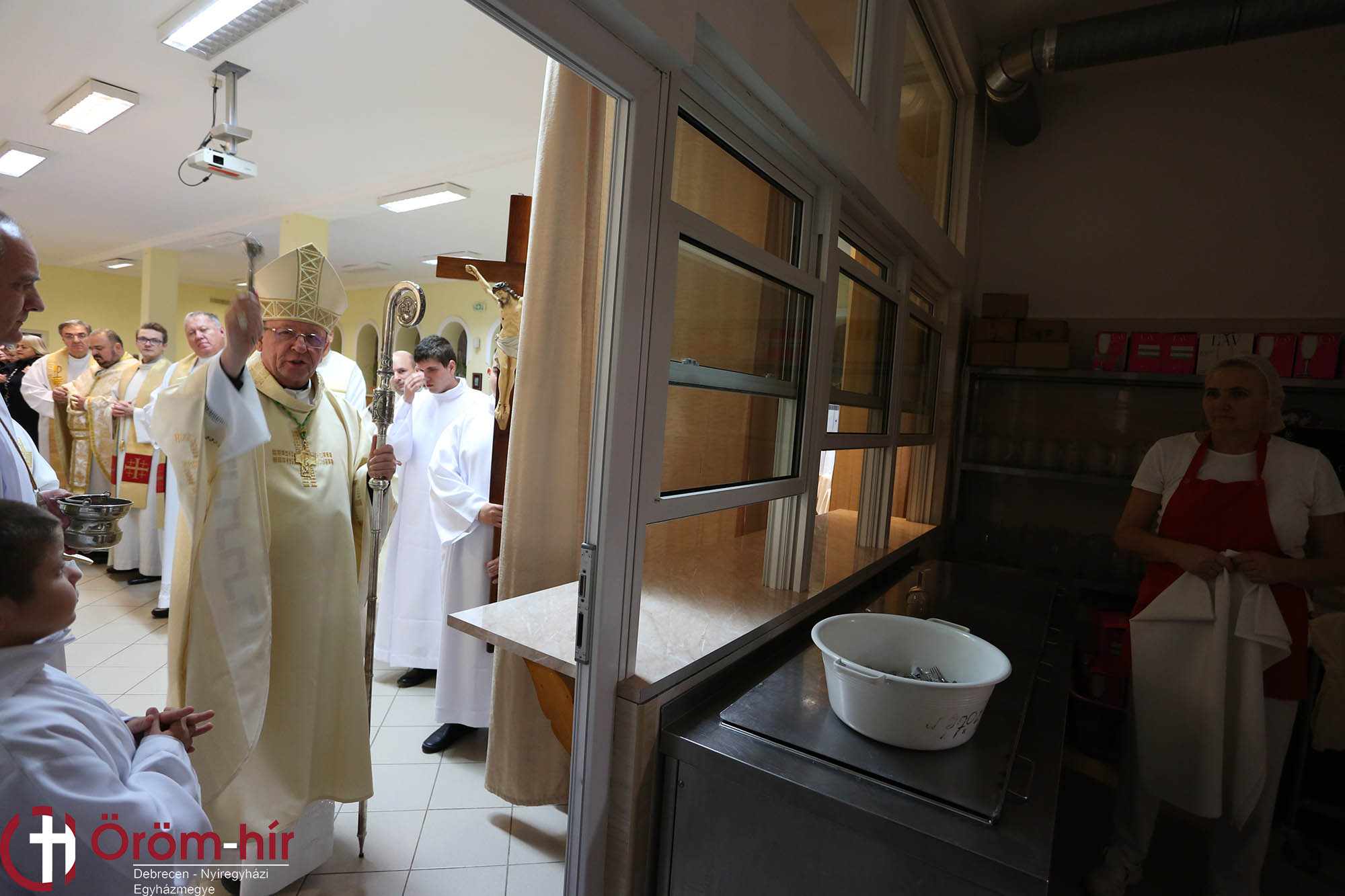 A főpásztor ünnepi szentmisét mutatott be az intézmény tornacsarnokában, majd megáldotta az új intézményrészeket: a konyhát és a felújított két tantermet, amelyekben ezután hittanórára várják a diákokat. A hittantermek még az 1700-as években megépült épületszárny részei, így a képzelet szárnyra kaphat a falakon látható bibliai tájakat idéző térképek segítségével, de az ódon, de barátságos környezet is segíti majd a diákokat az elmélyülésben.