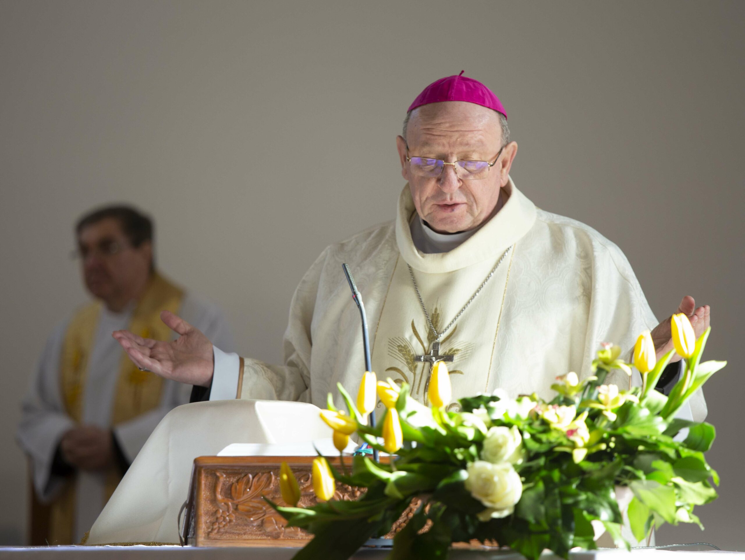 Jézus azt mondja: „Nyílj meg!” (ld. Mk 7,31-37). Megnyitotta a süketnéma hallását, a beszédét, a szívét és most kérjük mi is, hogy nyissa meg a szívünket, érintsen meg bennünket – kezdte elmélkedését Palánki Ferenc megyéspüspök, majd rámutatott arra, hogy az érintés kifejezés az elhangzott evangéliumi és az ószövetségi (ld.Ter 3,1-8) szakaszban egyaránt megtalálható.