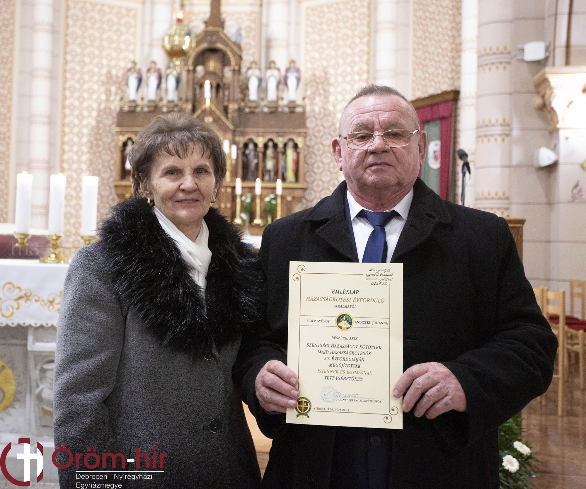 Jubiláns házaspárokért és családjaikért ajánlották fel február 18-án Nyíregyházán a Magyarok Nagyasszonya-társzékesegyházban bemutatott szentmisét, hálát adva Istennek, hogy a házaspárok éveken át a Szeretetbe kapaszkodnak.