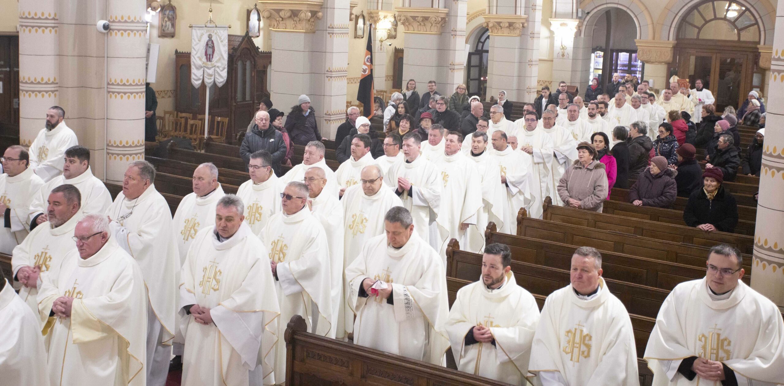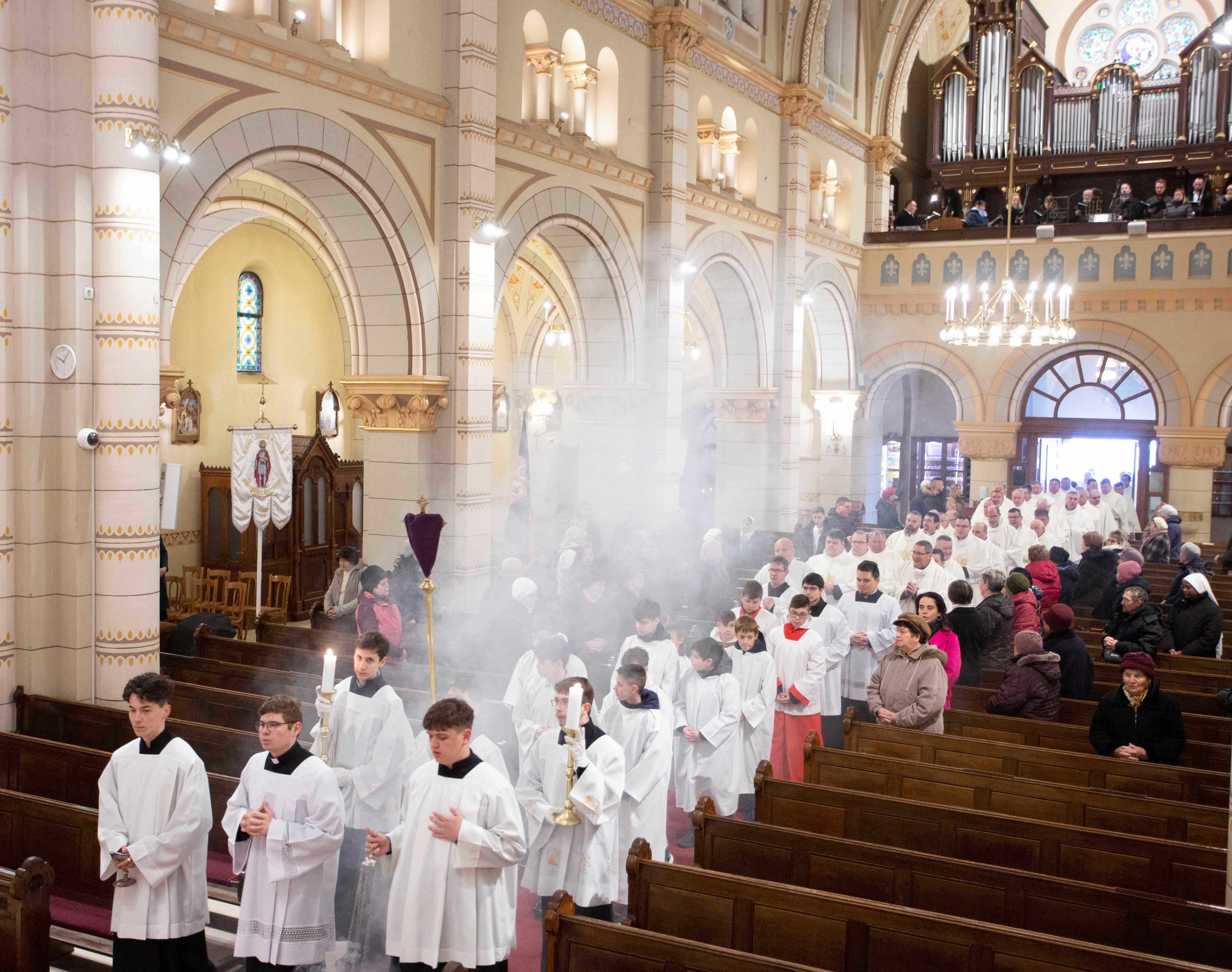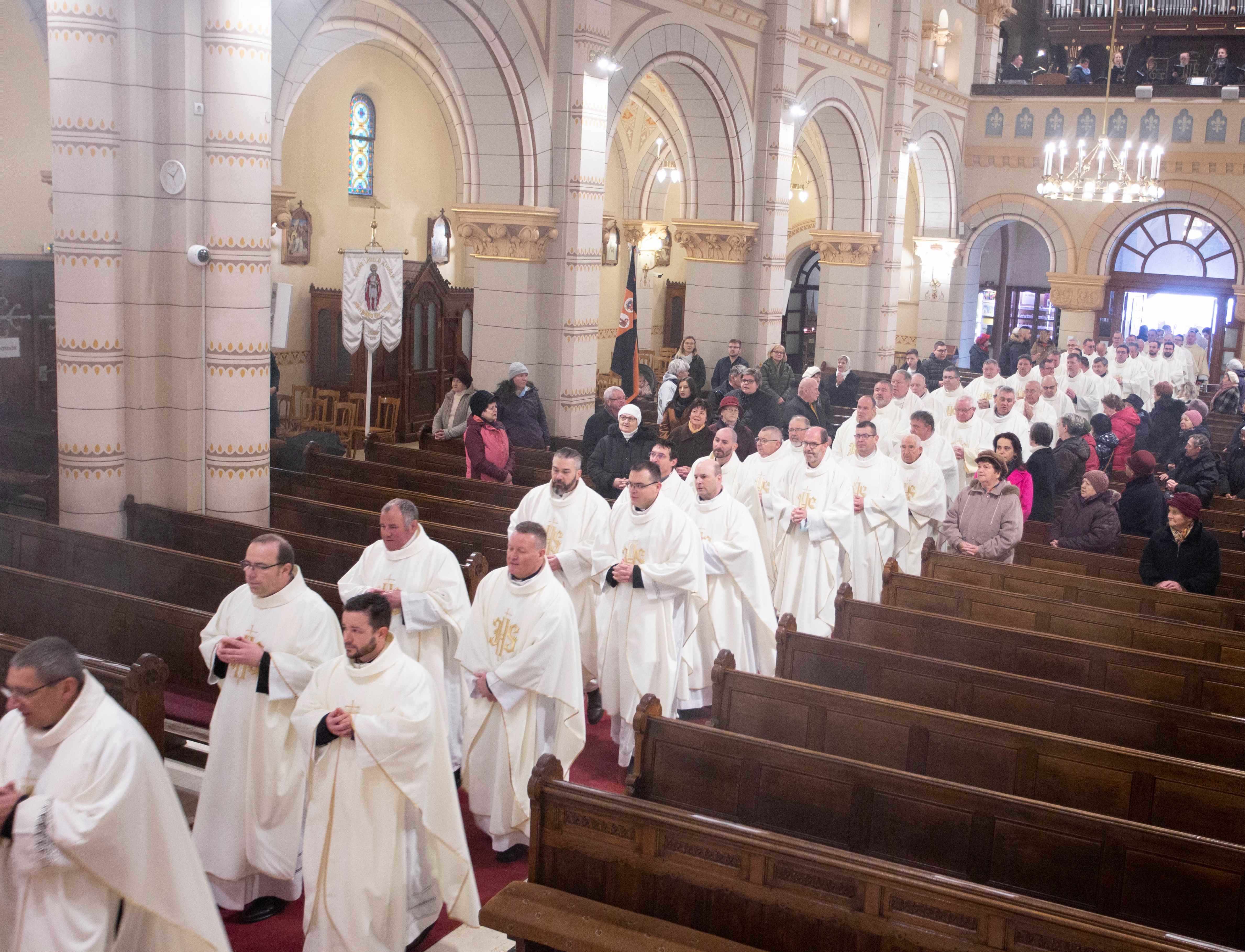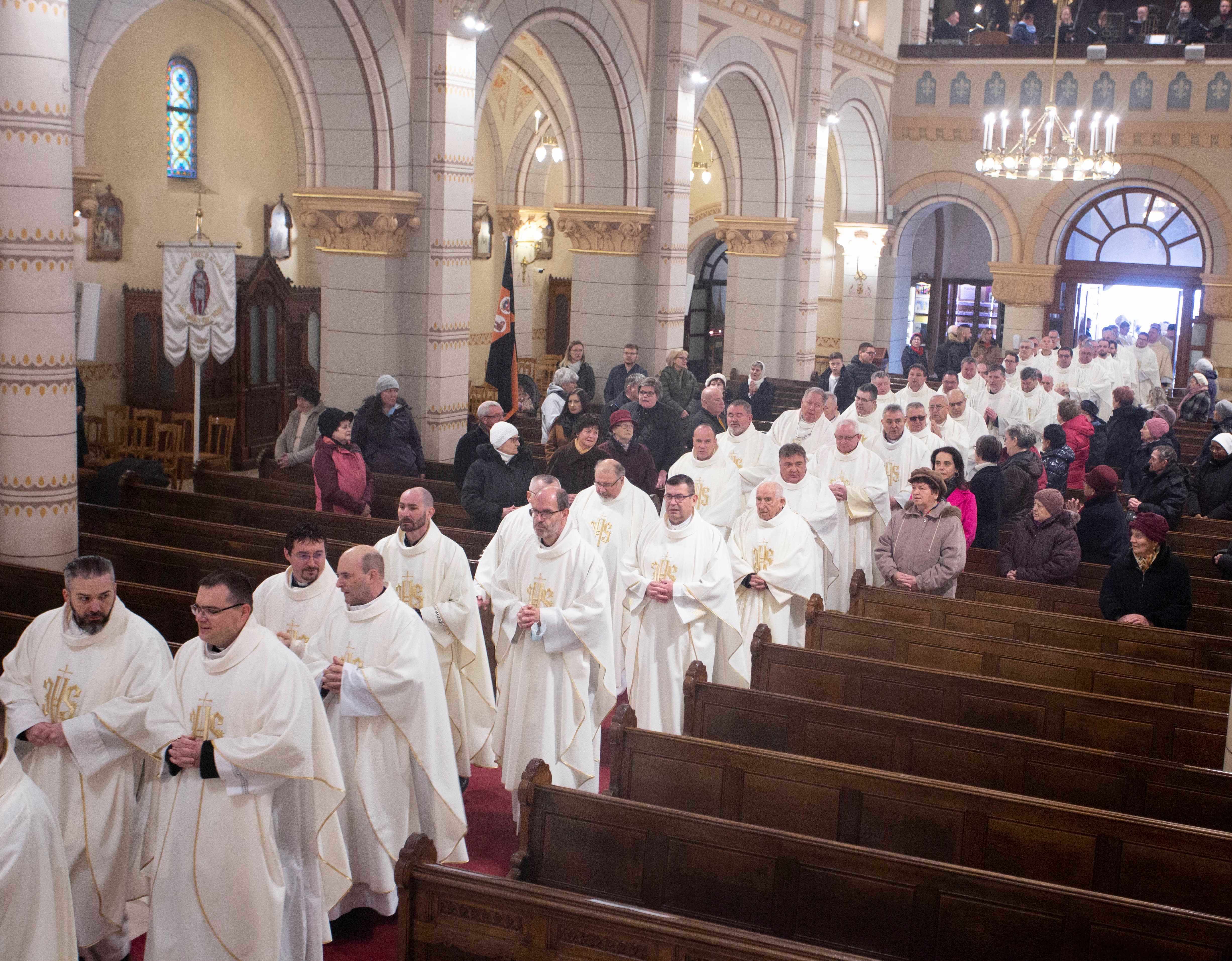 Szemléljük Őt, hogy milyen törékeny az Isten, Aki mégis szeret bennünket, minden emberi gyöngeségünkkel és gyarlóságainkkal együtt, vagy annak ellenére, és kérjük, hogy képviseljük az Ő szeretetét, legyünk az Ő szolgái, utánzói. Az Efezusi levélben írja Szent Pál apostol: „Kövessétek Isten példáját”, vagyis legyetek Isten utánzói. Utánozzuk a törékeny Istent, kössük hozzá az életünket, és kérjük, hogy segítsen bennünket egy életen át hűségesen szolgálni és a szeretetben járni és élni” – fejezte be elmélkedését Palánki Ferenc megyéspüspök, majd kérte a paptestvéreit, hogy együtt újítsák meg papi ígéreteiket, fogadalmukat.