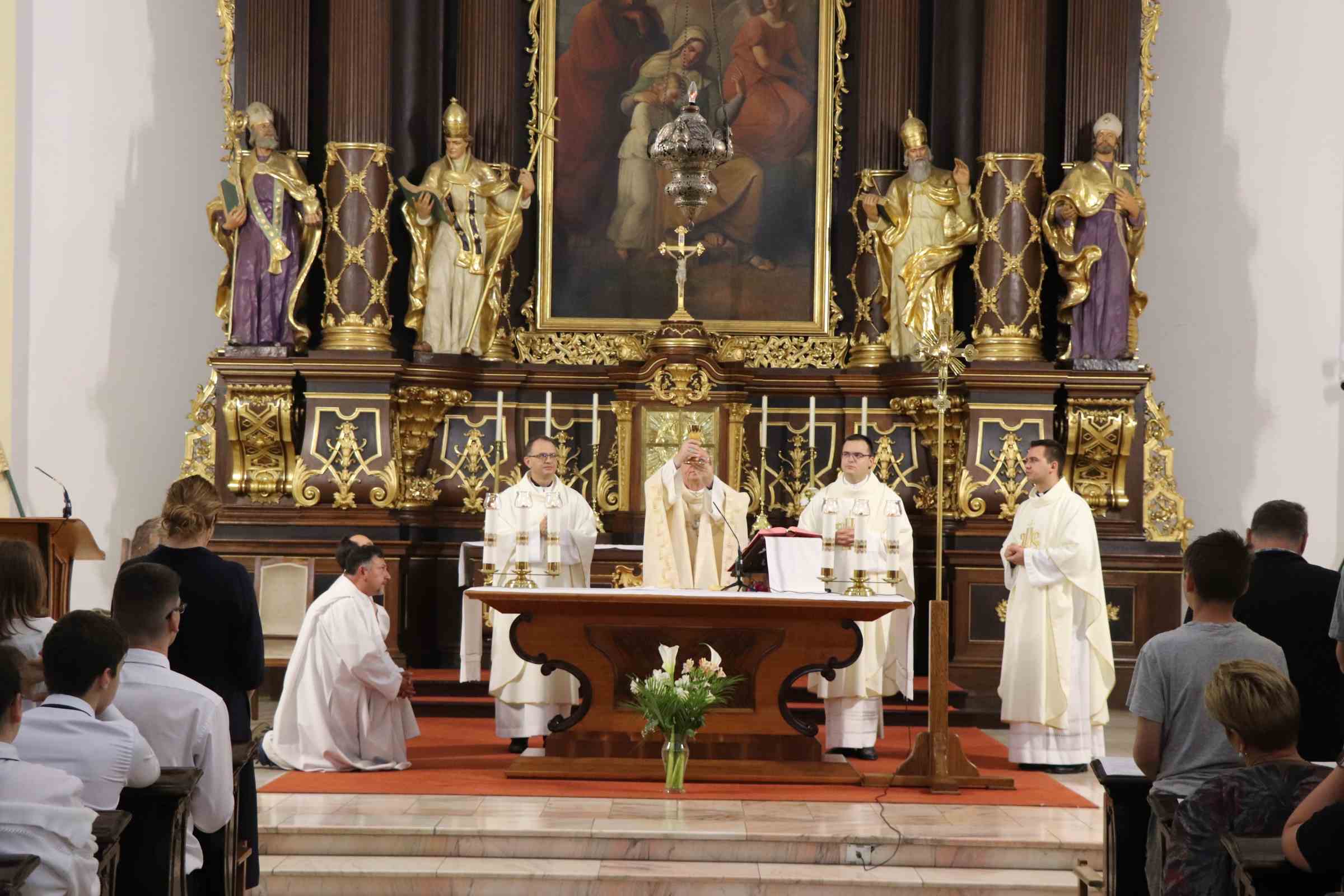 A hálaadó szentmisét a Szent Anna Székesegyházban ünnepeltük, Palánki Ferenc megyéspüspök főcelebrálásával, a debreceni Szent Anna Főplébánia ifjúsági zenekarának szolgálatával. Homíliájában főpásztorunk egyszerre szólt az ott velünk együtt ünneplő Szent József Óvoda, Általános Iskola, Gimnázium és Kollégium tanévet záró diákjaihoz, kérdésekkel is megszólítva őket, és hozzánk, hitoktatókhoz.