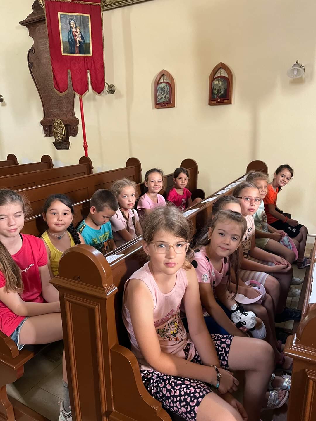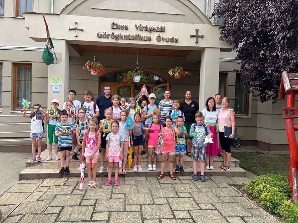 A harmadik nap Máriapócsra zarándokoltunk. Délelőtt a görög katolikus bazilika Kegyoltáránál Papp Tamás fehérgyarmati plébános atya mutatott be szentmisét és arra hívta fel a figyelmet, hogy mit jelent Antoine de Saint–Exupéry, A kis herceg című könyvének egyik jól ismert mondata, amit a róka mondott: „Jól csak a szívével lát az ember.” Ehhez tette hozzá Ferenc pápának azt a fontos állítását, amely szerint a szívvel lehet látni és hallani. Ennek megvalósításához kérték a gyerekek a Szűzanya közbenjárását, amikor a kegyképnél értetkőztek. Utána az atya azt is megmutatta, hogy még milyen fiatalos. Az eső ellenére bevettük a kilátót a Szent II. János Pál téren, és meglátogattuk Pásztor Károly atyát, ahol egy kicsit megpihentünk: a római kis templomban a lelket, a plébánián pedig a testet frissítettük az atya szeretetének köszönhetően. Délután a máriapócsi Ékes Virágszál Görög Katolikus Óvoda vezetője, Porcelán-Ványi Melinda és két kolleganője játékok és kézműves foglalkozások segítségével mélyítették bennünk a nap gondolatát, amit a Szentírásban így olvasunk: „Úgy szeressétek egymást, amint én szerettelek titeket” (Jn 13,34).