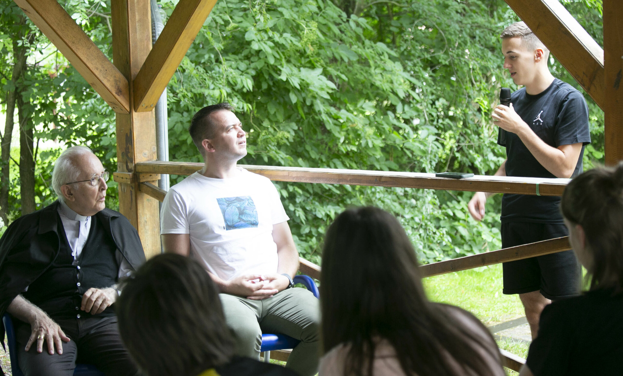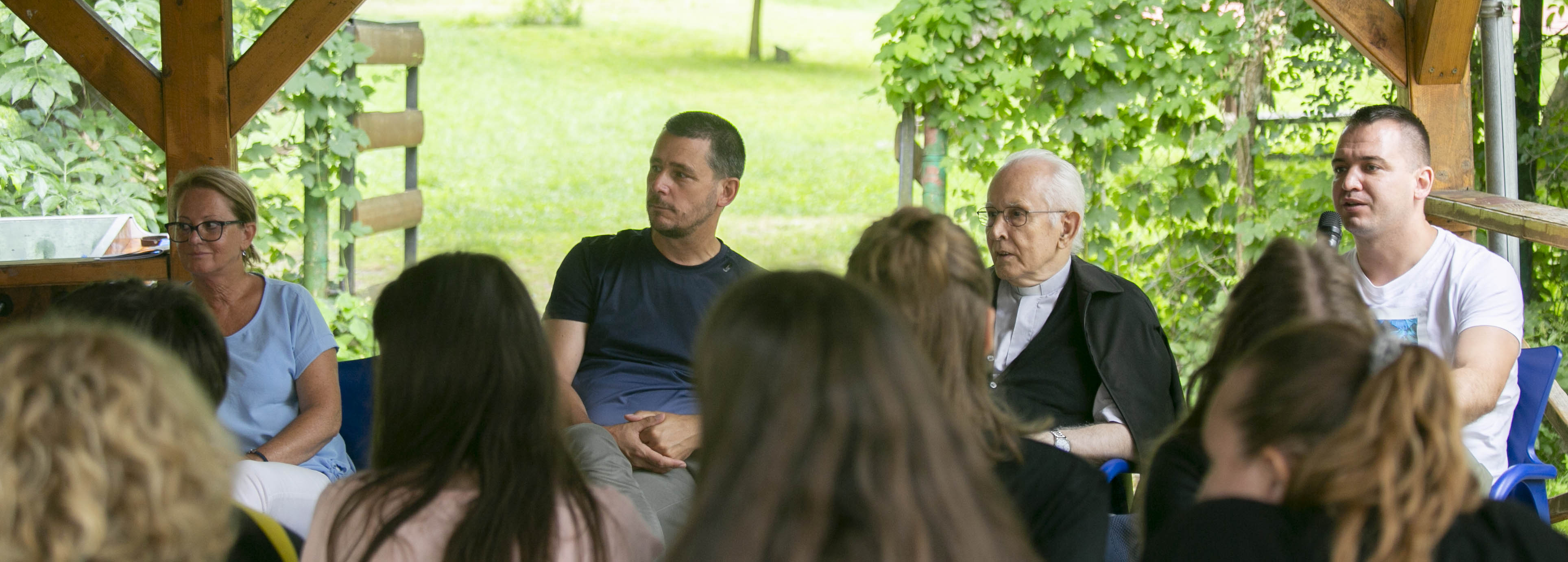 Kedden, az idén gyémántmisés Bosák Nándor nyugalmazott püspök atya, az egyházmegye első püspöke, Kokas Sándor, a püspöki hivatal több feladatot is ellátó munkatársa és Kovács Ágnes, az egyházmegye sajtómunkatársa érkezett a táborba, akik Törő András atya, majd a fiatalok által feltett kérdésekre válaszoltak a kerekasztal beszélgetésen.