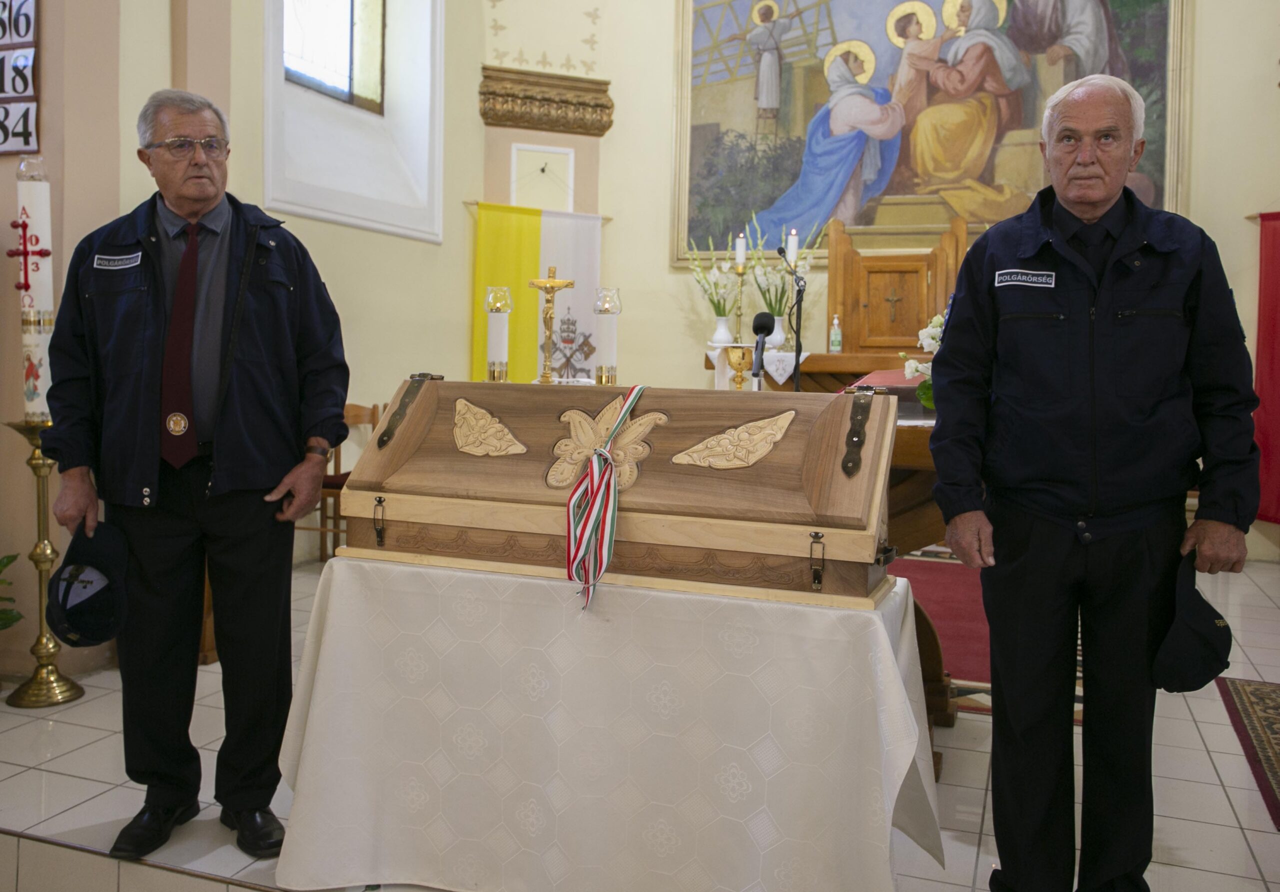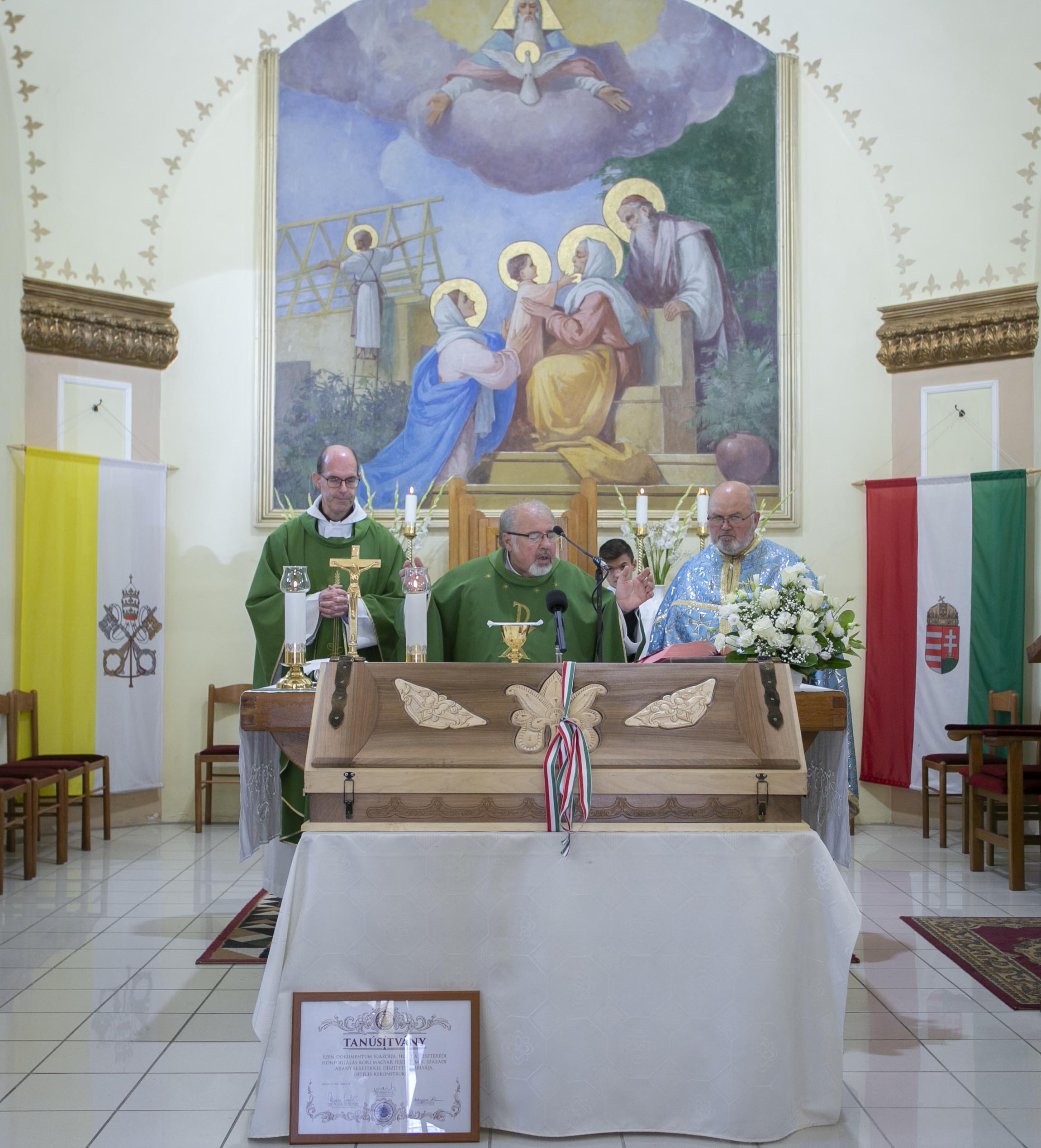 „A kard jelenlétében mutatjuk be a béke áldozatát, amelyet Jézus Krisztus hozott értünk. »Engesztelődjetek ki szívből egymással!« – hangzik el a felszólítás a liturgiában minden szentmisében. Hozzuk meg ezt az áldozatot, hiszen Krisztus ezért a békéért halt meg és hozta meg értünk az ő áldozatát!”– nyomatékosította a plébános.