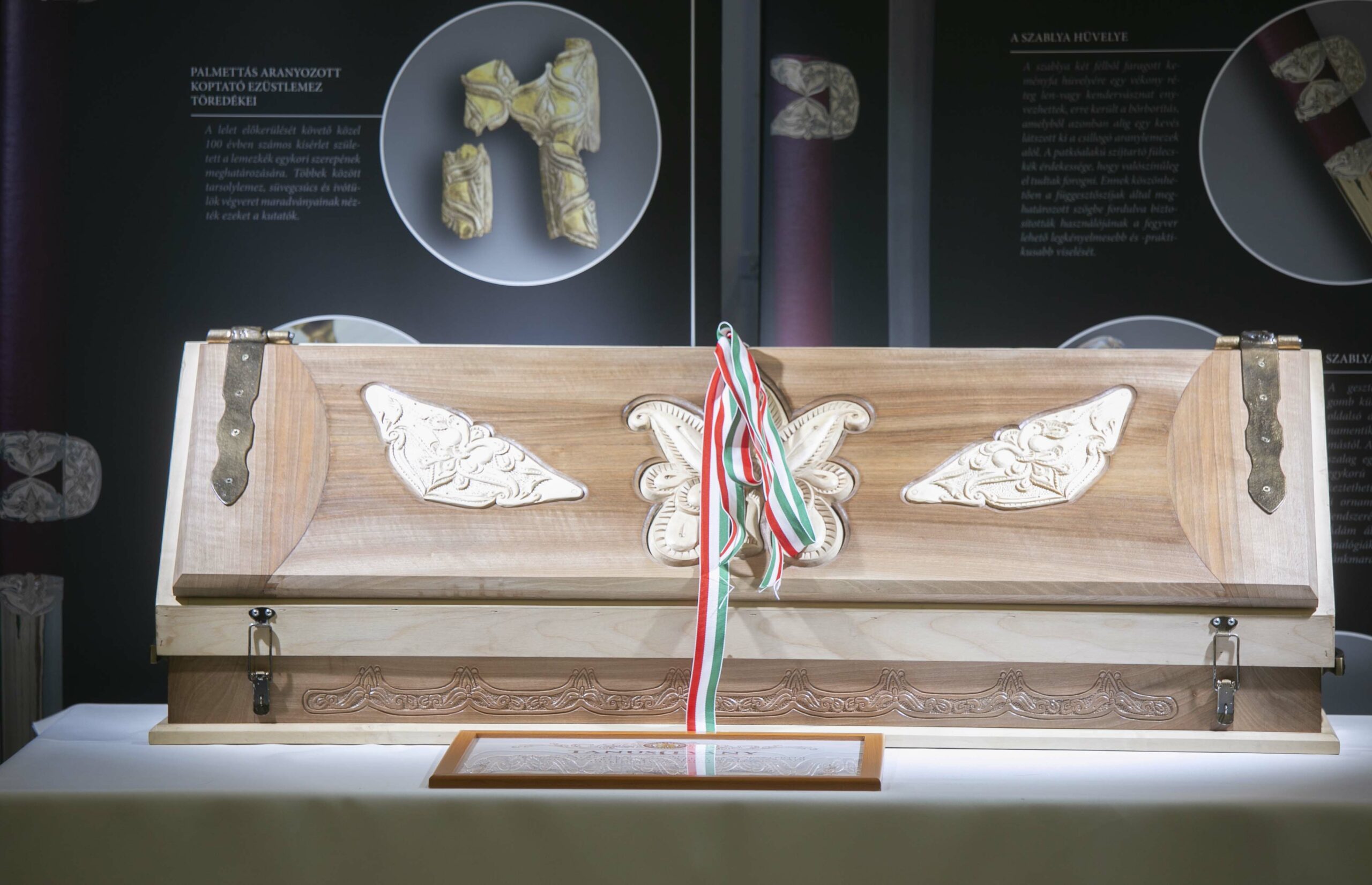A régészek leírása alapján létrejött remekmű Szabó István hagyományőrző fegyverkovács, népi iparművész és Strohmayer Ádám ötvösművész munkáját dicséri.