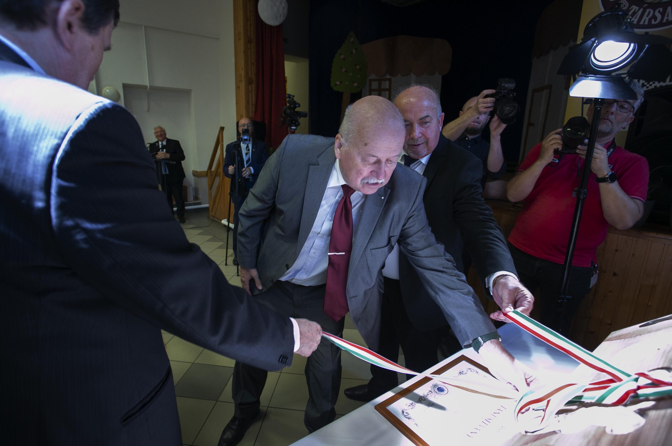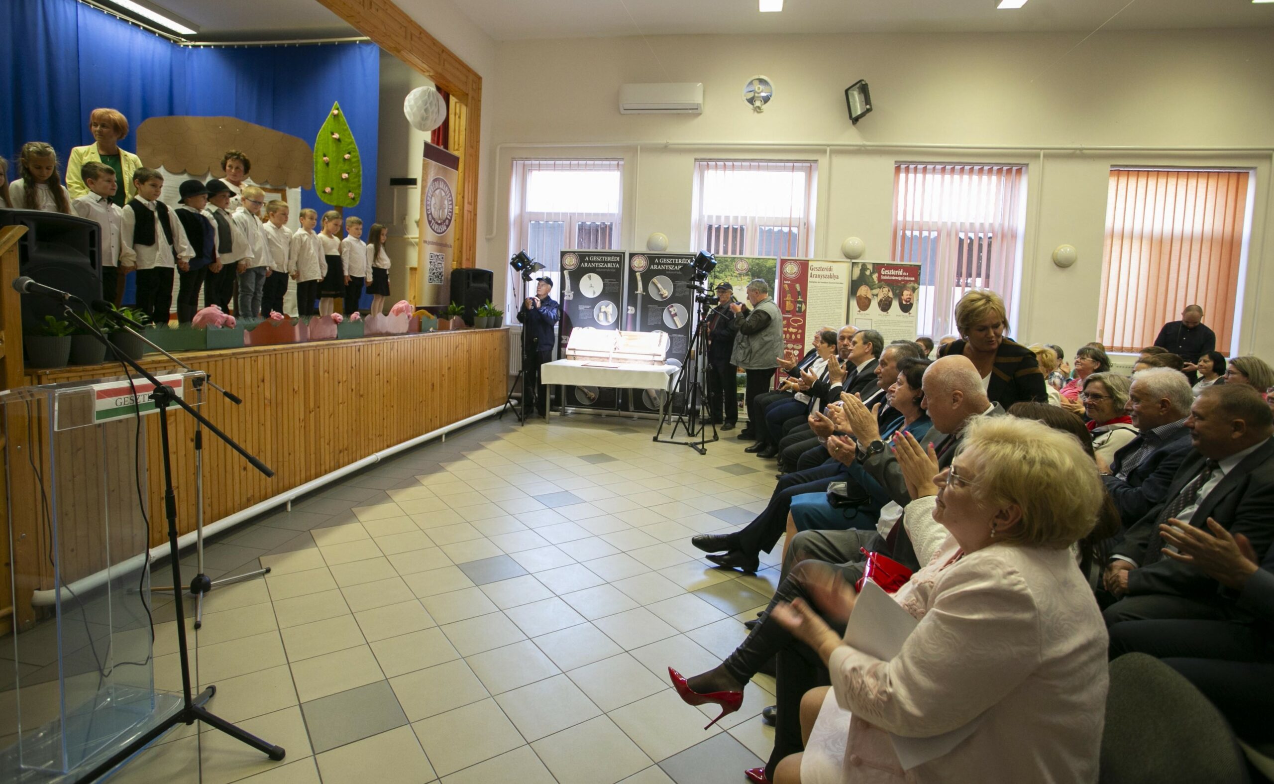 A szentmisét követően az ünnepség a Gajdos János Művelődési Házban folytatódott, ahol a Szent Anna Katolikus Óvodába járó gyermekek dramatikus játéka bemutatta a Geszterédi Aranyszablya történetét, majd beszédek hangzottak el.
