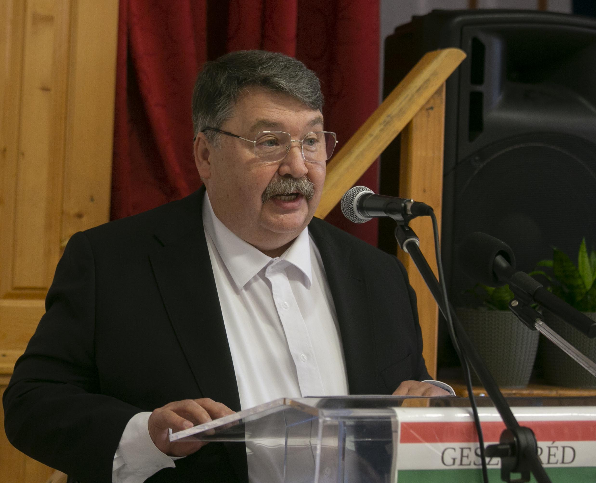 A záró gondolatokat Rácz Jánostól, az Aranyszablya Társaság alapító elnökétől hallhattuk. Elmondta, hogy a társaság alapszabályában rögzítették a szablya rekonstrukciójának elkészítését és egy emlékhely létrehozását Geszteréden. Ez utóbbit 2020 augusztusában ünnepélyes keretek között felavatták. A rekonstrukció is elkészült, bemutatása pedig nemcsak a társaság tagjainak, hanem minden geszterédi embernek a büszkesége. A rekonstrukció készítése 2019-ben először is a szablya leírásával kezdődött, ezt követően keresték meg azon szakembereket az országban, akik ezt megfelelő minőségben meg tudták valósítani. Ehhez nem utolsó sorban pénzre is szüksége volt a társaságnak, Rácz János itt köszönte meg a rekonstrukcióra felajánlott anyagi támogatásokat.