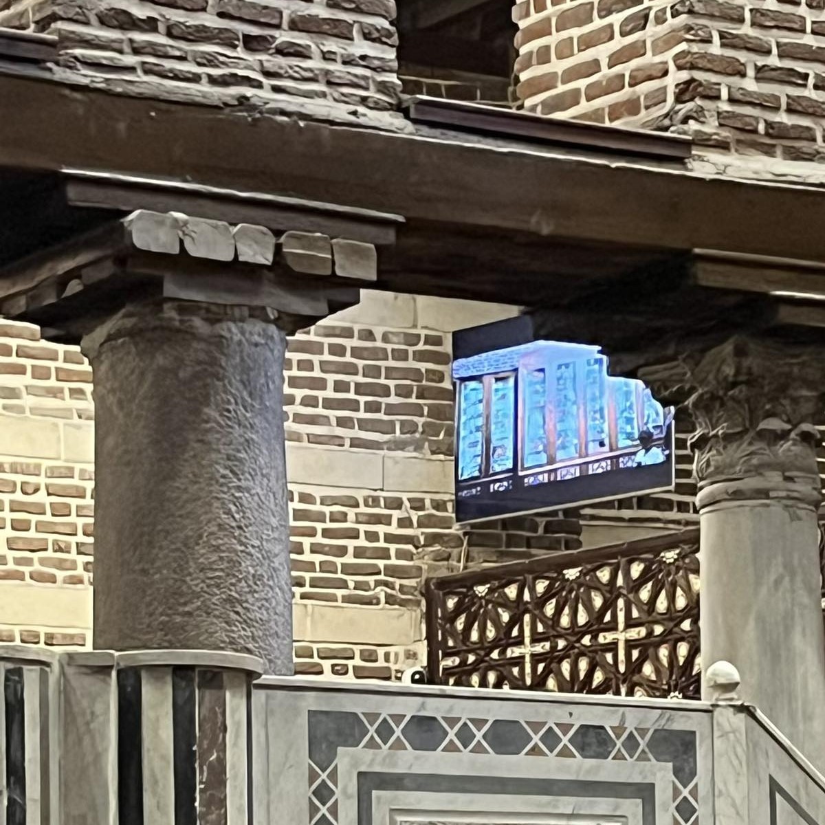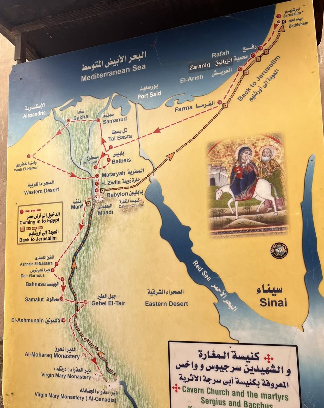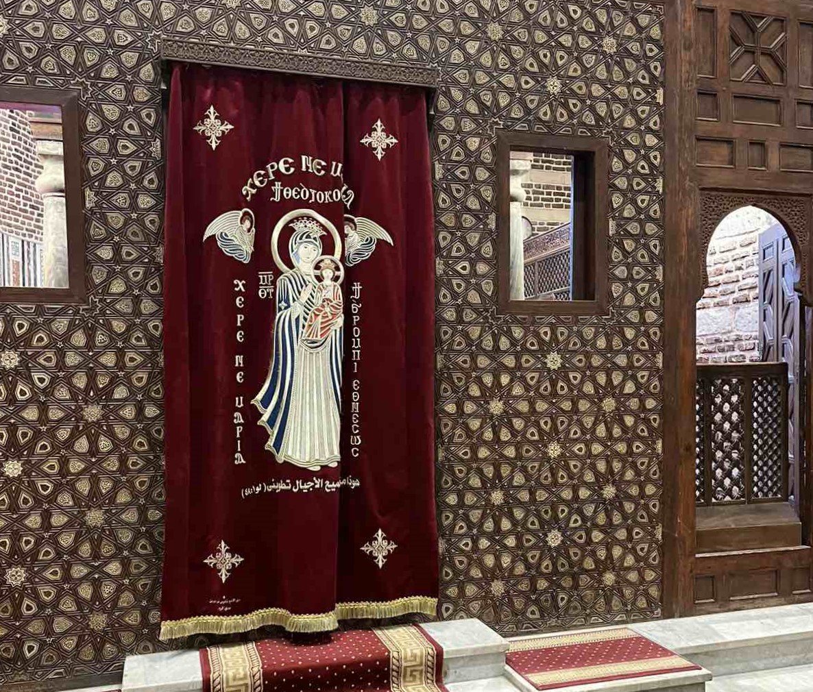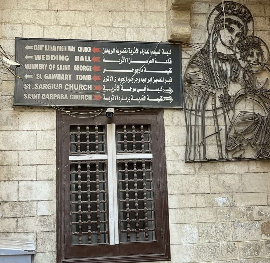 A római időkben épített vízi kapu két védőbástyájának helyén található templom fő ékessége a szépen faragott márvány szószéke. Közvetlenül mellette található a kopt keresztények múzeuma, egy görögkatolikus bazilika, valamint egy nagy kiterjedésű keresztény temető is.