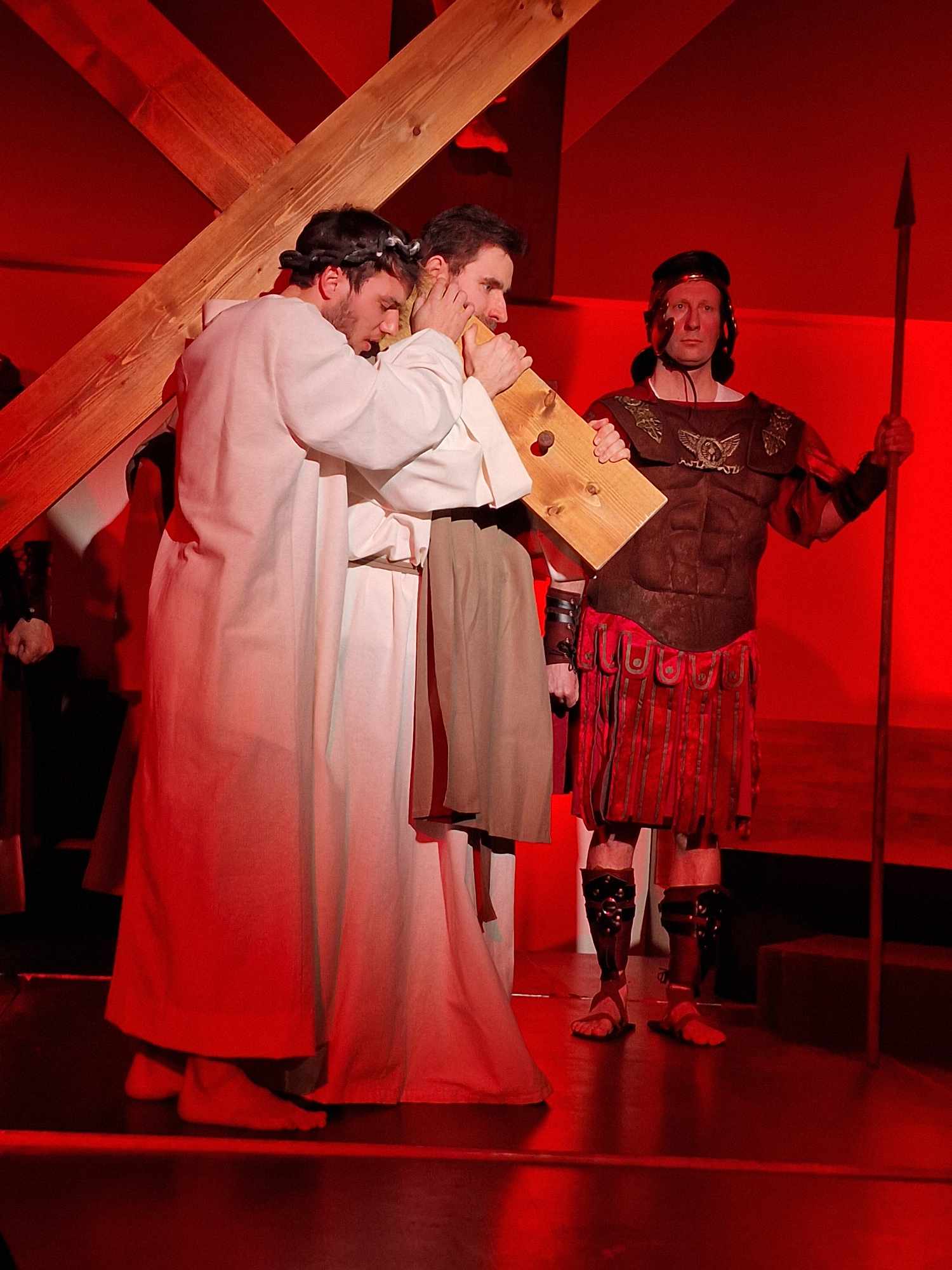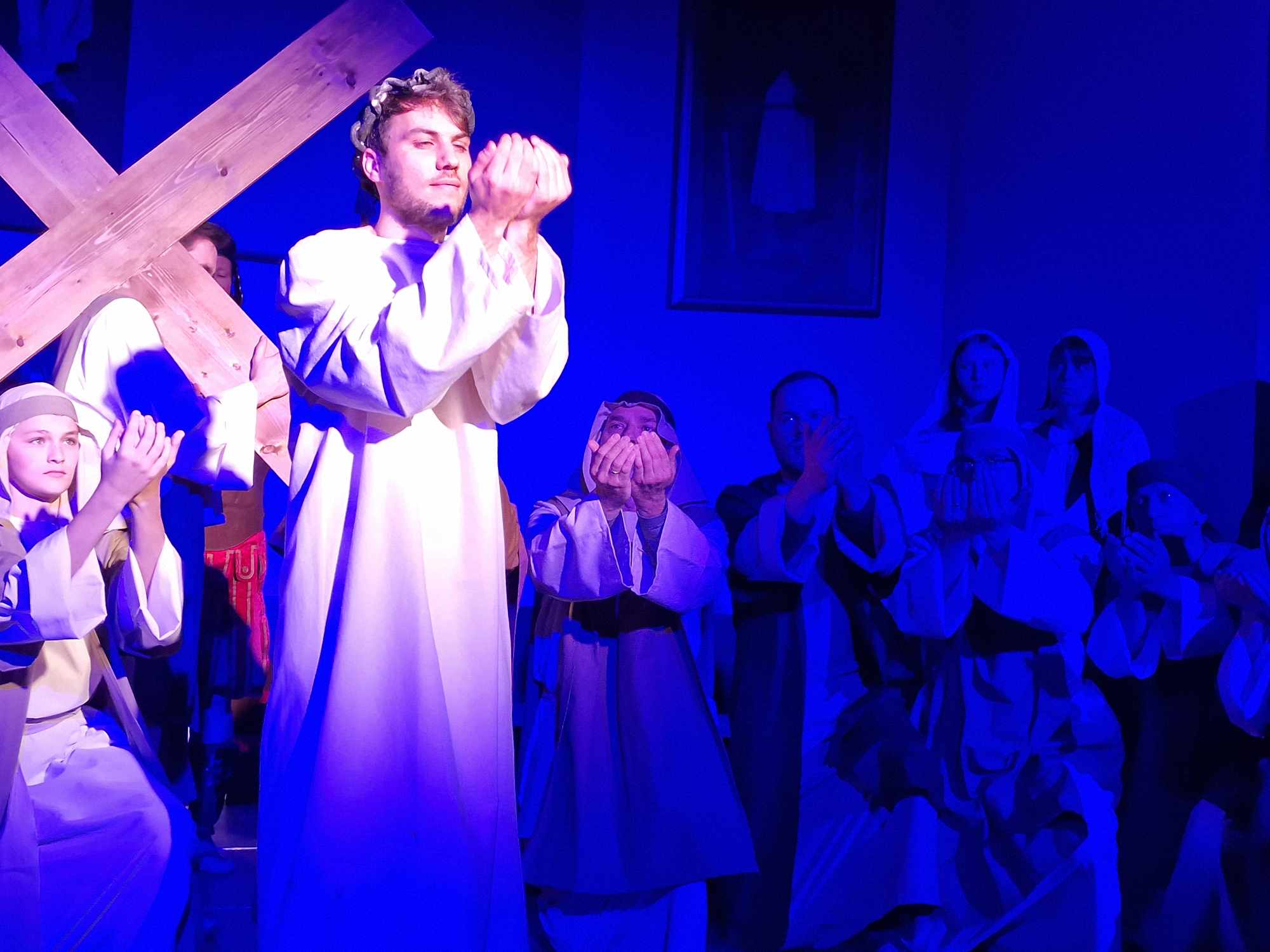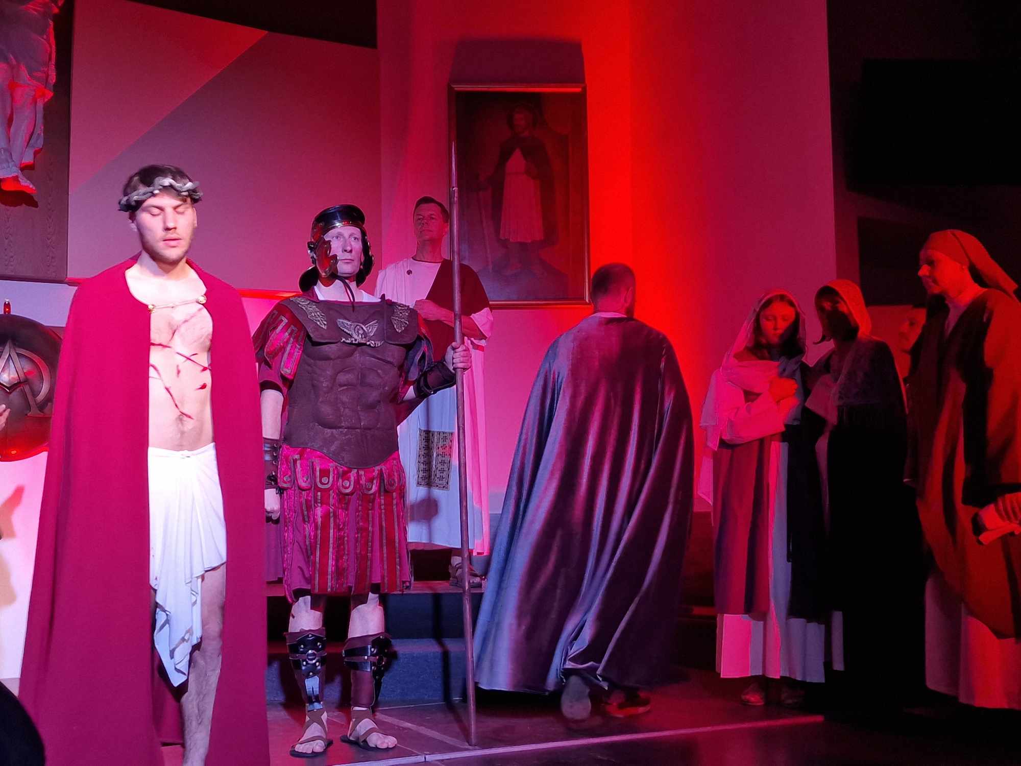 Egy színpadon is megjelenített passió olyan eszközök segítségével emeli szívünket-lelkünket megváltásunk történetéhez, amely a hagyományos felolvasáshoz vagy énekléshez képest még többet ad: szemünk előtt elevenedik meg Jézus gyötrődése a Getszemáni kertben, Júdás árulása, a halálos ítélet kimondása és Jézus leírhatatlan szenvedése a keresztút különböző állomásai során. Szinte a mi húsunkba vágnak a szögek, amelyekkel a római katonák felfeszítik őt a keresztre. A Jézust alakító Bódis Norbert (hangja: Molnár Zsombor) a szenvedő Jézus mellett hitelesen mutatta meg a szelíd és az Atyában mindvégig bízó Istenfiú alakját is.