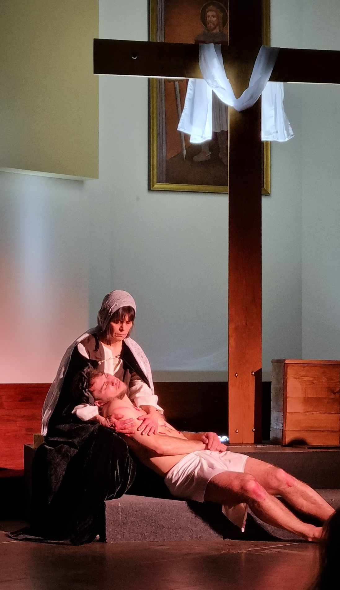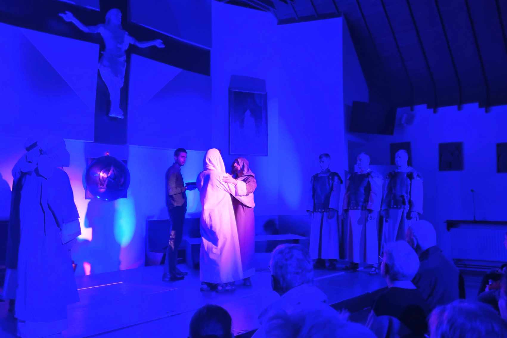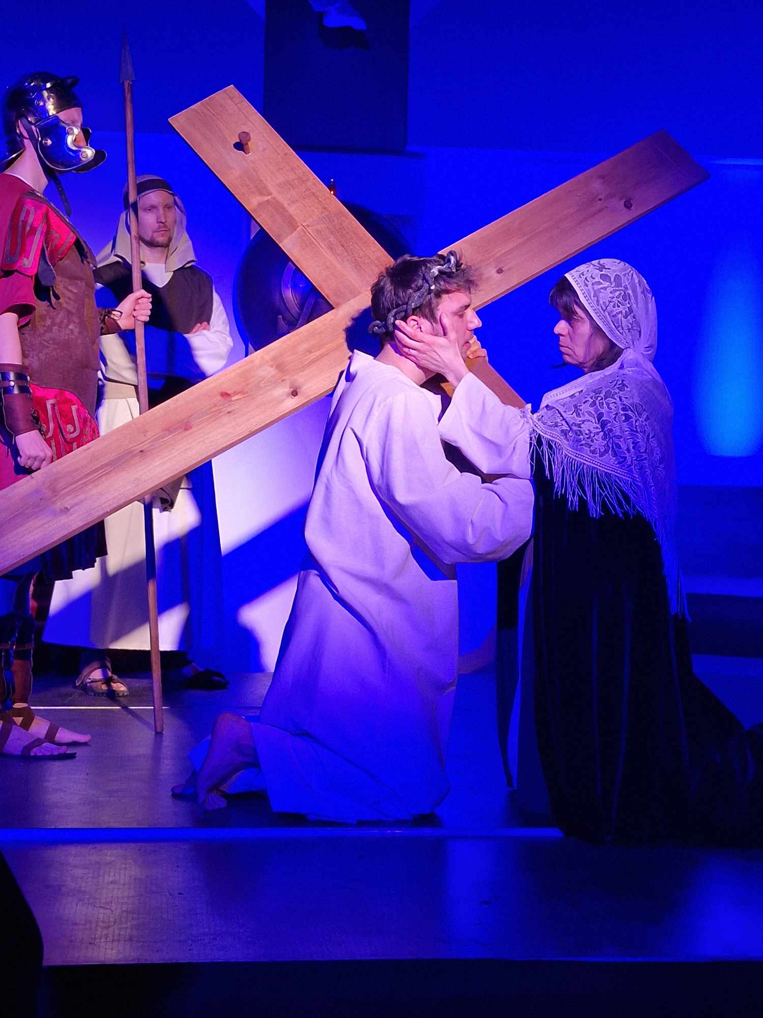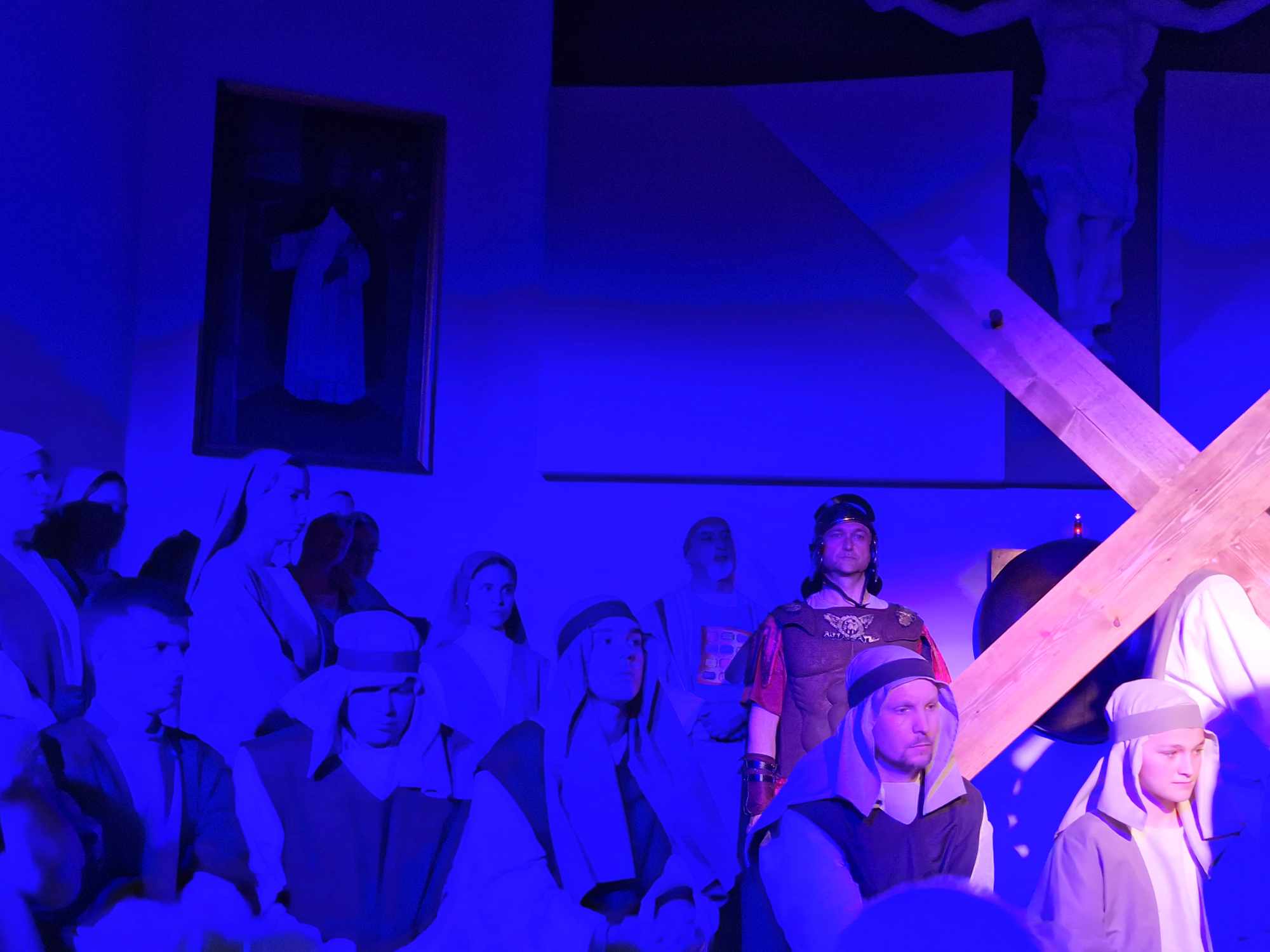 Egy színpadon is megjelenített passió olyan eszközök segítségével emeli szívünket-lelkünket megváltásunk történetéhez, amely a hagyományos felolvasáshoz vagy énekléshez képest még többet ad: szemünk előtt elevenedik meg Jézus gyötrődése a Getszemáni kertben, Júdás árulása, a halálos ítélet kimondása és Jézus leírhatatlan szenvedése a keresztút különböző állomásai során. Szinte a mi húsunkba vágnak a szögek, amelyekkel a római katonák felfeszítik őt a keresztre. A Jézust alakító Bódis Norbert (hangja: Molnár Zsombor) a szenvedő Jézus mellett hitelesen mutatta meg a szelíd és az Atyában mindvégig bízó Istenfiú alakját is.