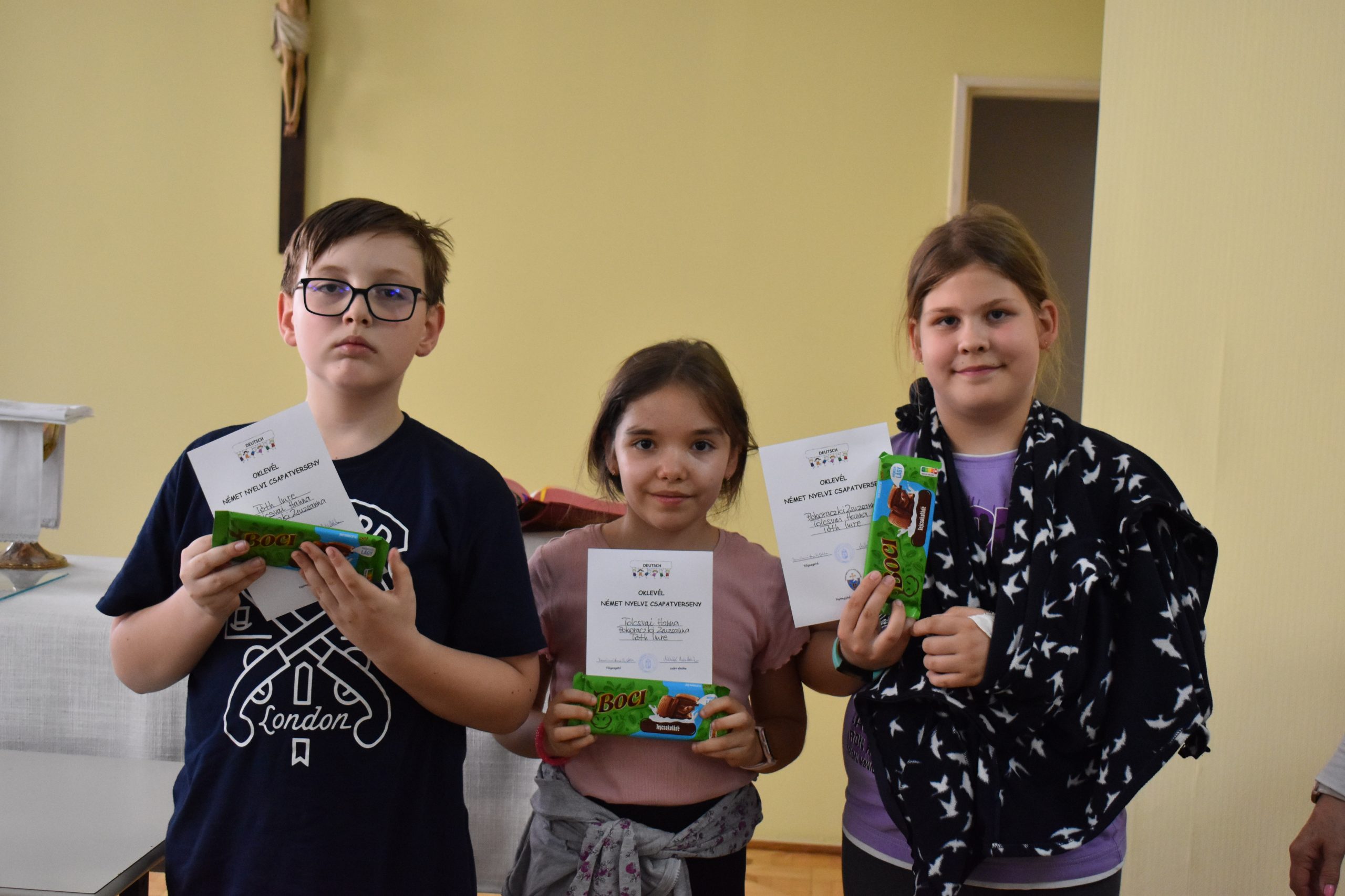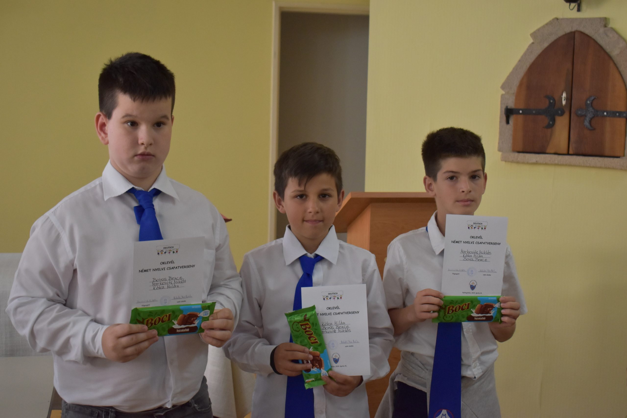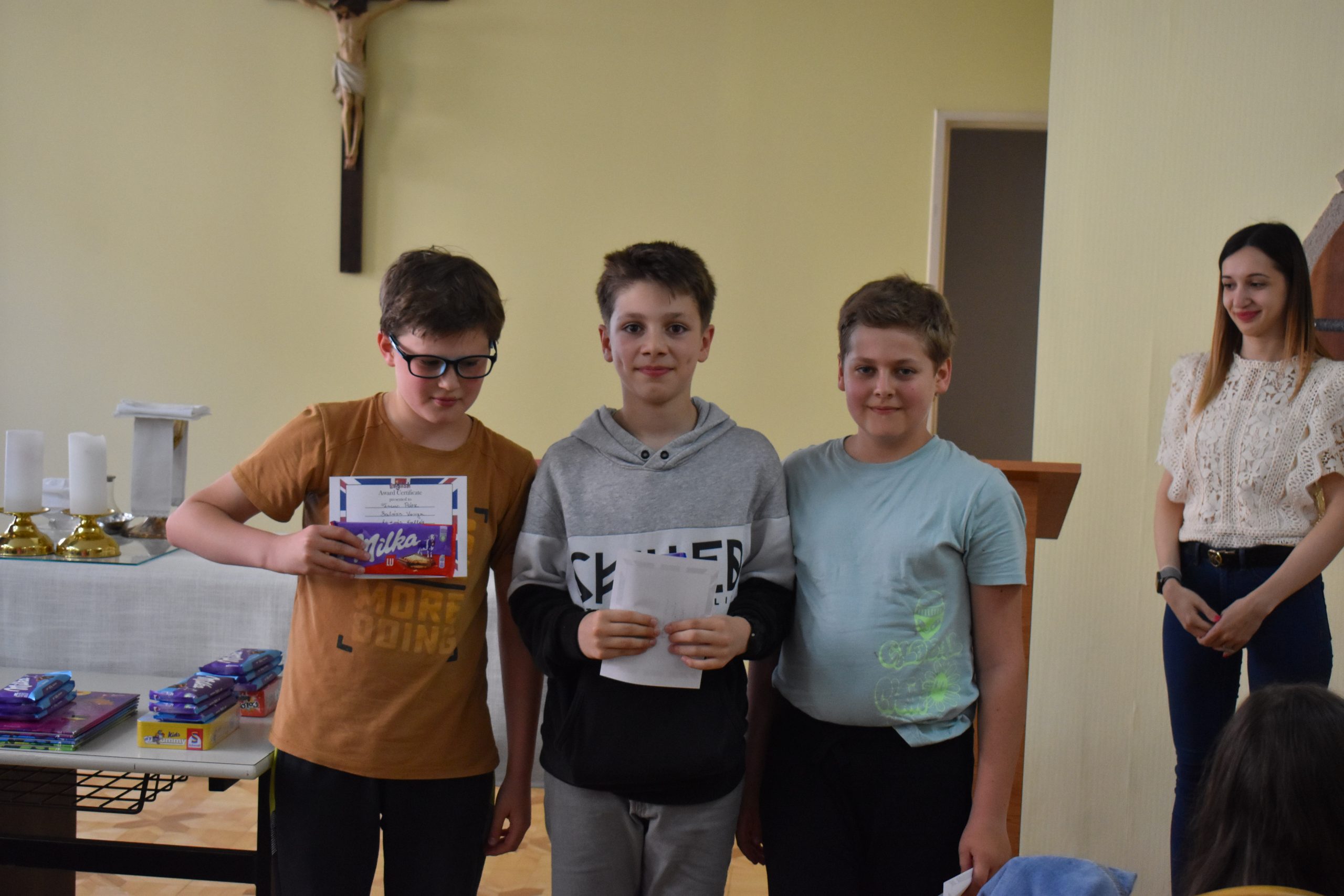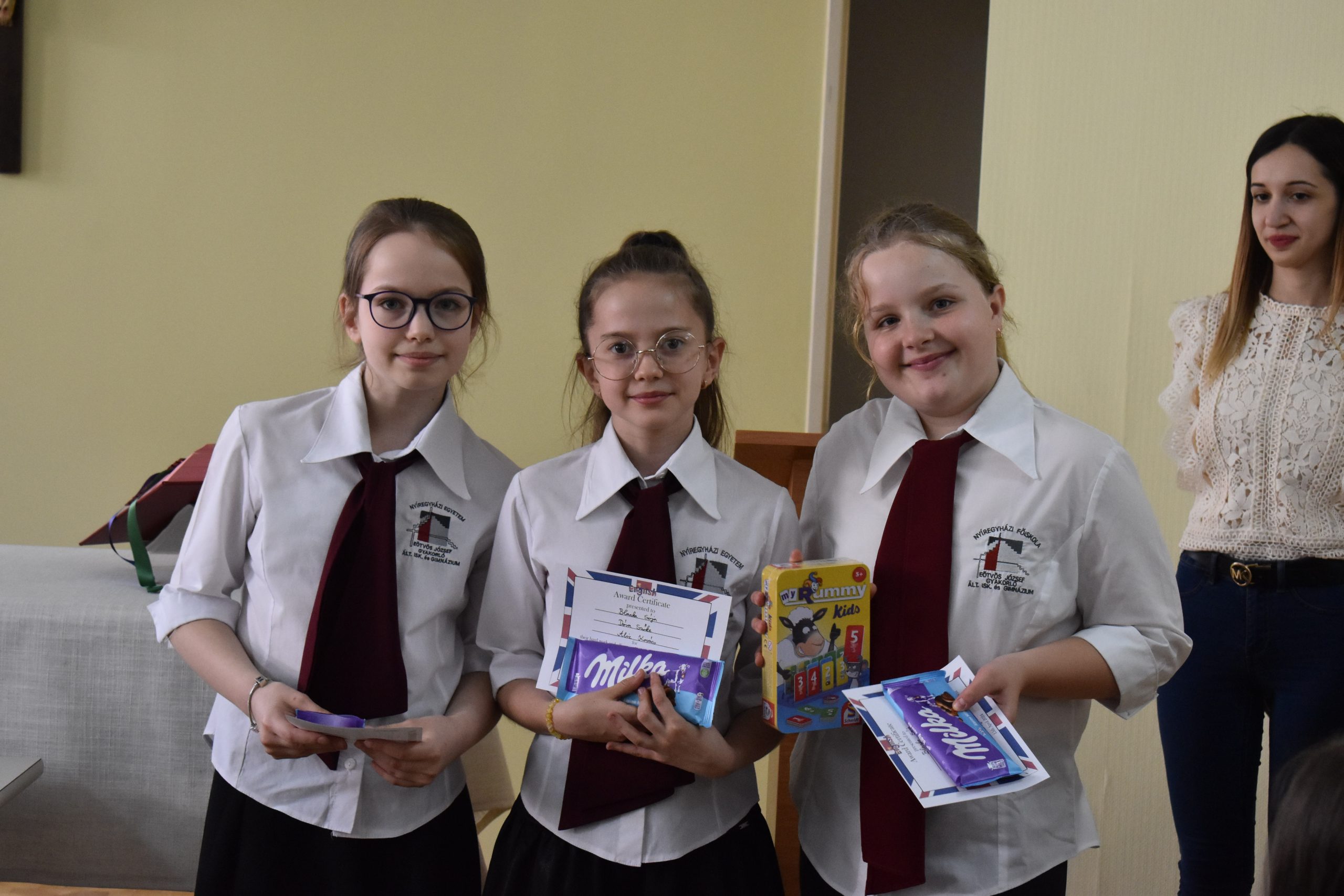 A versenyzőket az állomások útvesztőjében 8. osztályos diákjaink kalauzolták, akik ügyesen és talpraesetten segítették a kisebbeket. Az eredményhirdetésről senki nem távozott üres kézzel. Az az első három helyezett könyvet vagy társasjátékot kapott az oklevél mellé. A többiek csokoládét és oklevelet kaptak a lelkes, kitartó munkáért.
