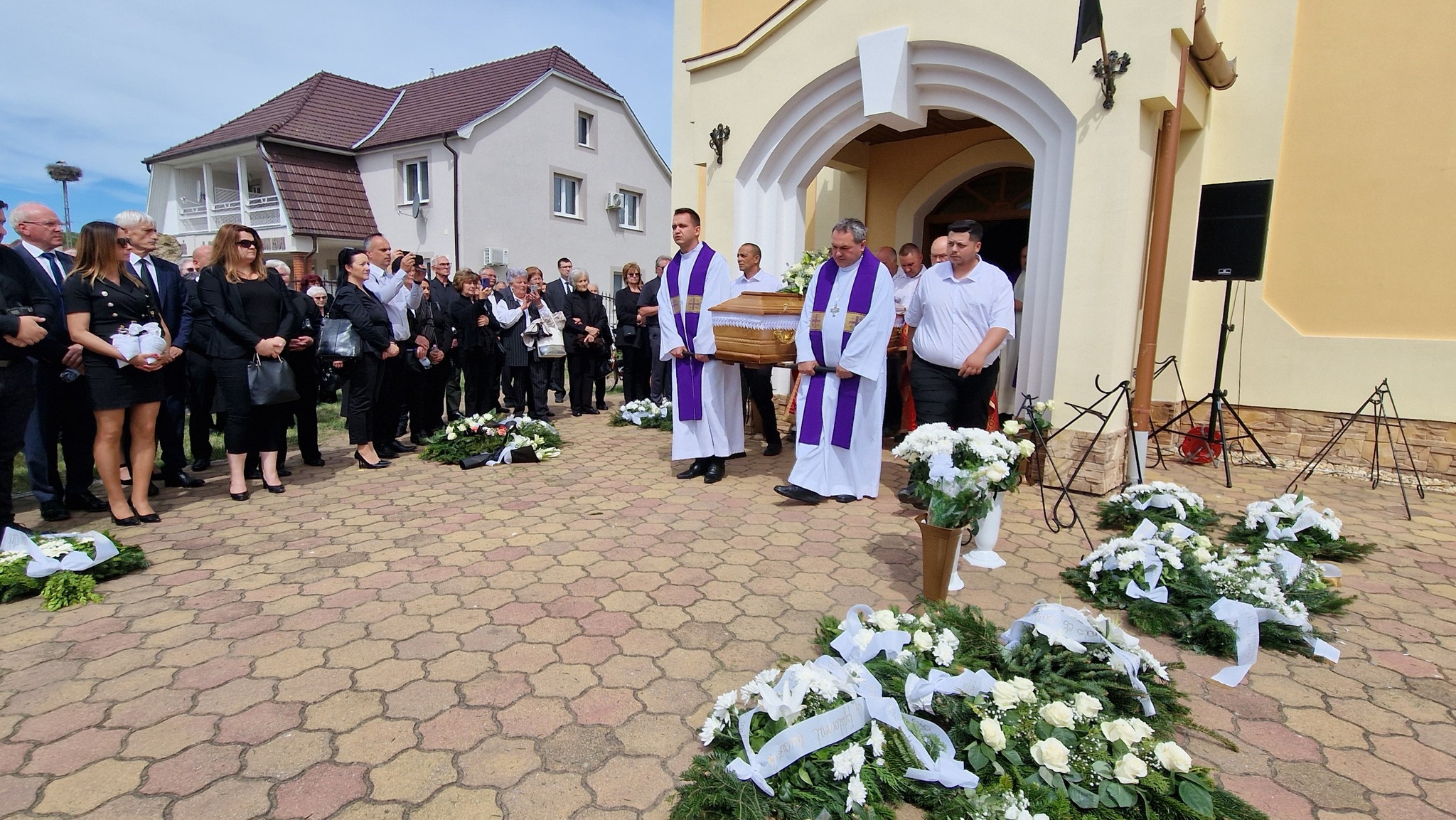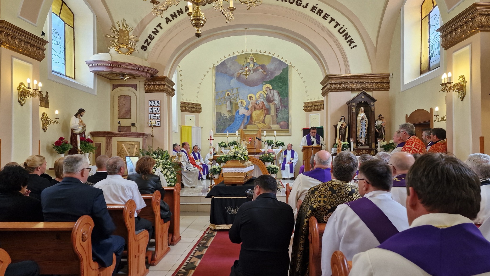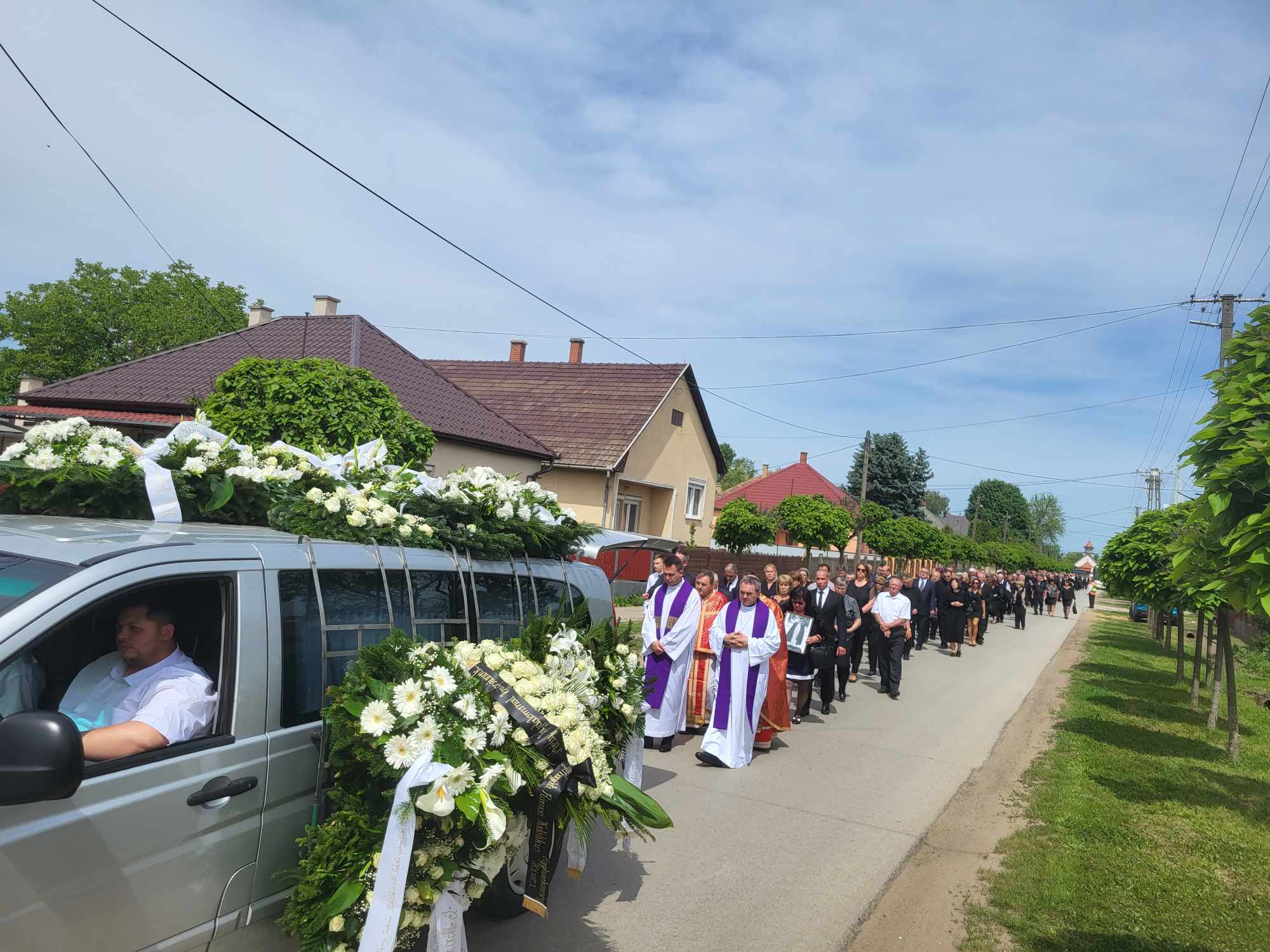 Megható pillanat részesei lehettünk, amikor a koporsót a Geszterédről elszármazott papok vitték ki a templomból, és a temetésen résztvevőkkel együtt kísérték ki végső nyughelyére, a geszterédi temetőbe.