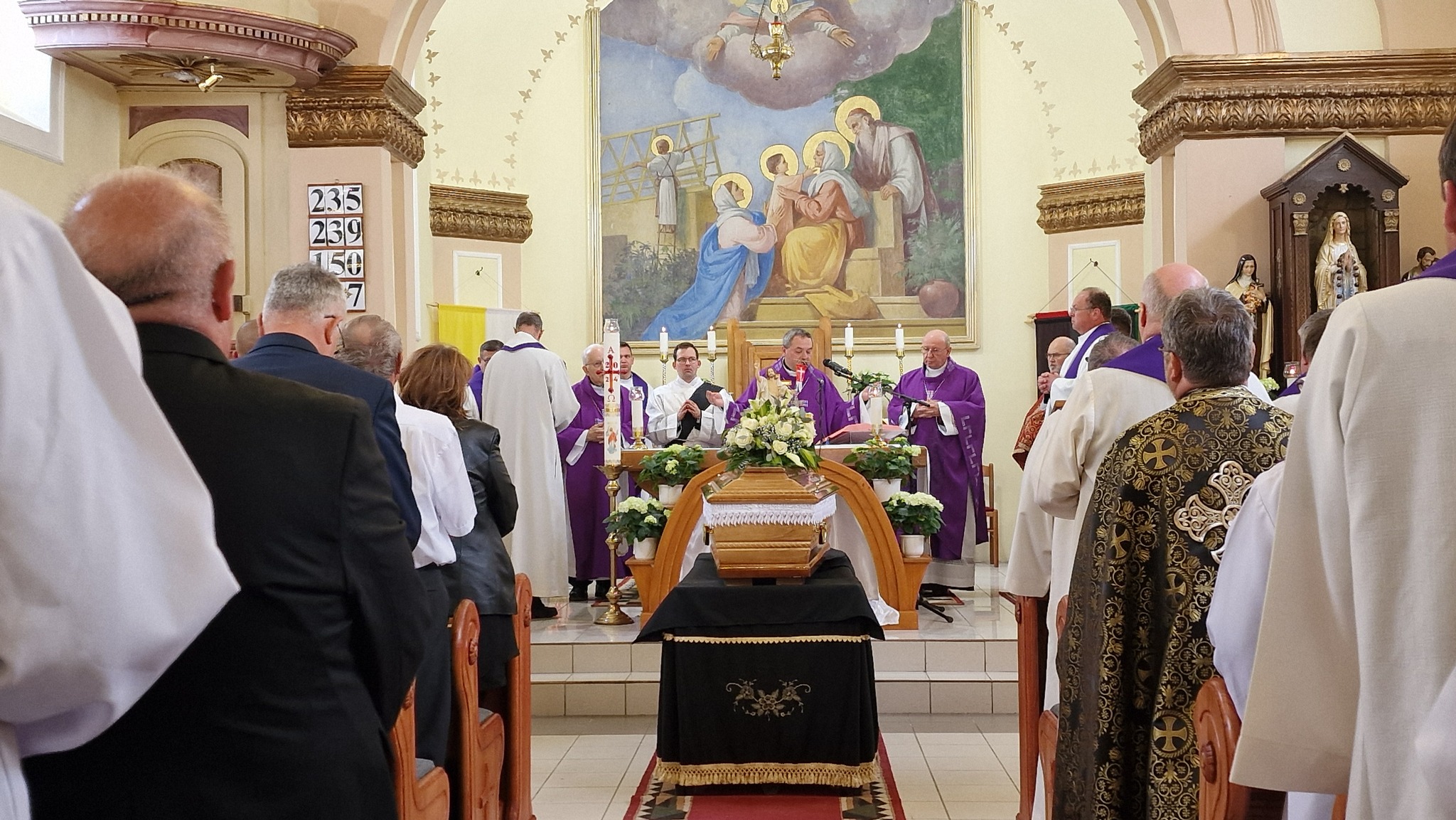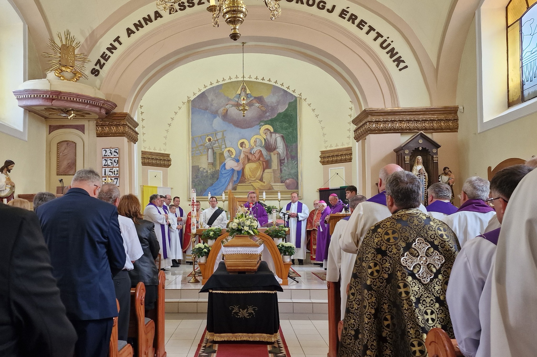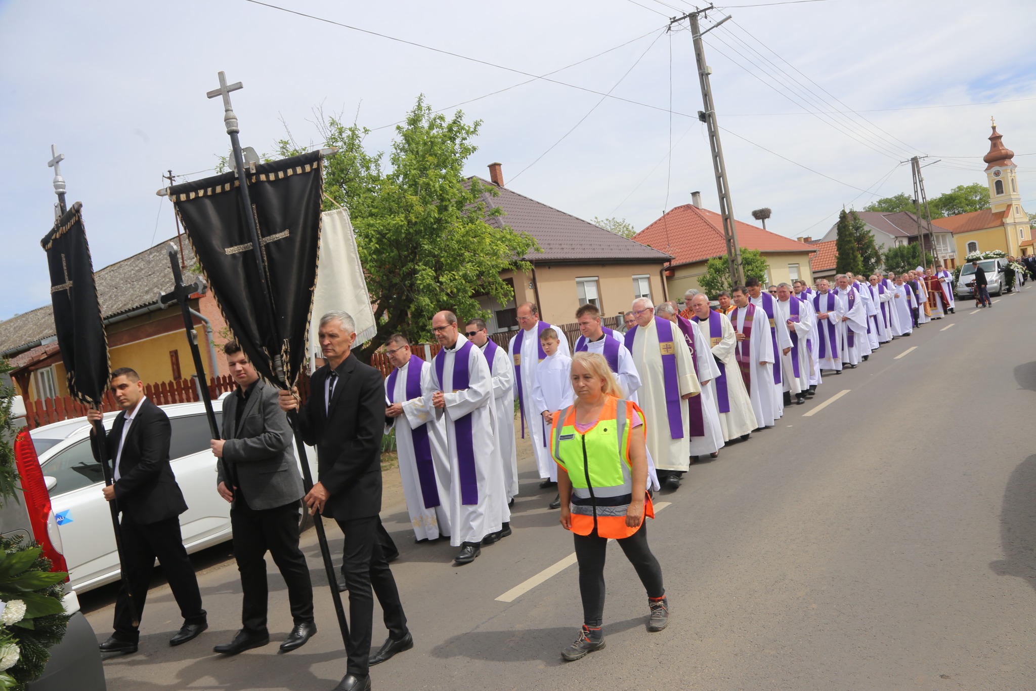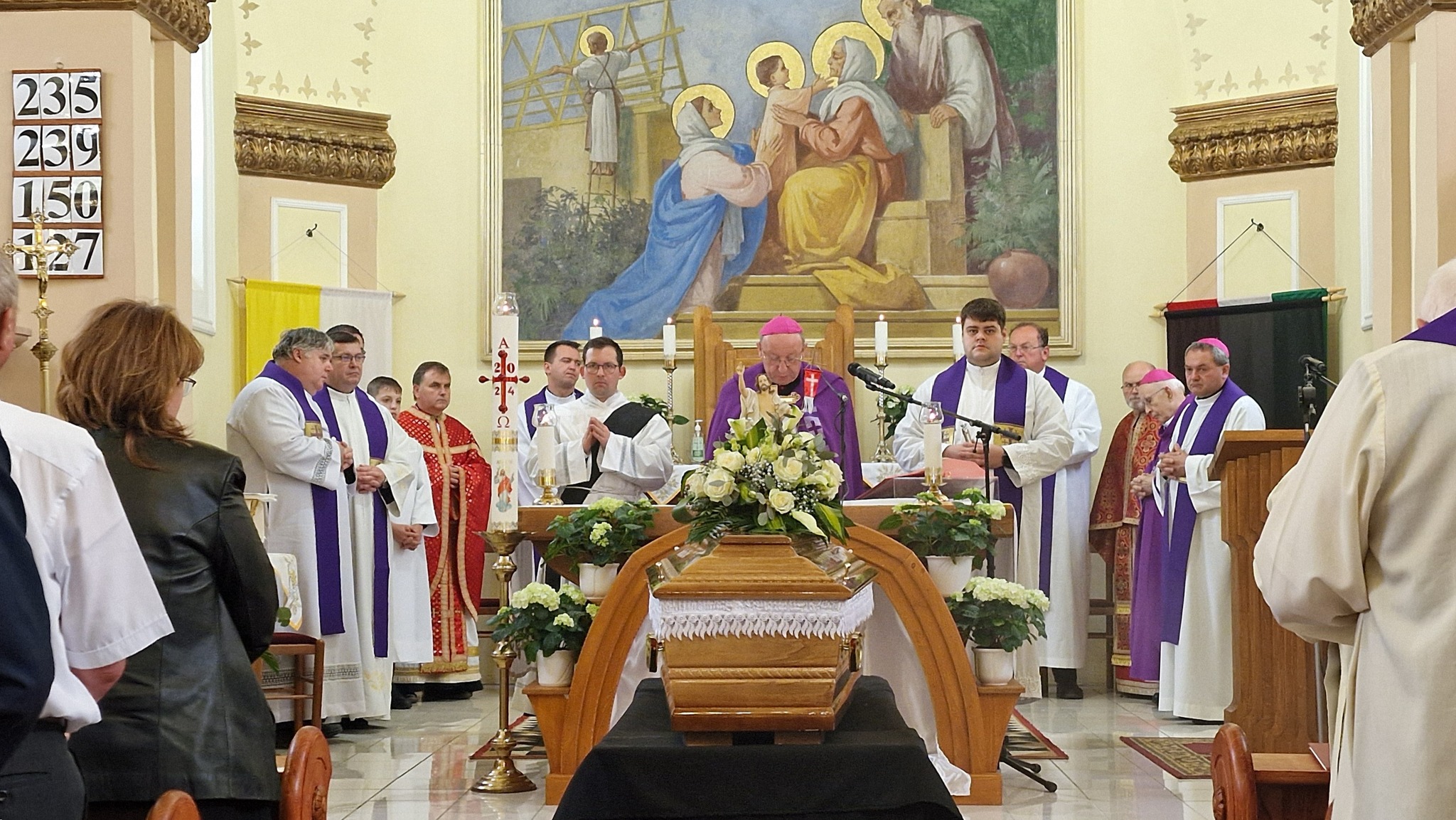 Megható pillanat részesei lehettünk, amikor a koporsót a Geszterédről elszármazott papok vitték ki a templomból, és a temetésen résztvevőkkel együtt kísérték ki végső nyughelyére, a geszterédi temetőbe.