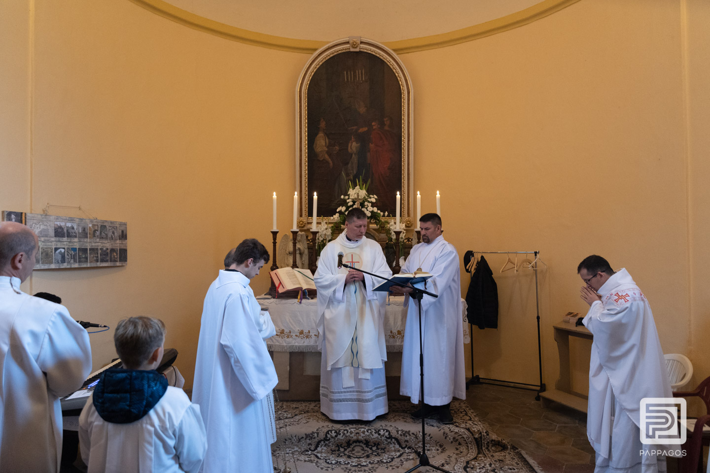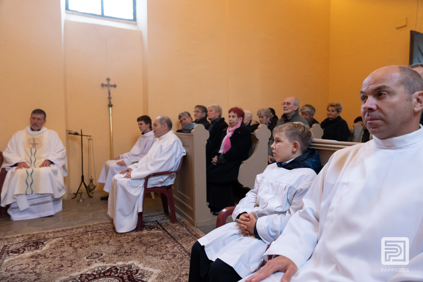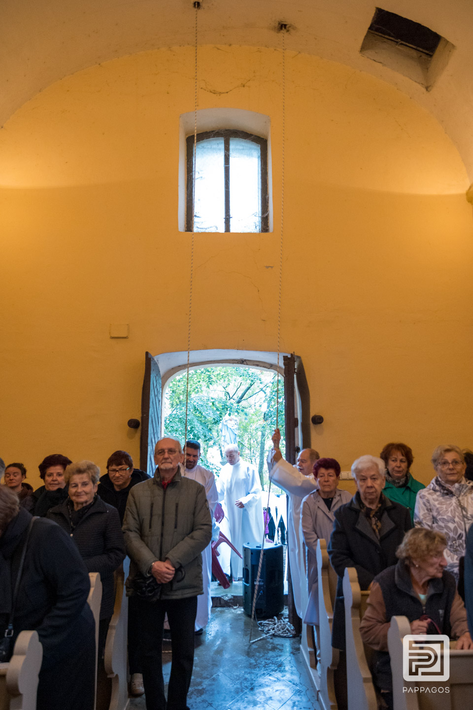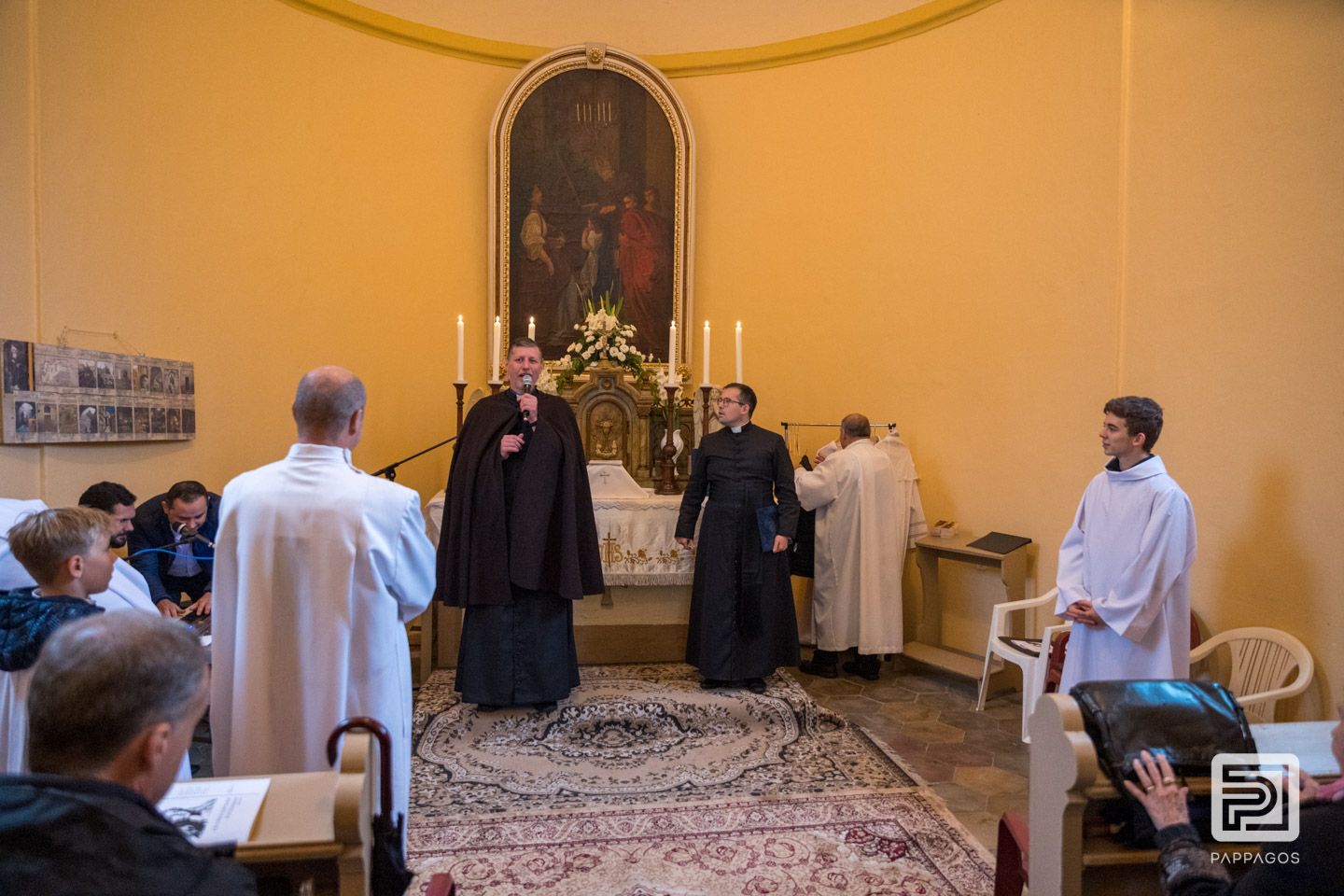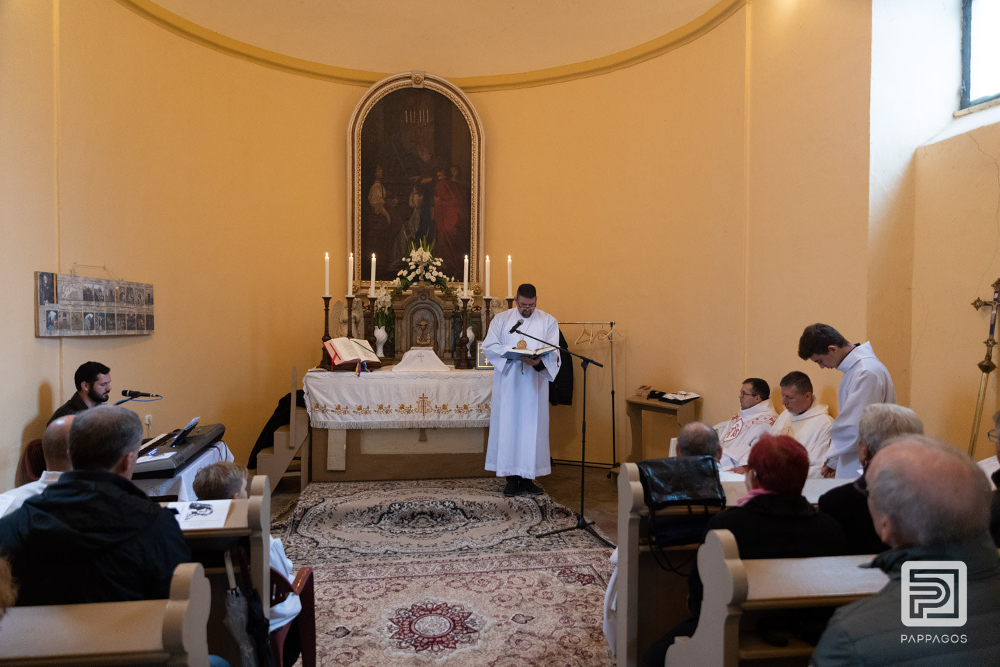 Az esős időjárás miatt a szentmisét a kis kápolnában ünnepelték.