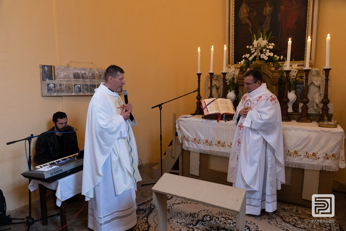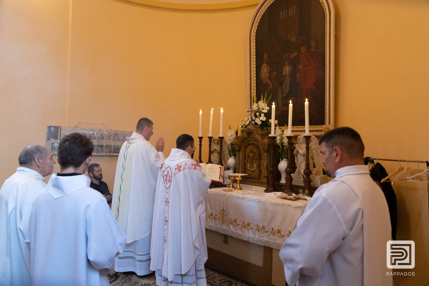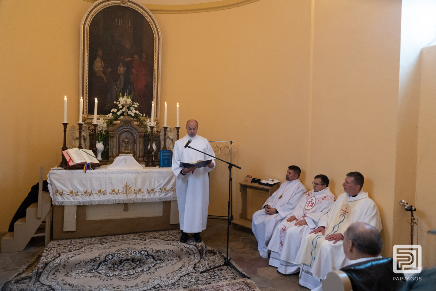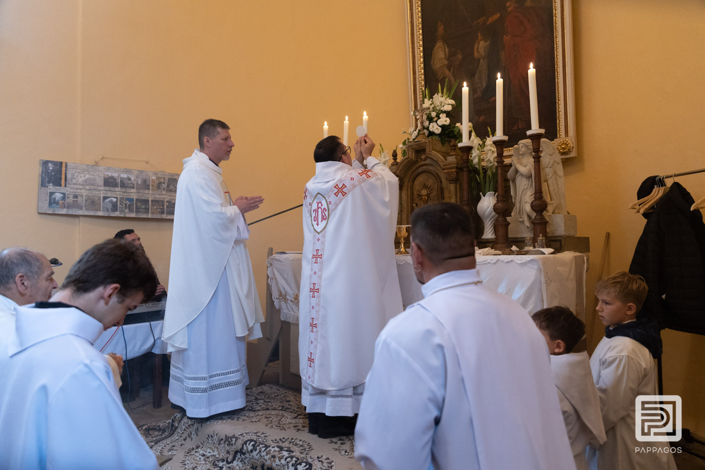 Az esős időjárás miatt a szentmisét a kis kápolnában ünnepelték.