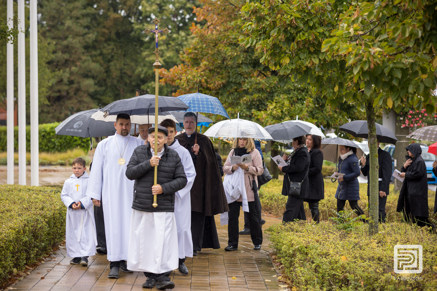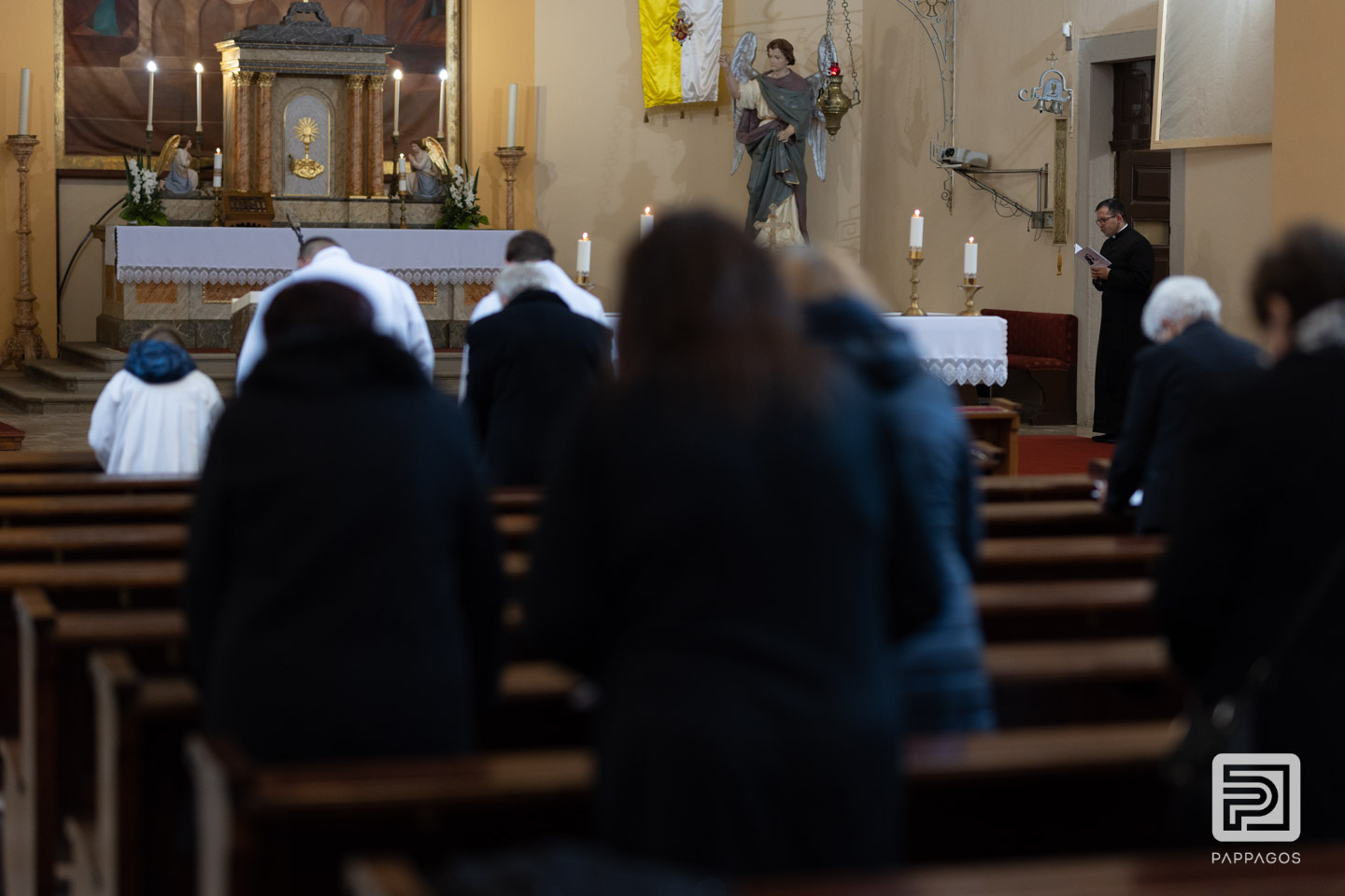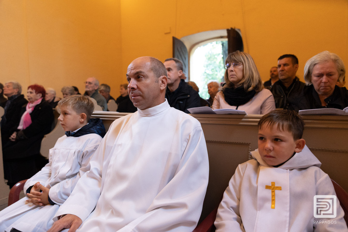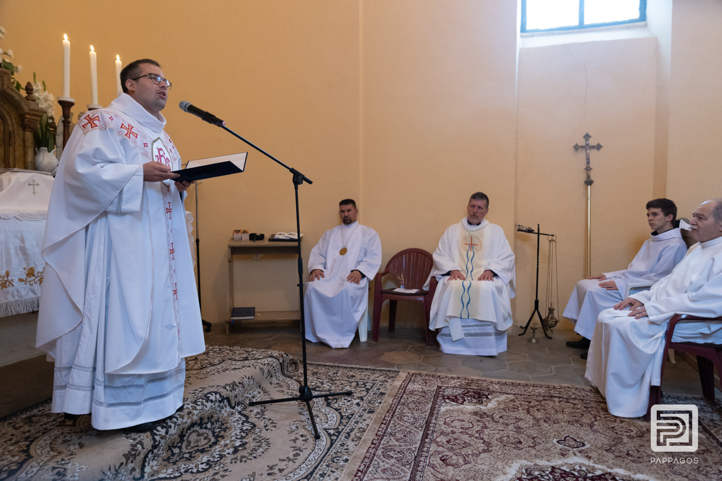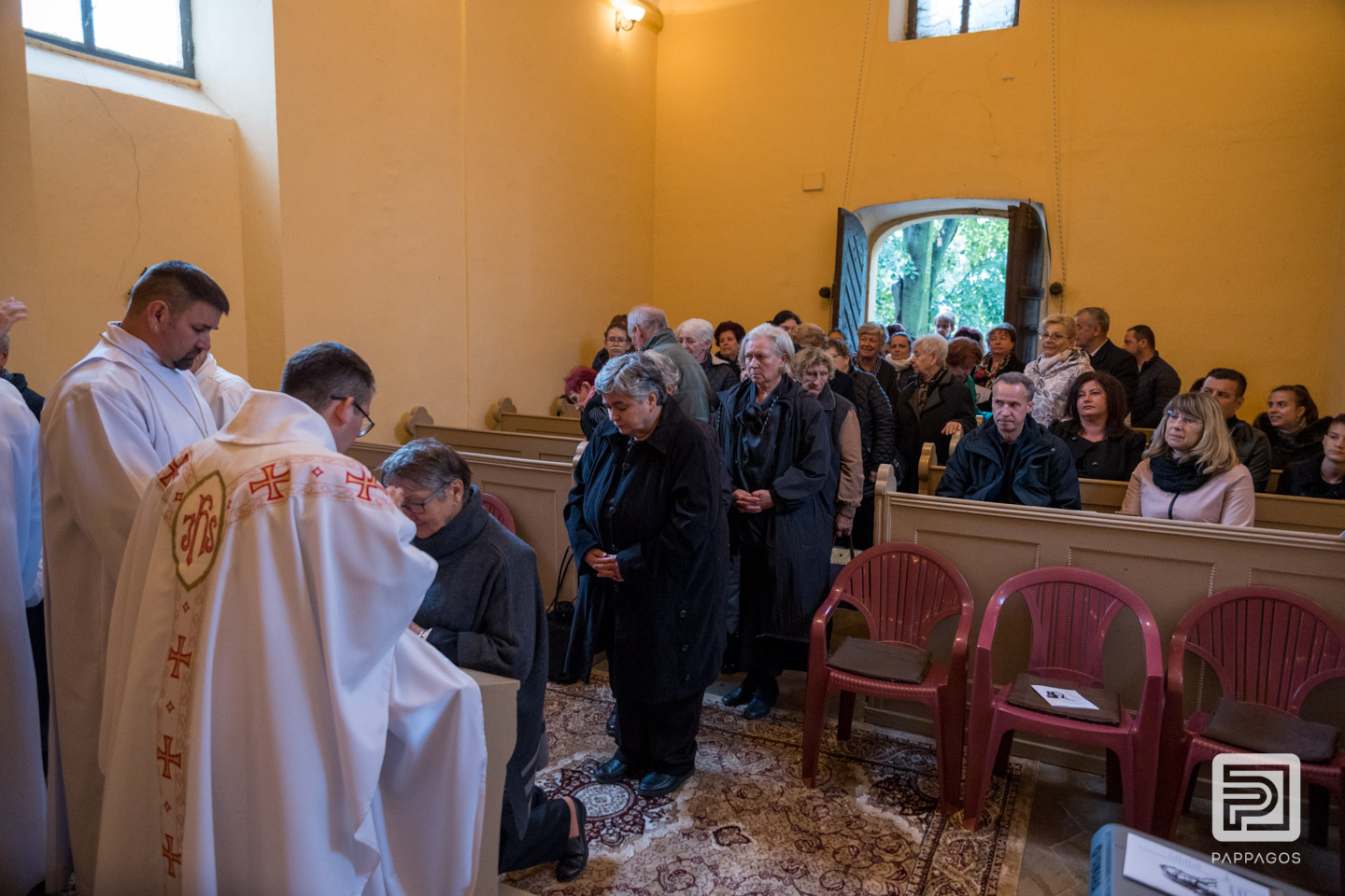 Az esős időjárás miatt a szentmisét a kis kápolnában ünnepelték.
