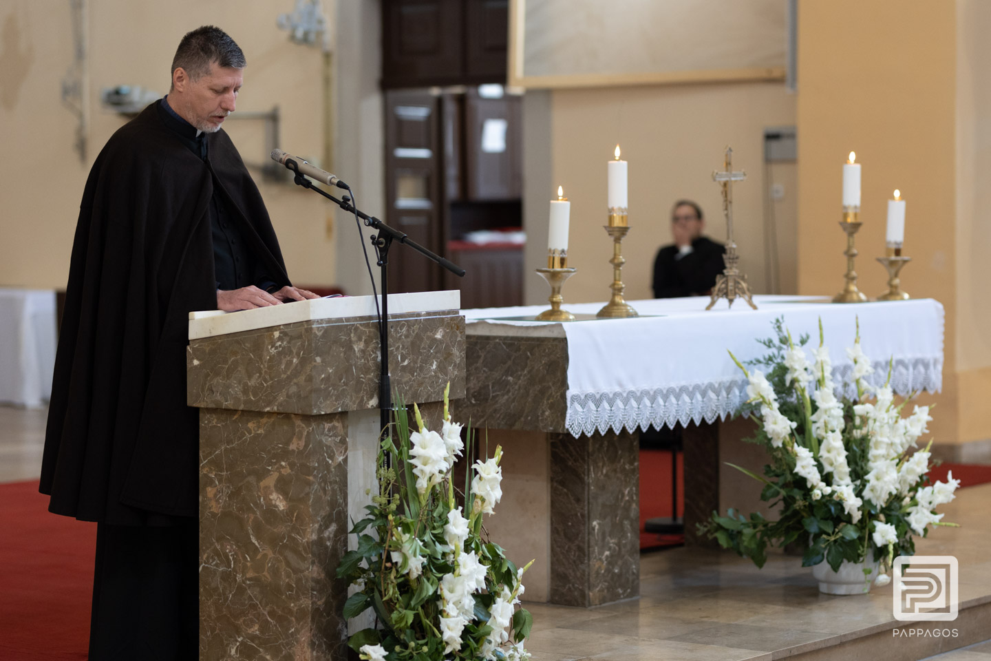 Majd az újmisés atya Mária hét fájdalmára mutatott. Az egyház hagyománya szerint