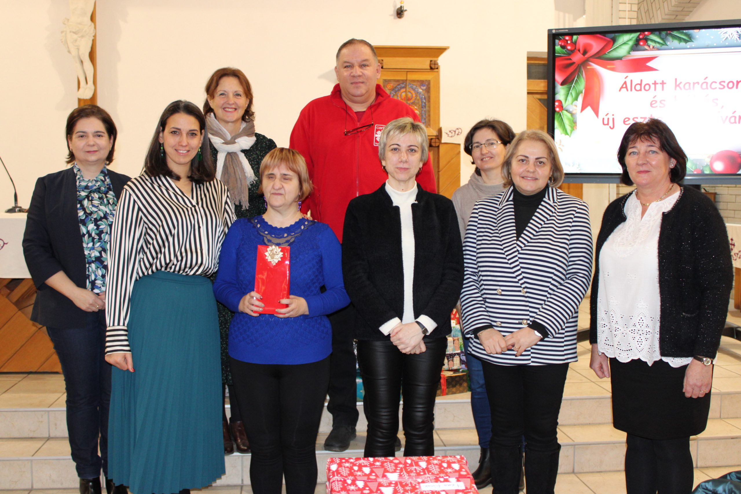 A rövid köszöntők és szavalatok után a szervező Barna Rita tanítónő és Csernyus Enikő tanárnő megköszönték a gyerekek és a felnőttek adományait, majd átadták azt az összeget, amellyel idén a látássérült emberek nehéz helyzetén szeretnének könnyíteni. Képviseletükben Nemes-Nagy Tünde meghatottan vette át és köszönte meg az ajándékokat, adományokat.
