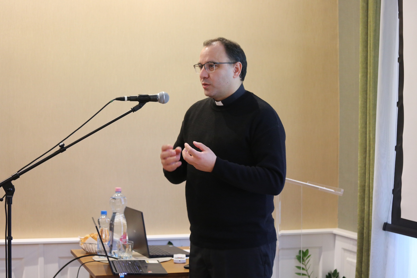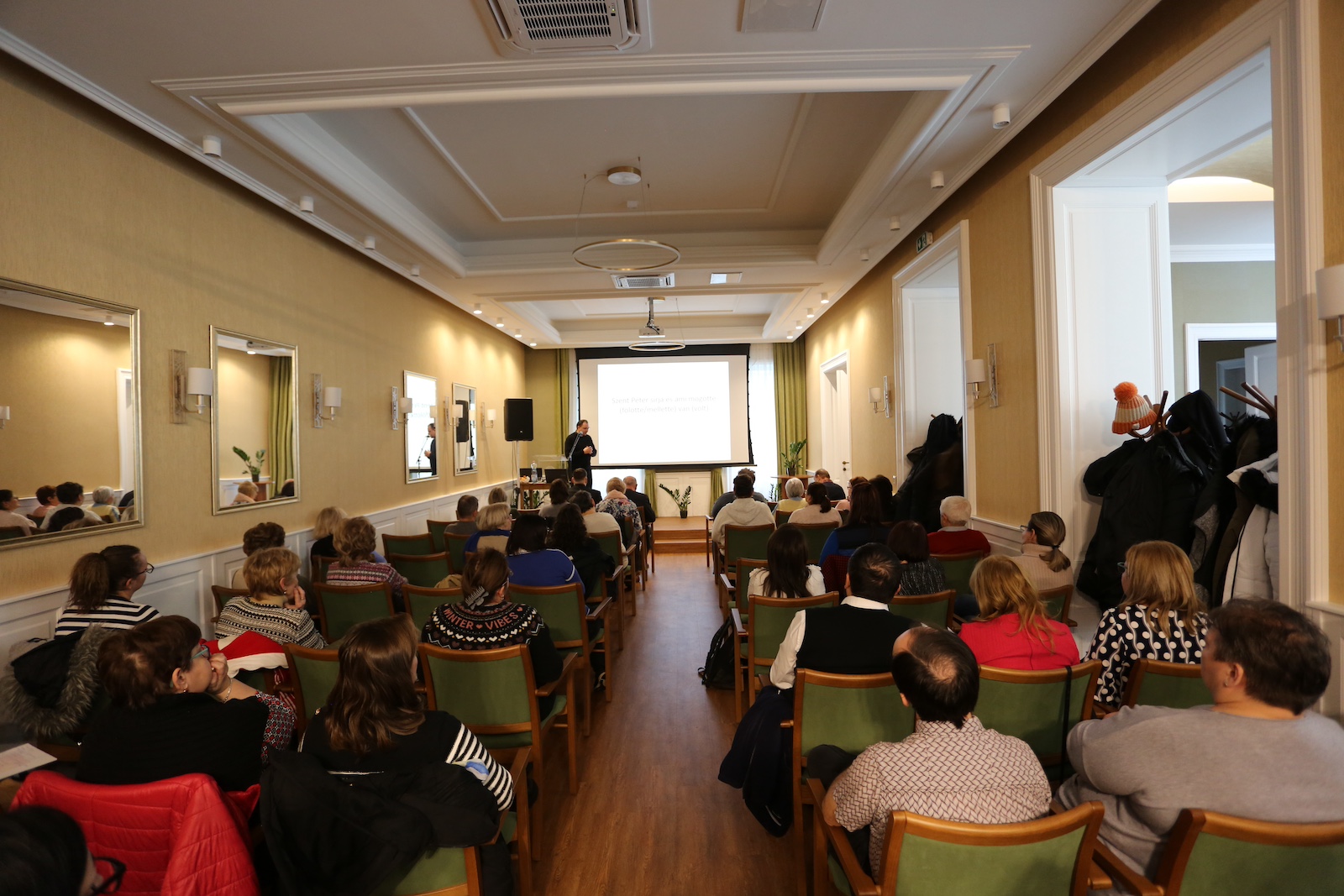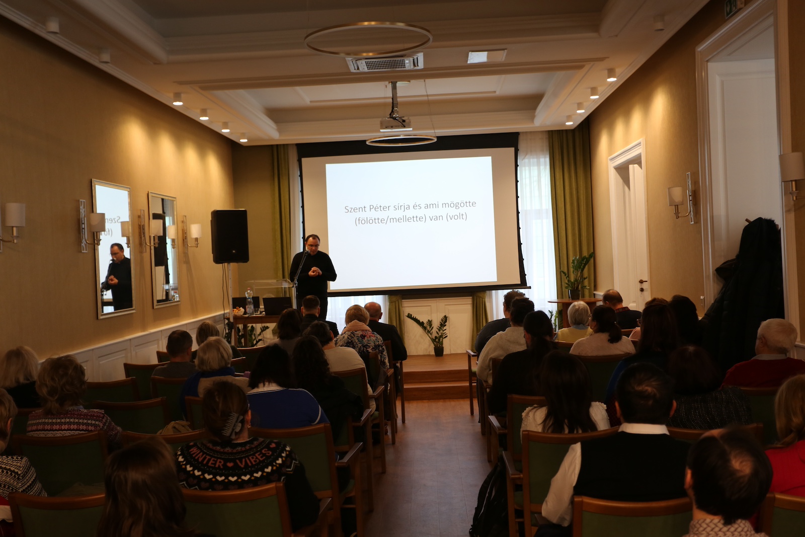 Palánki Ferenc ezt követően bemutatta és méltatta Fanea József atyát, a Szatmári Egyházmegye püspöki titkárát és bírósági helynökét és megköszönte, hogy vállalja a lelki nap vezetését, aki első előadásában Szent Péter sírját és annak történetét mutatta be.
