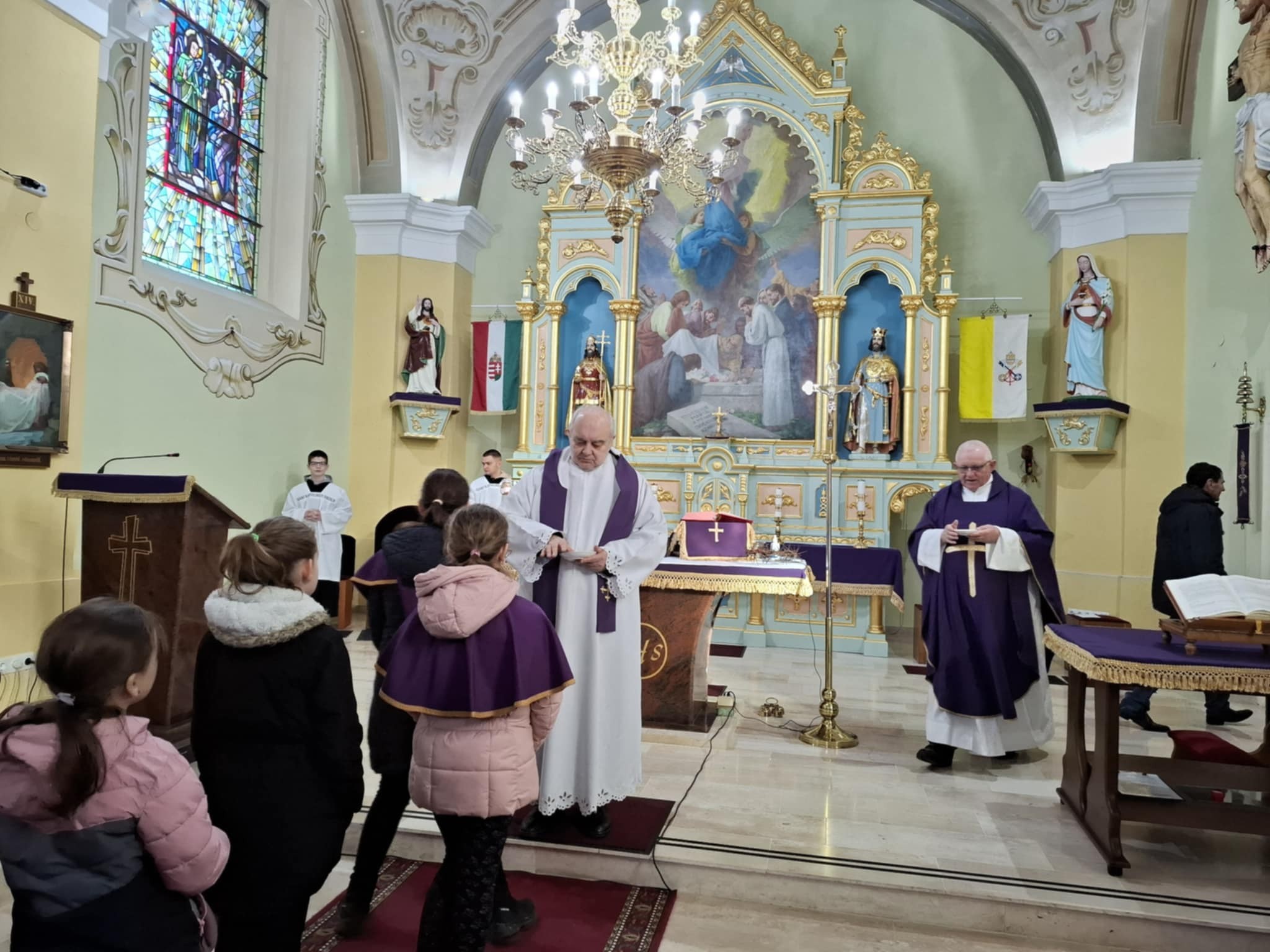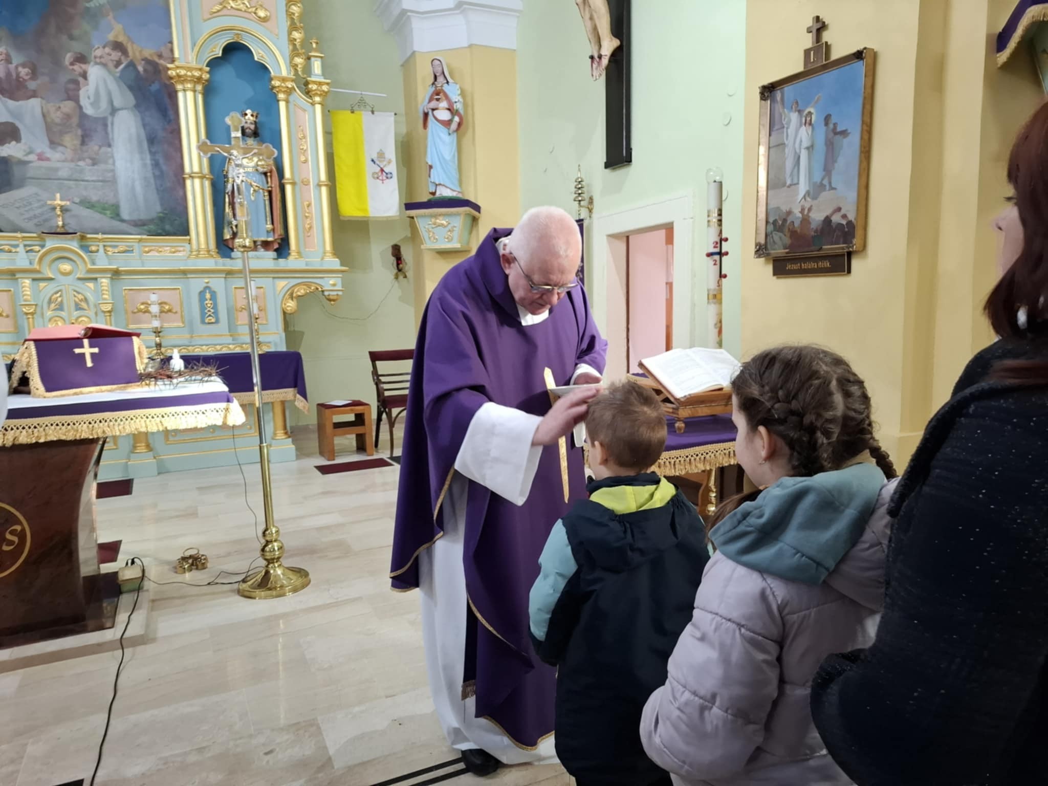 A szentmisén Gáspár Mátyás atya és Pap Sándor atya az előző évben megszentelt és elégetett barka hamujából keresztet rajzolt a homlokunkra, közben ezt mondva: „Emlékezzél, ember, hogy porból vagy és porrá leszel!”
