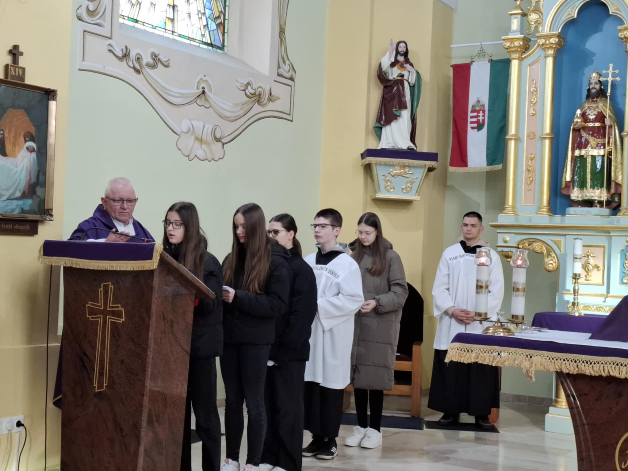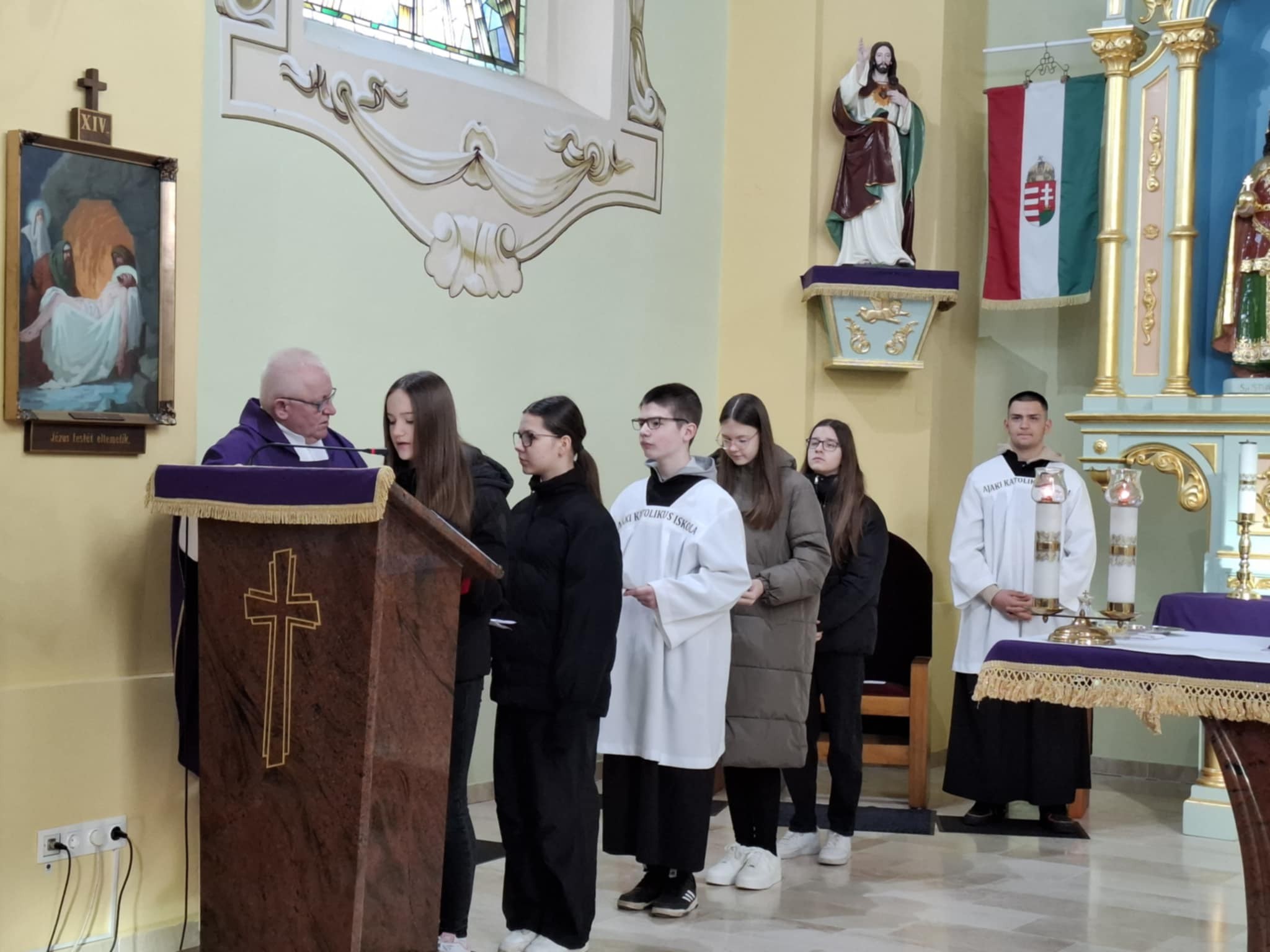 Az Ajaki Tamási Áron Katolikus Általános Iskola tanulói és pedagógusai szentmisén vettek részt ma reggel. Gáspár Mátyás atya, intézményünk lelki vezetőjének tanítását hallgattuk, aki ráirányította figyelmünket arra, hogy hogyan böjtöljünk, hogy tegyük a jót, vezessen minket Jézus az utunkon és halljuk meg Isten hangját. A bűnbánati időszakban Jézus Krisztus feltámadásának, a húsvétnak a megünneplésére készülünk a hitben való elmélyülés, a kiengesztelődés és a lemondás segítségével.