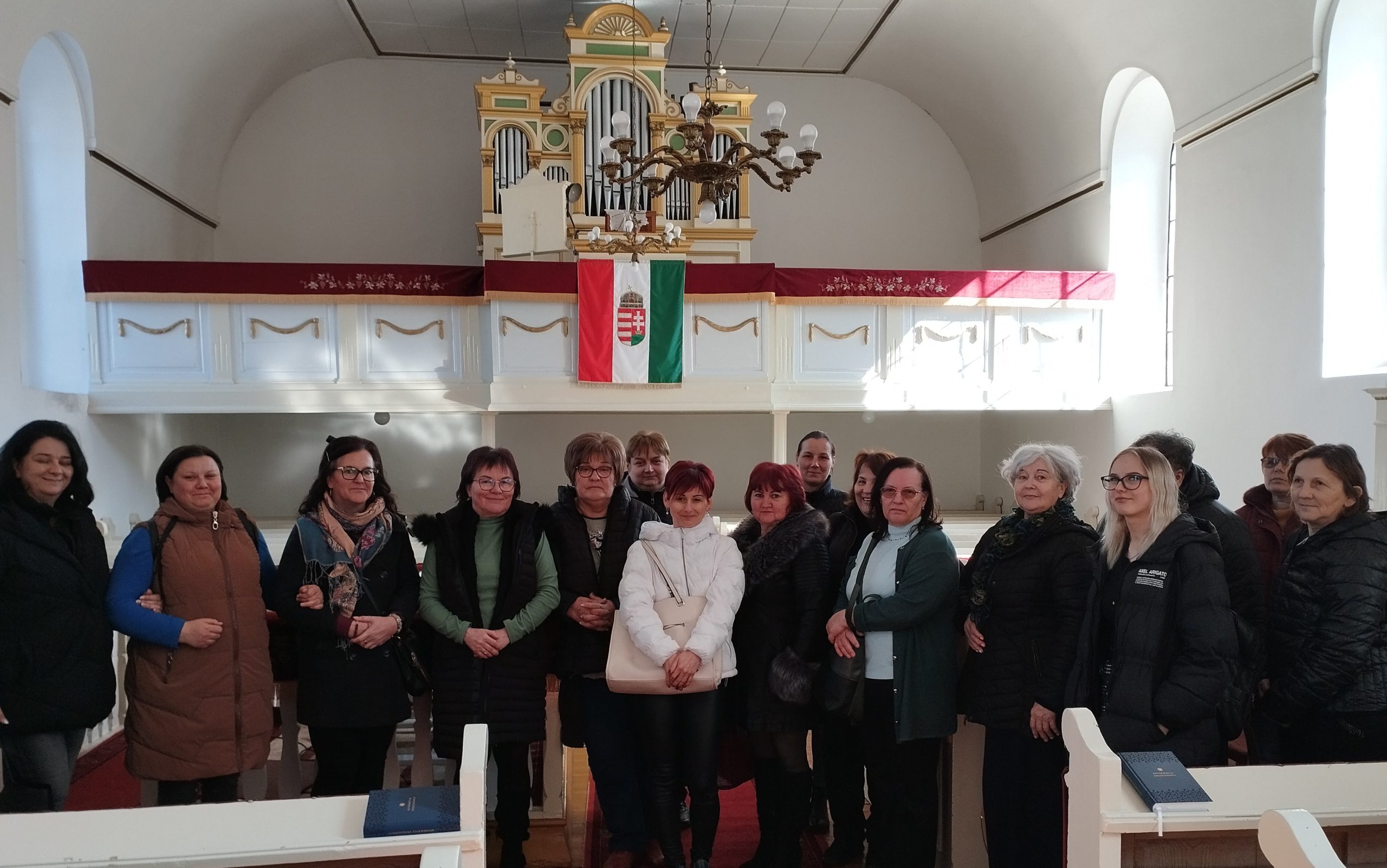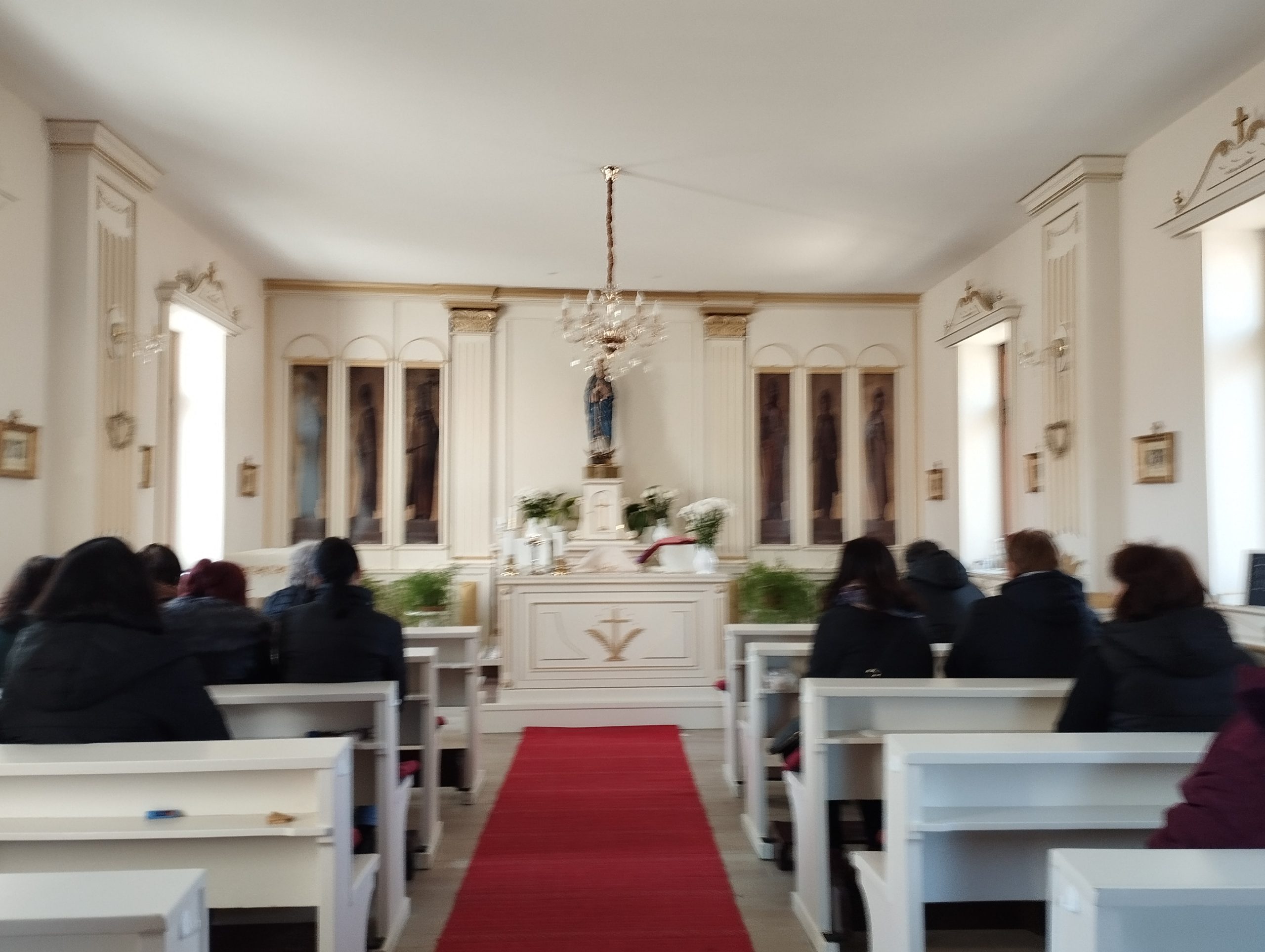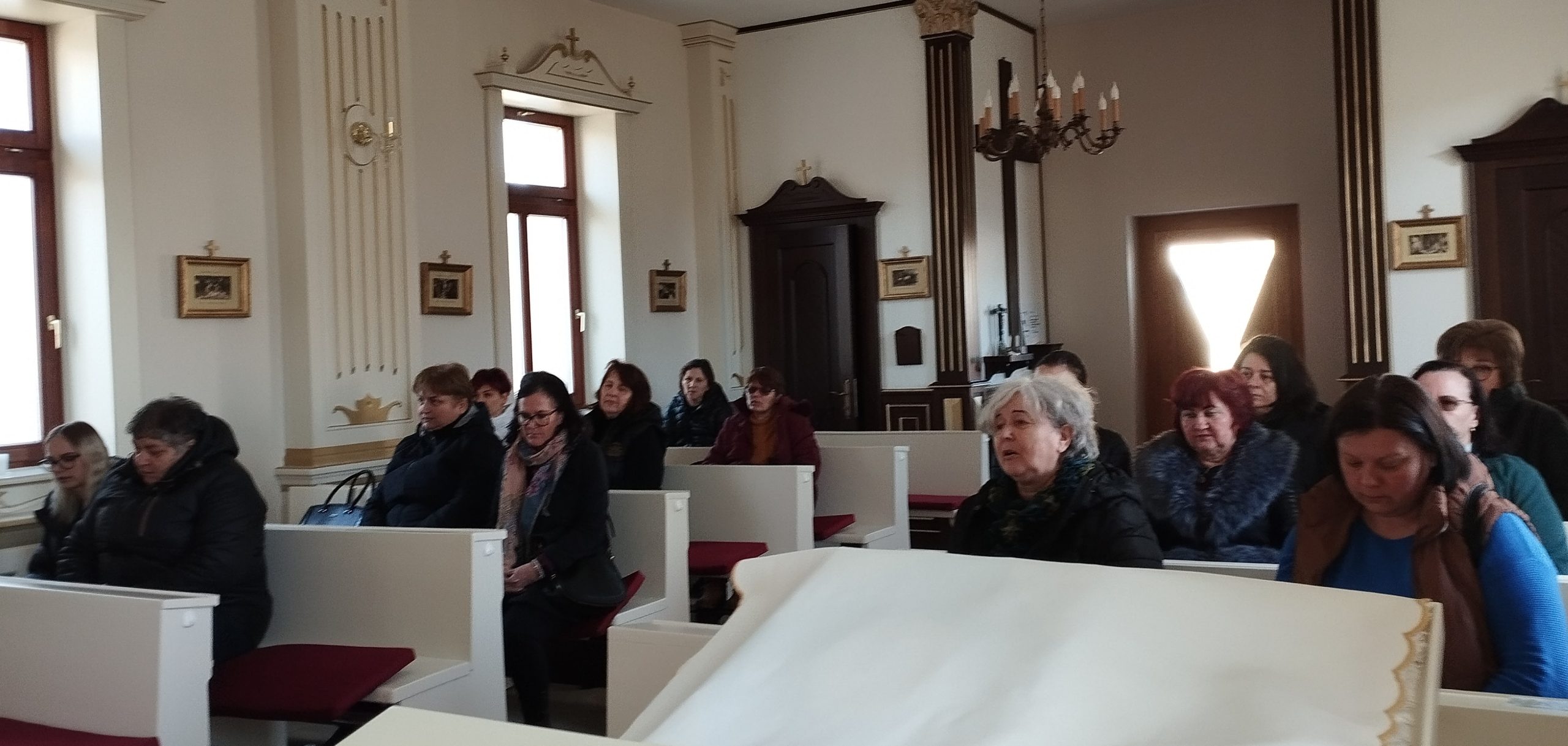 A múzeumból elsétáltunk a Szent István-kápolnába, ahol a kápolna történetének meghallgatása után egy tized rózsafüzért imádkoztunk Ferenc pápáért és a betegeinkért, majd pedig az 1802-ben épült református templom meglátogatása következett.