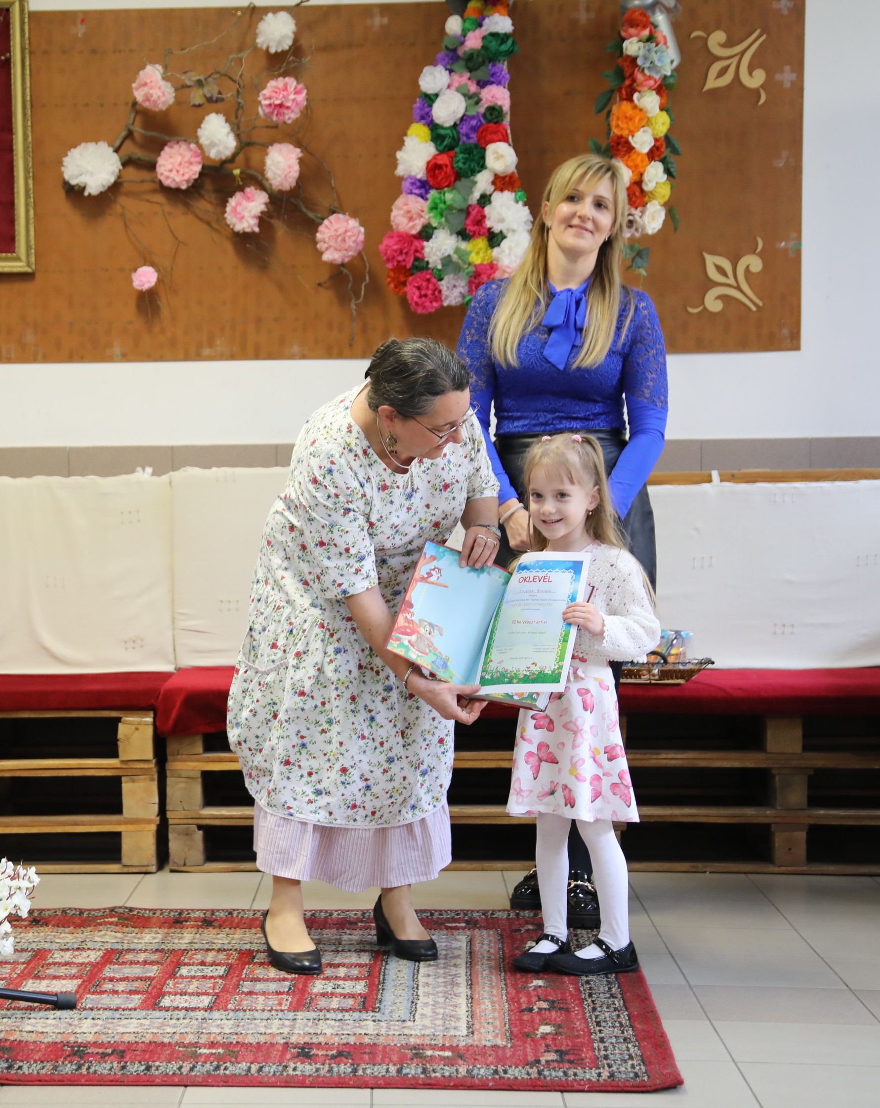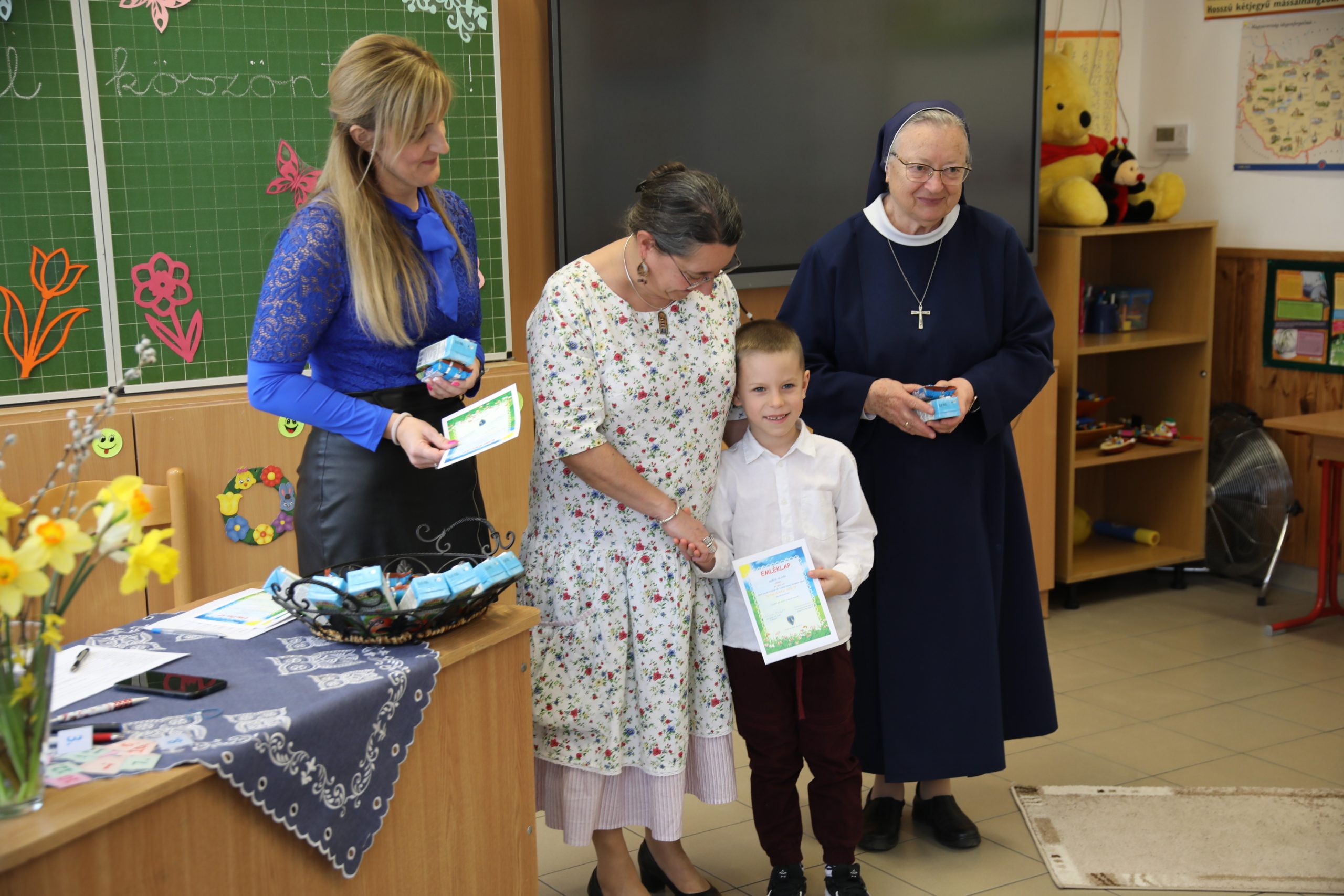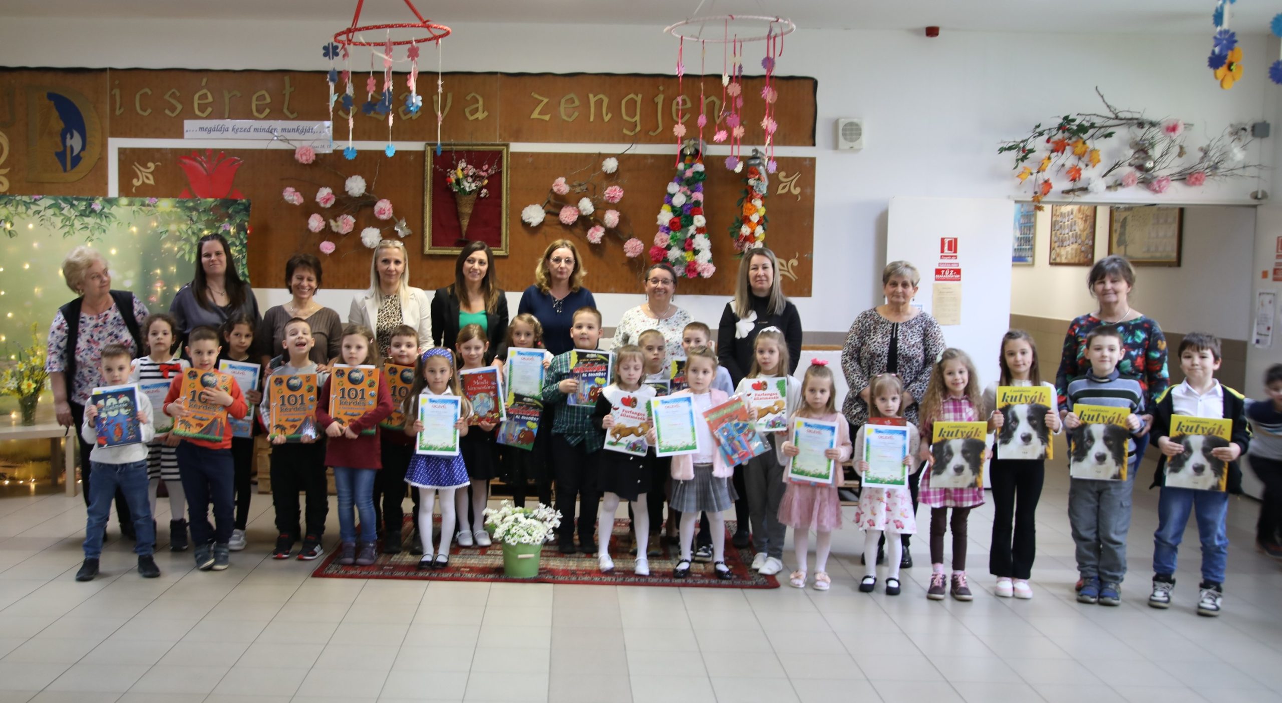 Amíg a versenyek zajlottak a felkészítő pedagógusok és a gyerekek kísérői a tavaszi díszbe öltözött tornateremben várták az óvodásokat. A megmérettetés után az apróságok az eredményhirdetésig kötetlen játékkal és színezéssel pihenték ki a verseny izgalmait. A főigazgató asszony emléklappal és ajándékkal köszönte meg a felkészítő nevelők munkáját. Ezt követte az eredményhirdetés, ahol az alábbi eredmények születtek: