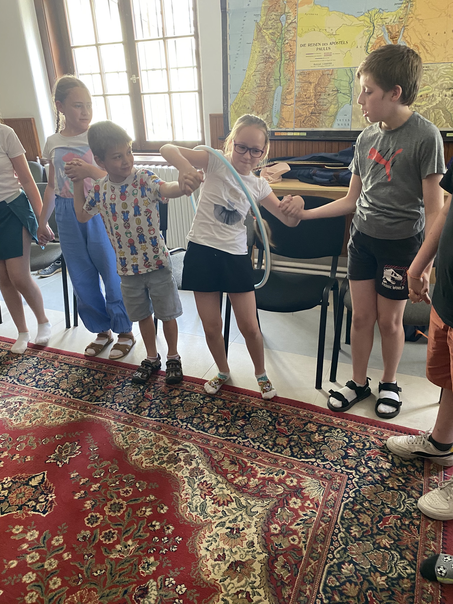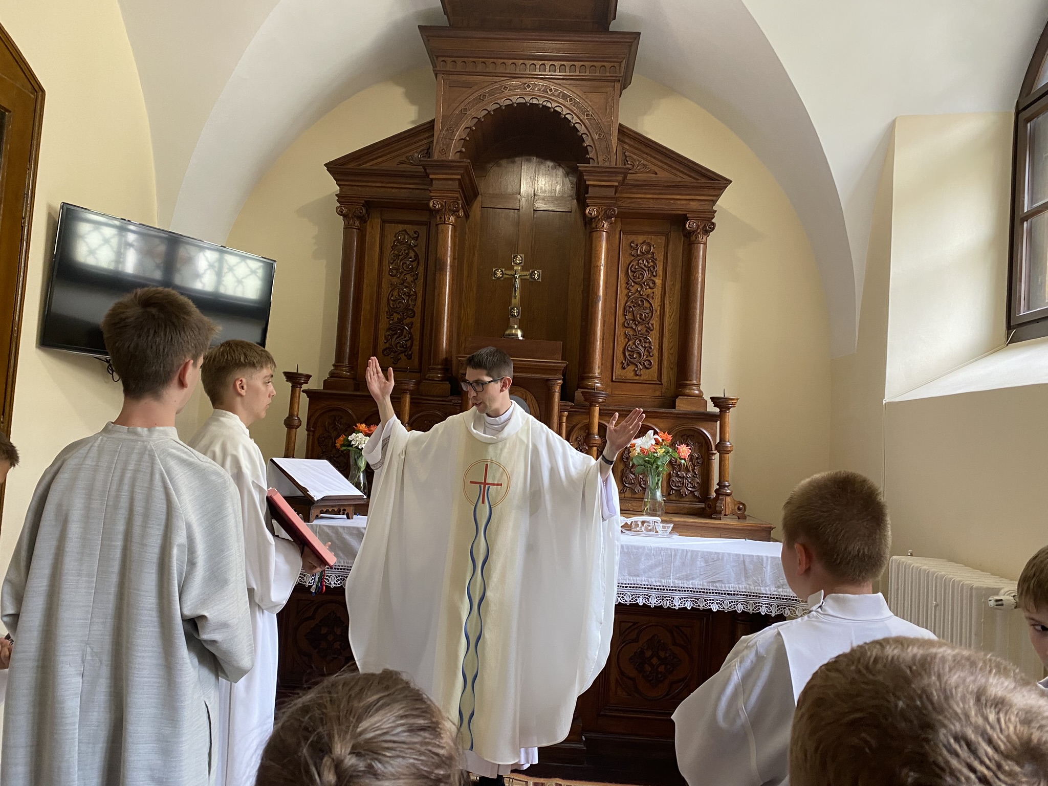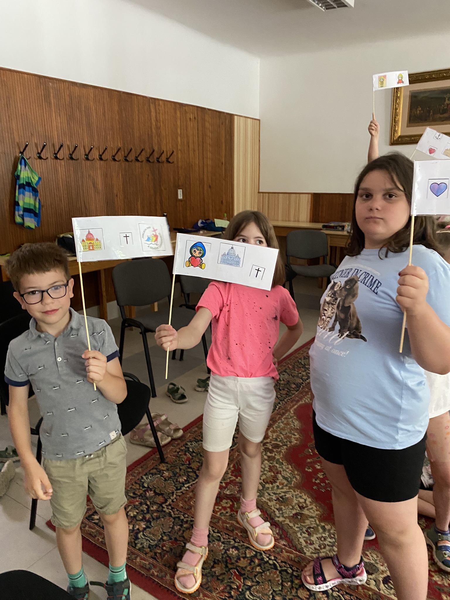 Hétfőn — rövid ismerkedés után — a Szentév történetével, üzenetével ismerkedhettek meg a gyerekek, és középpontba került a zarándoklatok lélekújító ereje. Egyéni zarándokzászlókat készítettek, zarándokutat jártak a gyermekek, melynek során kreatív feladatokat kellett megoldaniuk, végül fényképek készültek Luce-vel, a Szentév kabalafigurájával.