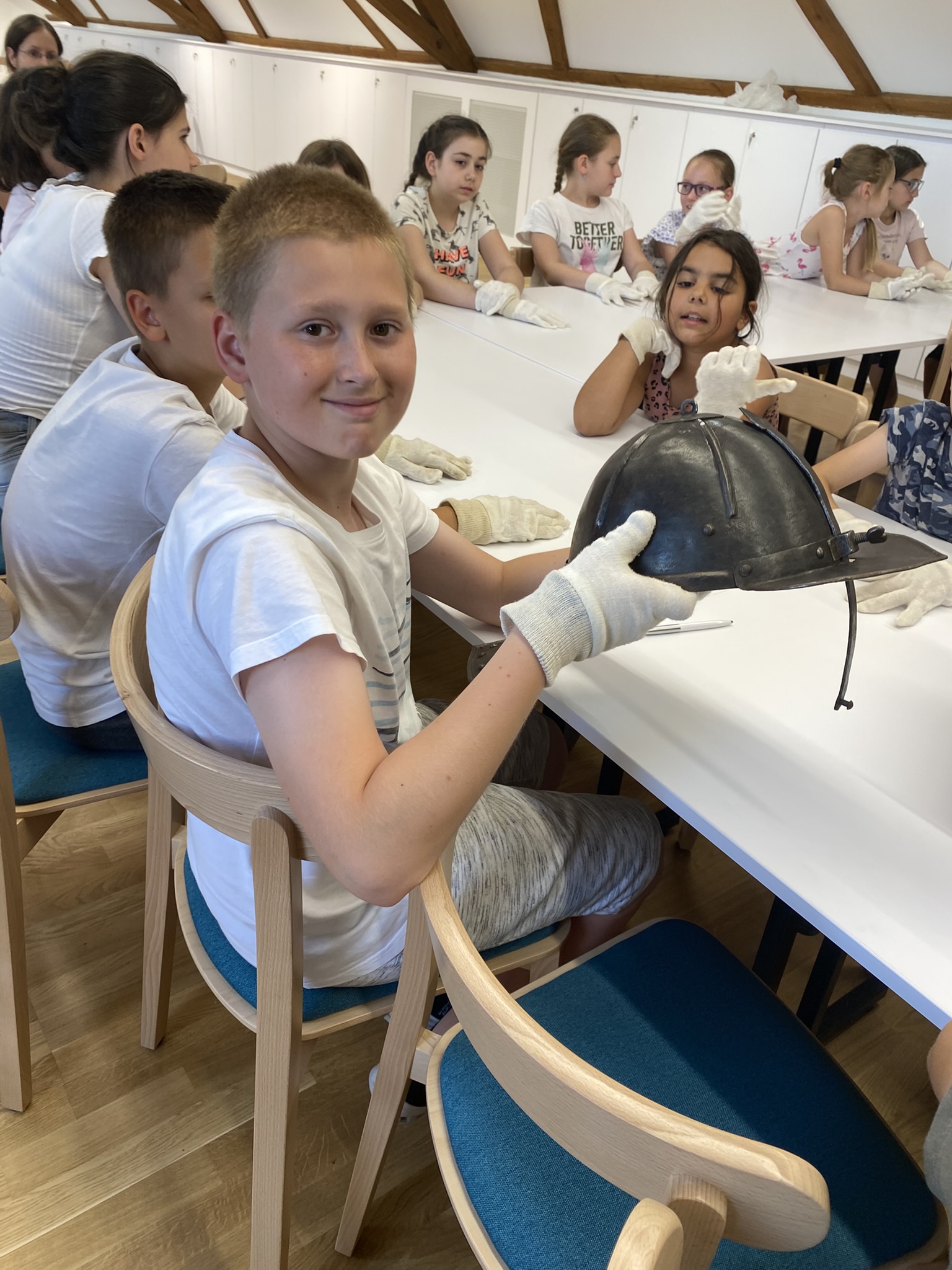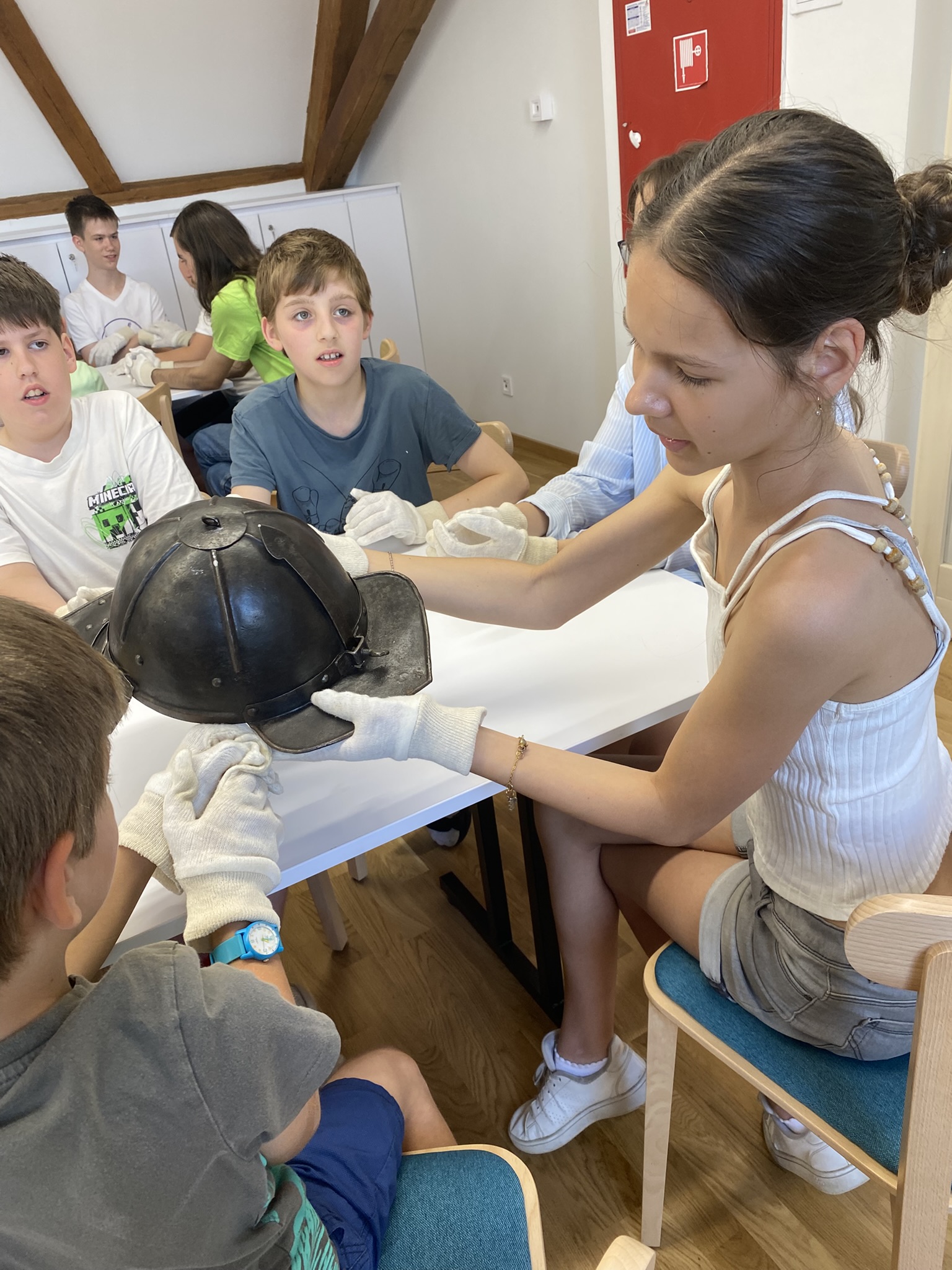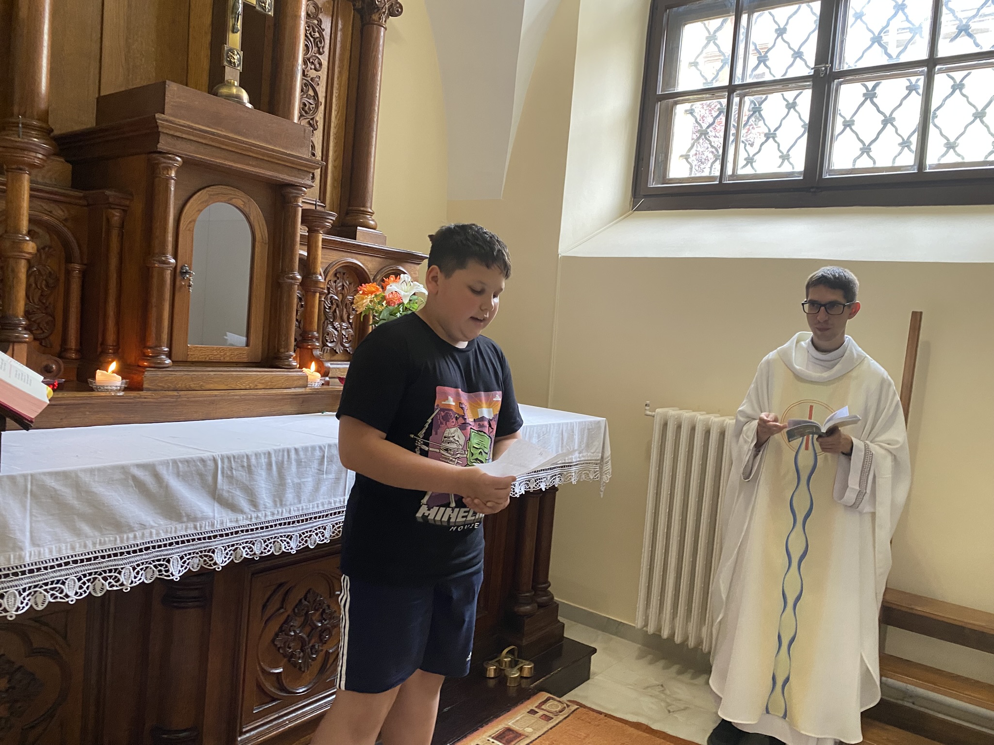 A csütörtökön Nyírbátorba kirándultunk, ahol részletesen bemutatták nekünk a Minorita templomot, az ott őrzött ereklyéket. Rövid ima után a Báthori István Múzeumban vettünk részt múzeumpedagógiai foglalkozáson a kiállítás (Őseink élete, szerzetesi cella) megtekintése előtt. Nagy élményt jelentett felnőttnek, gyereknek egyaránt, hogy a foglalkozás során igazi kardokat, páncélsisakot vehettünk a kezünkbe.