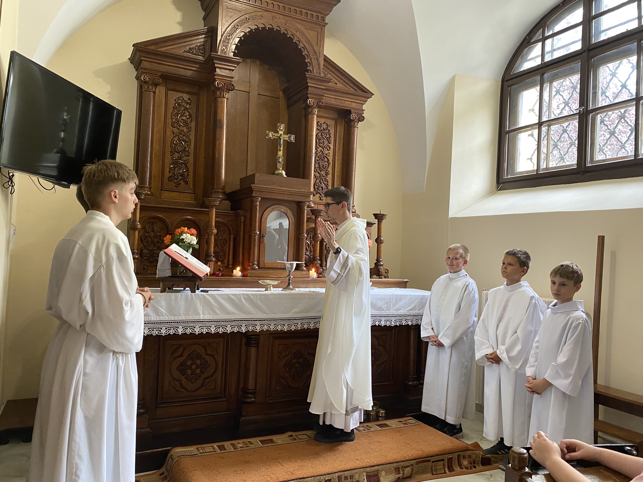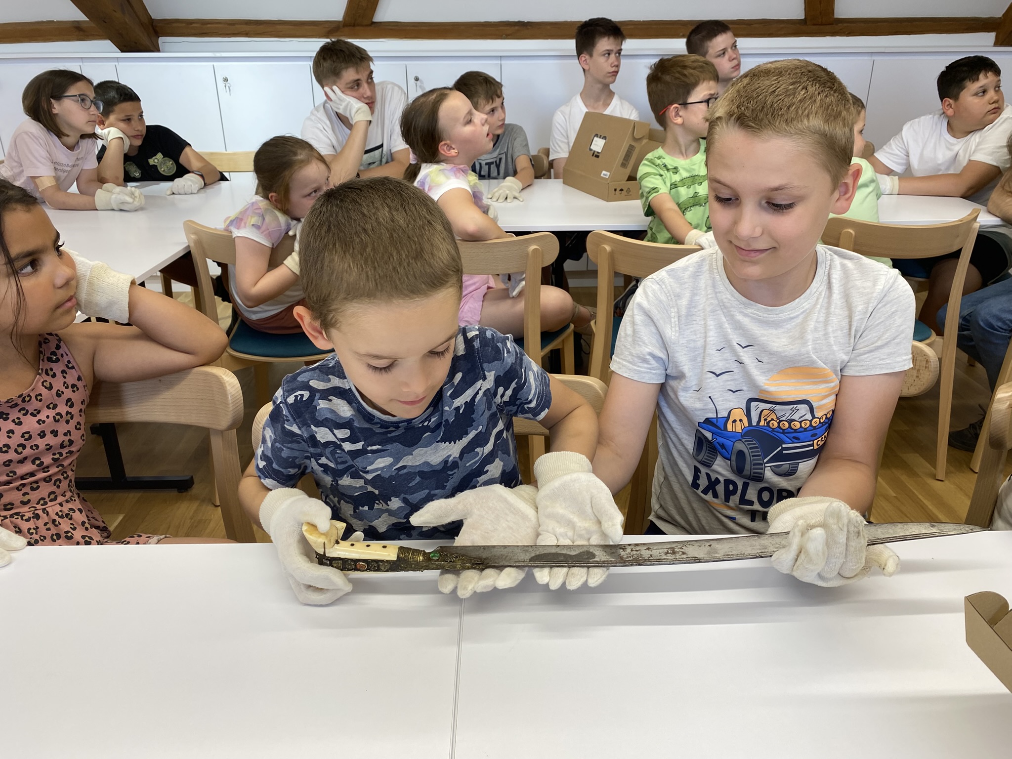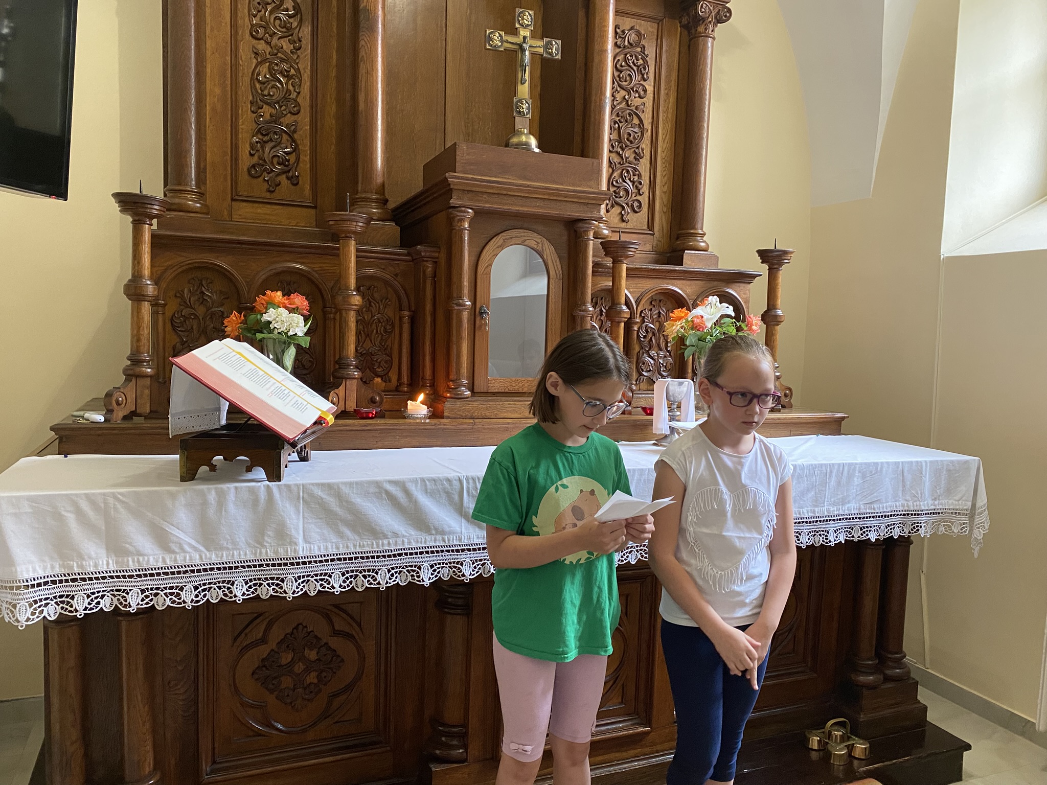 A csütörtökön Nyírbátorba kirándultunk, ahol részletesen bemutatták nekünk a Minorita templomot, az ott őrzött ereklyéket. Rövid ima után a Báthori István Múzeumban vettünk részt múzeumpedagógiai foglalkozáson a kiállítás (Őseink élete, szerzetesi cella) megtekintése előtt. Nagy élményt jelentett felnőttnek, gyereknek egyaránt, hogy a foglalkozás során igazi kardokat, páncélsisakot vehettünk a kezünkbe.