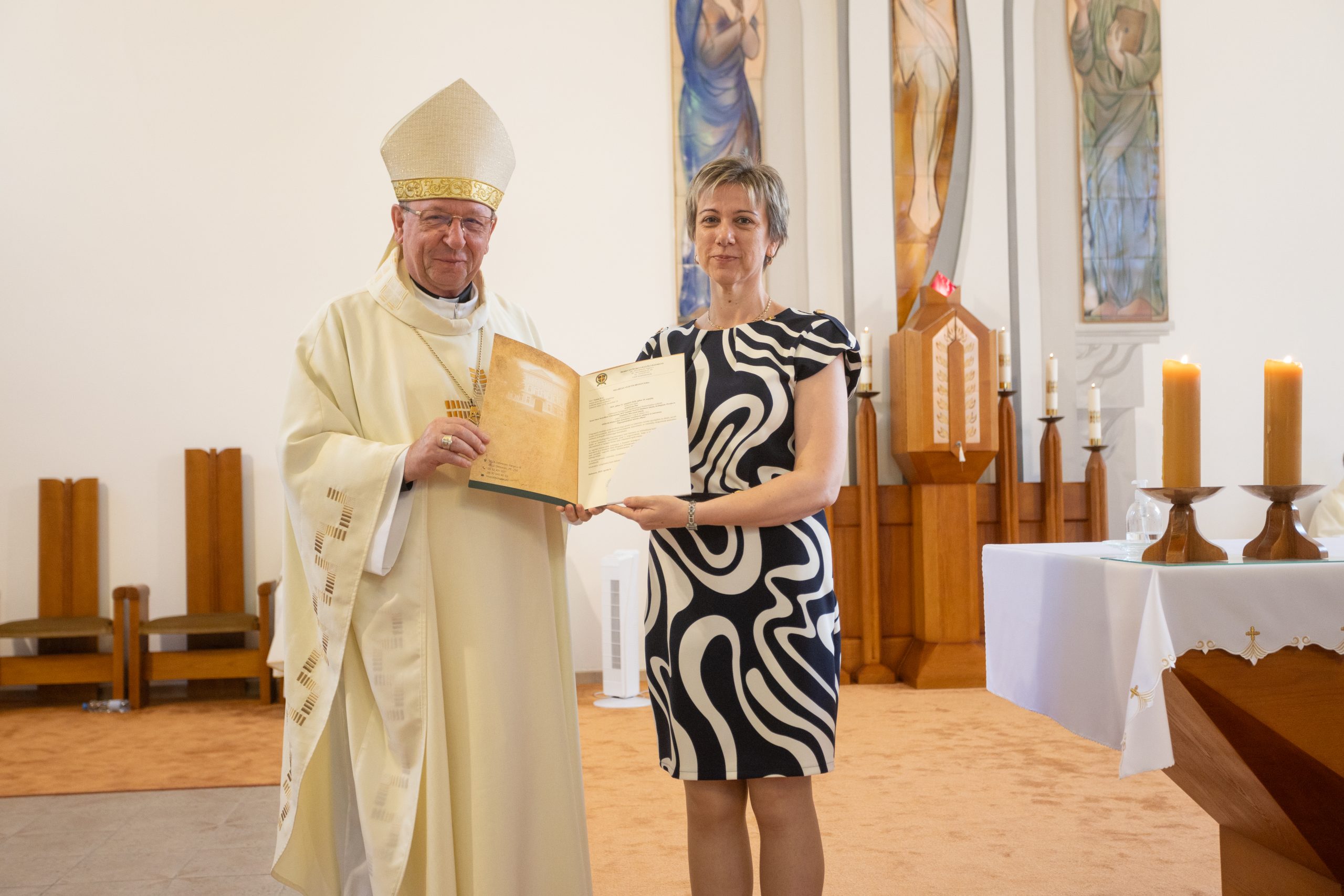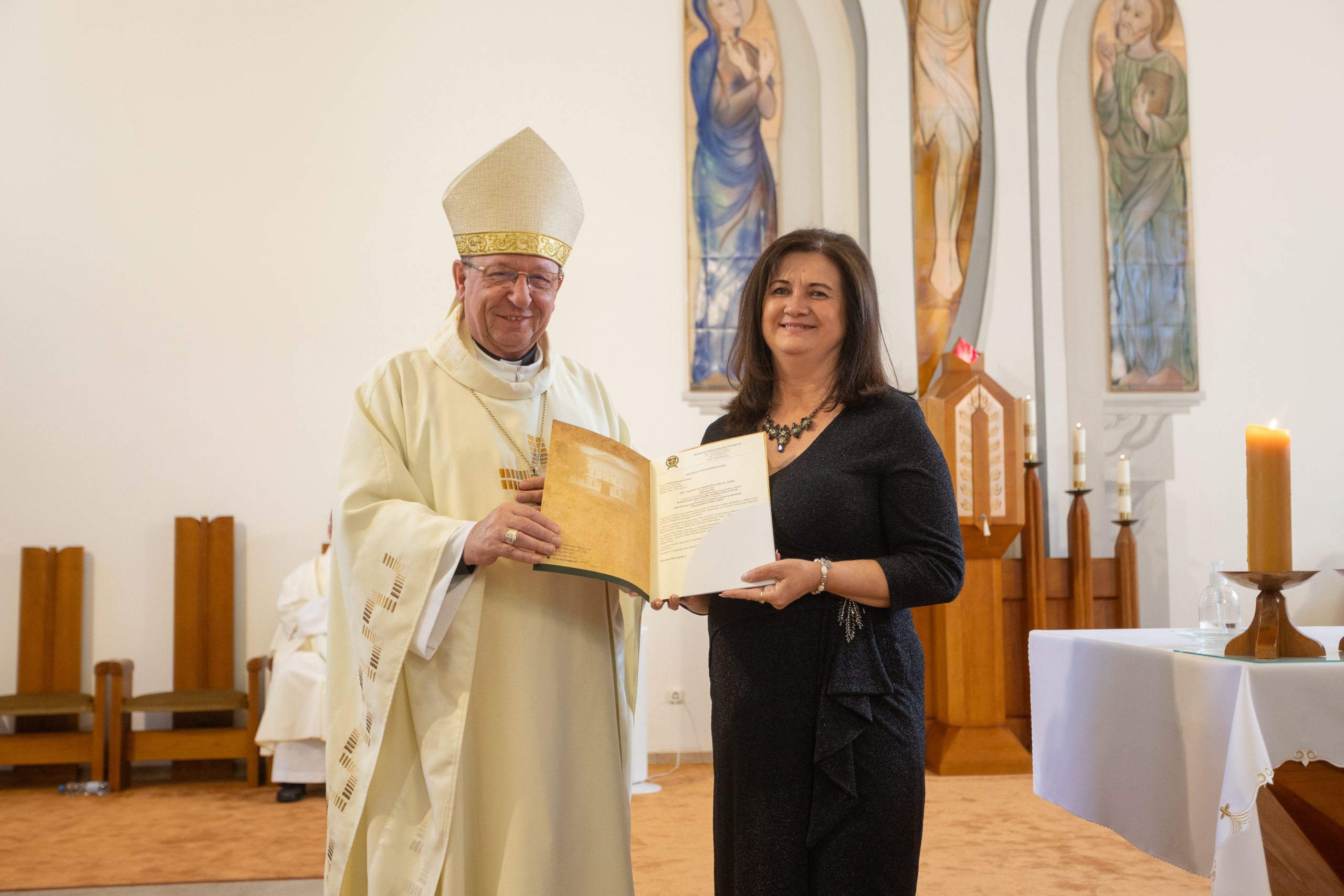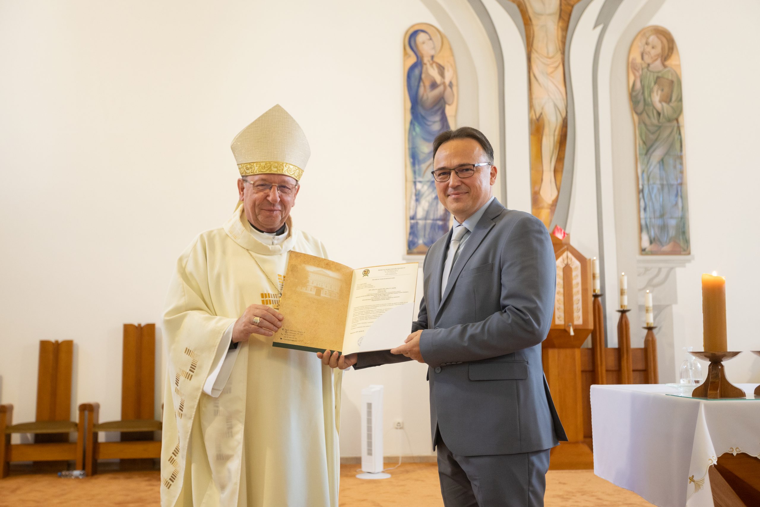 Az ünnepélyes alkalmon jelen voltak: Palánki Ferenc debrecen-nyíregyházi megyéspüspök, dr. Krakomperger Zoltán általános helynök, Heidelsperger István oktatásért felelős helynök, dr. Németh István püspöki titkár, az egyházmegyei köznevelési intézmények iskolalelkészei, Némethné Székely Julianna és Kovács István EKIF oktatási igazgatók, Béres Nándor egyházmegyei gazdasági igazgató, dr. Béres Diána egyházmegyei jogtanácsos, az egyházmegye köznevelési intézményeinek vezetői, munkatársai és a püspöki hivatal dolgozói.