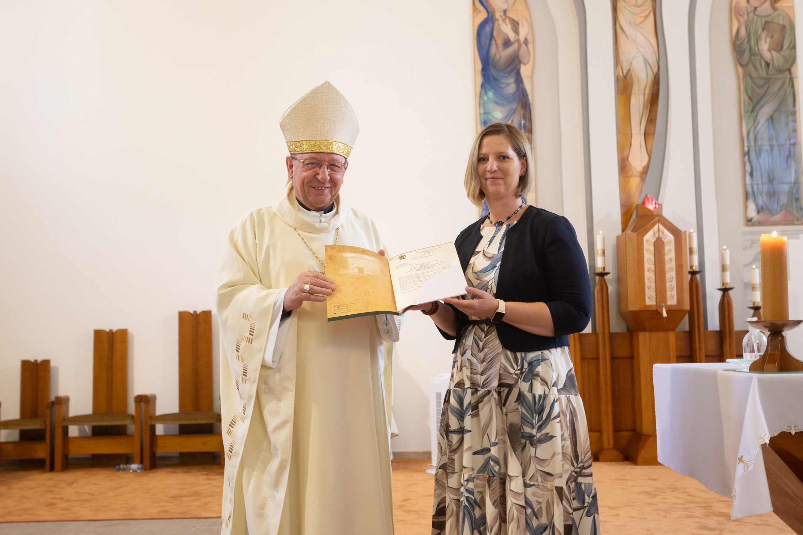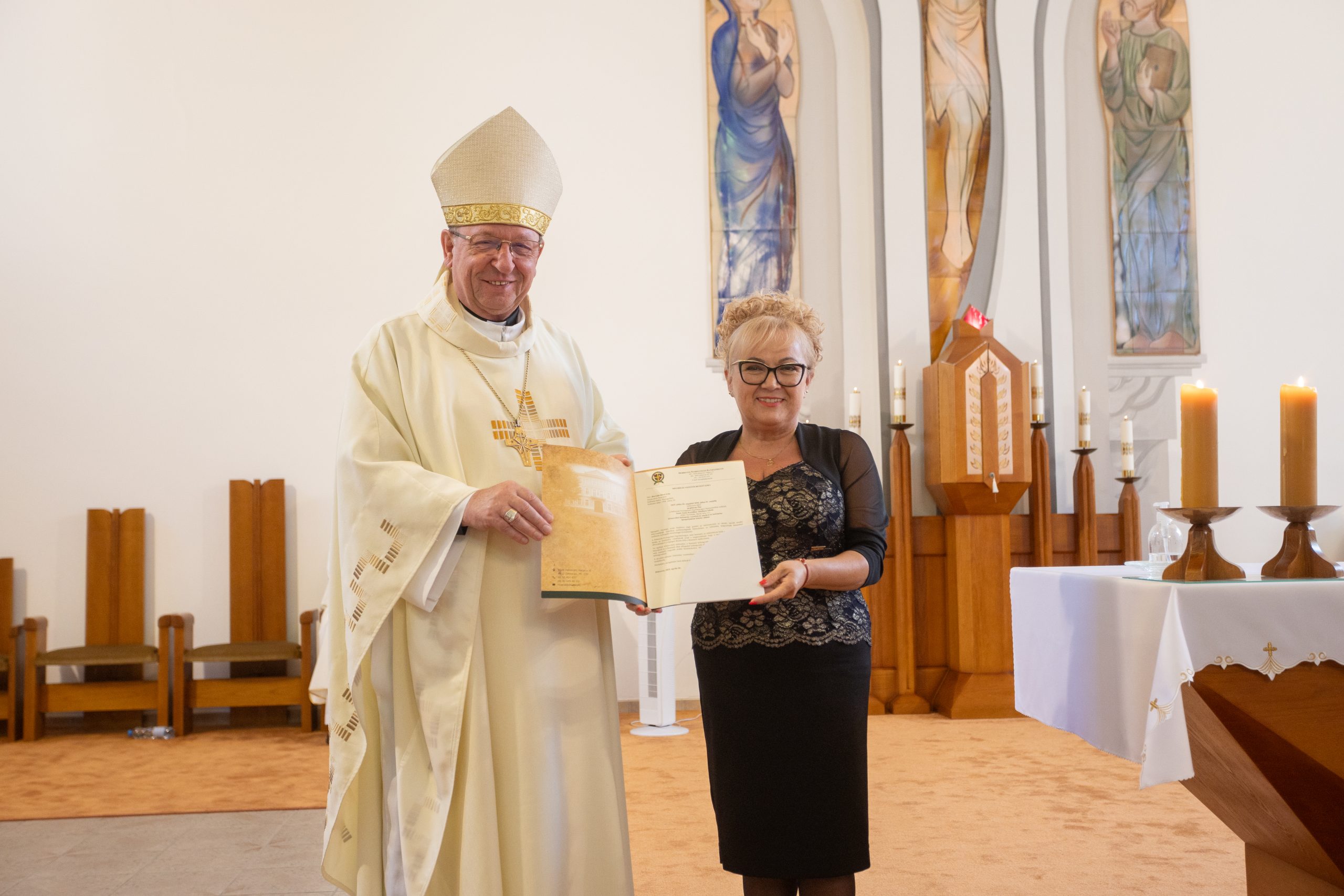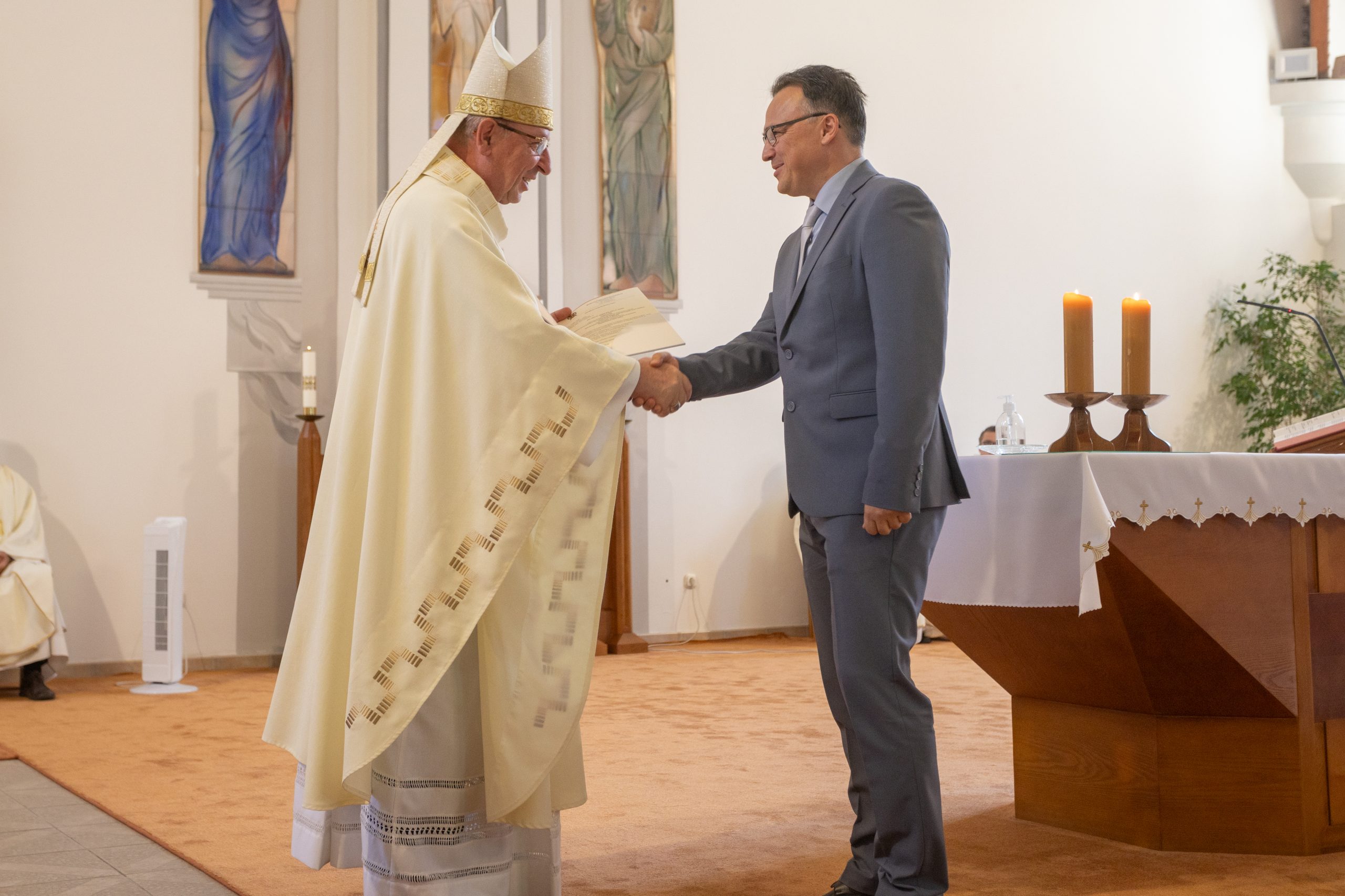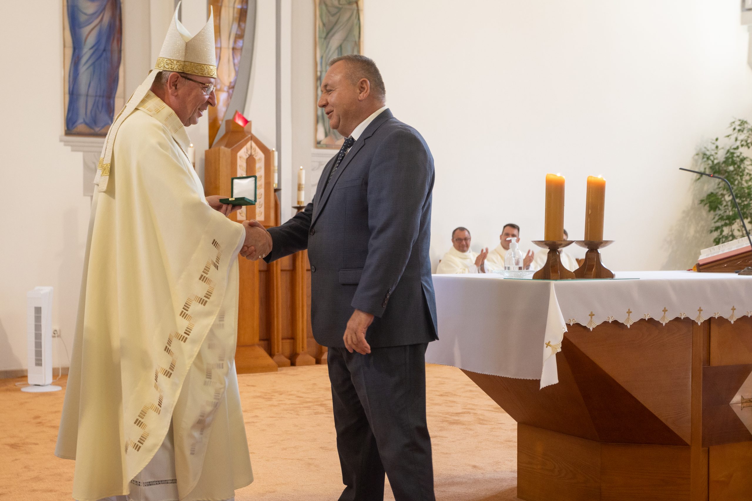Az ünnepélyes alkalmon jelen voltak: Palánki Ferenc debrecen-nyíregyházi megyéspüspök, dr. Krakomperger Zoltán általános helynök, Heidelsperger István oktatásért felelős helynök, dr. Németh István püspöki titkár, az egyházmegyei köznevelési intézmények iskolalelkészei, Némethné Székely Julianna és Kovács István EKIF oktatási igazgatók, Béres Nándor egyházmegyei gazdasági igazgató, dr. Béres Diána egyházmegyei jogtanácsos, az egyházmegye köznevelési intézményeinek vezetői, munkatársai és a püspöki hivatal dolgozói.