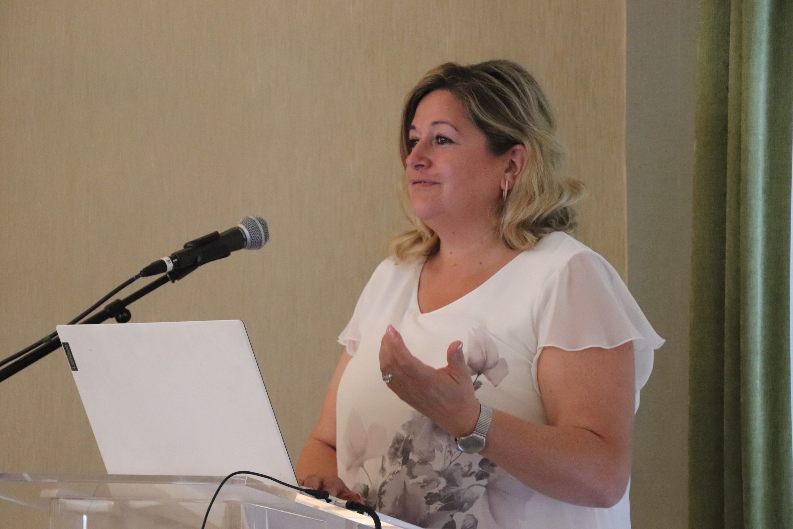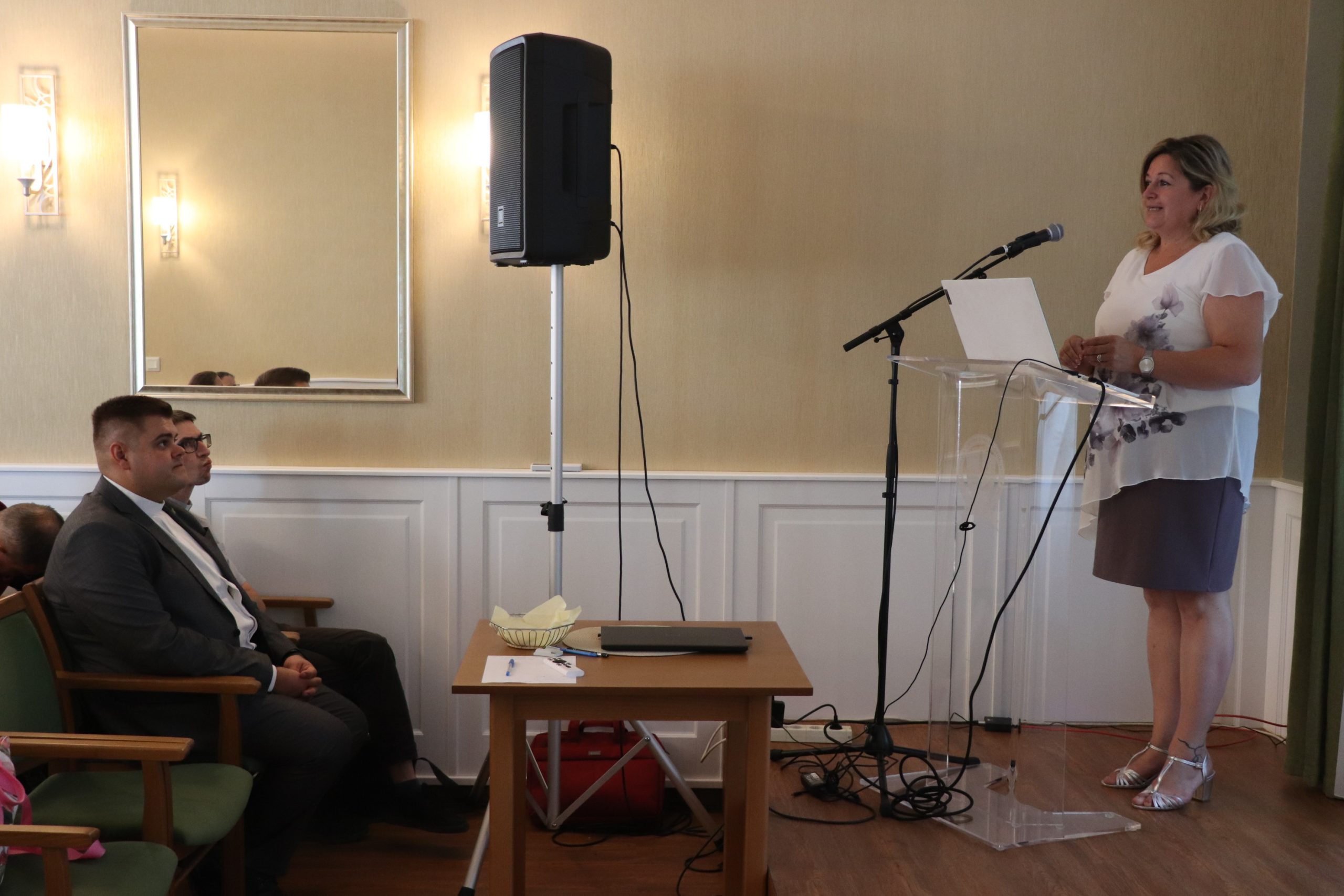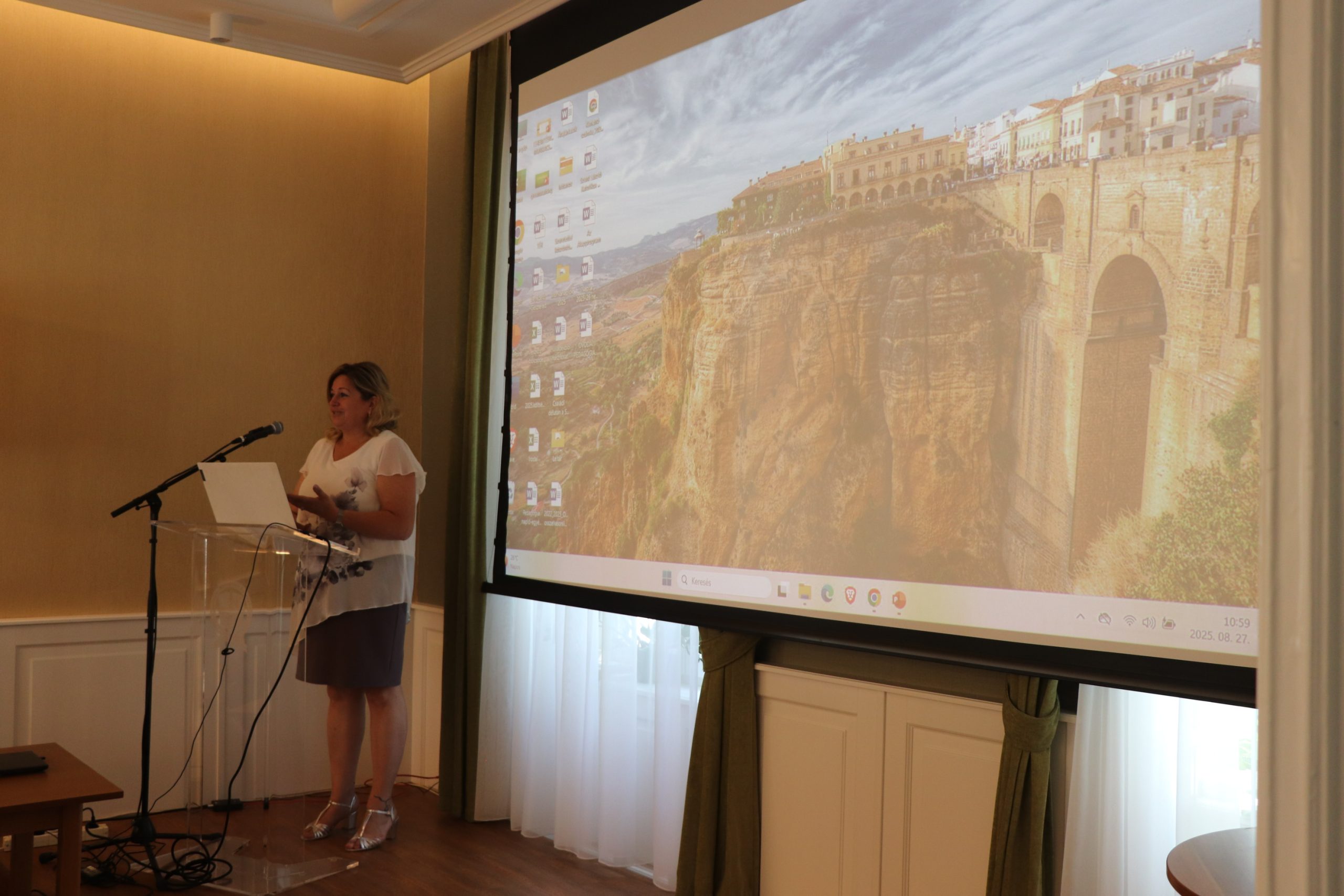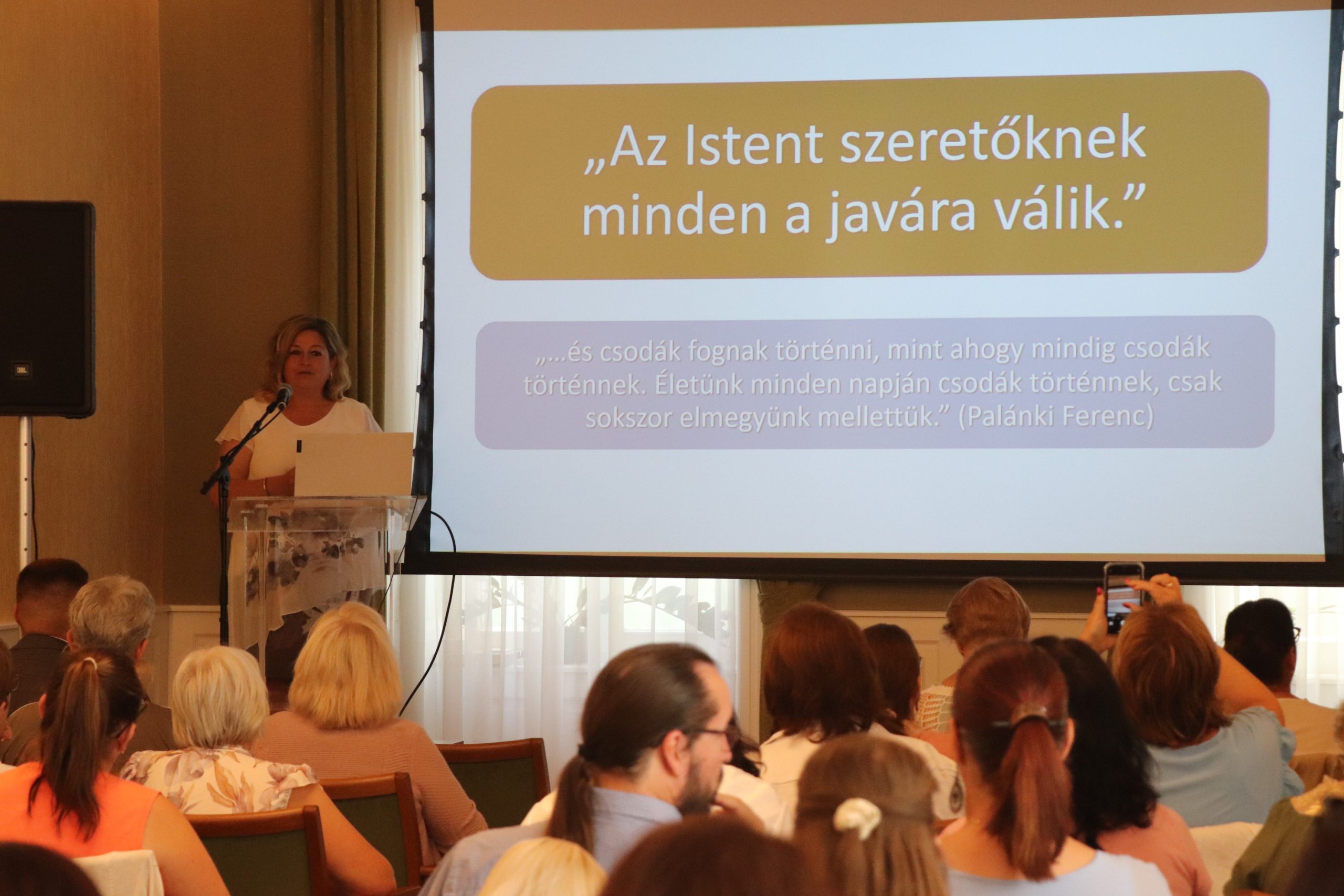 A továbbiakban Dudásné Popovics Angéla, óvodapedagógus, differenciáló-fejlesztő pedagógus, szaktanácsadó, a kisvárdai Szent László Katolikus Gimnázium, Technikum, Két Tanítási Nyelvű Általános Iskola, Kollégium, Óvoda és Bölcsőde óvodavezetője A neurodivergens gyermekek, fiatalok a közoktatásban címmel tartott fontos információkat nyújtó, hallgatóságát érzelmileg is megérintő előadást. A téma, az átlagostól eltérő idegrendszerű gyermekkekkel való foglalkozás – köztük az úgynevezett szenzoros gyermekekkel, akiknek az idegrendszere bizonyos ingereket nem képes feldolgozni, és akik óvodáinkban akár 16 %-ban is jelen vannak – jól illeszkedik keresztény küldetésünkhöz, a periférián lévők, nehézségekkel küzdők szeretetteljes és hozzáértő segítésének ügyéhez.