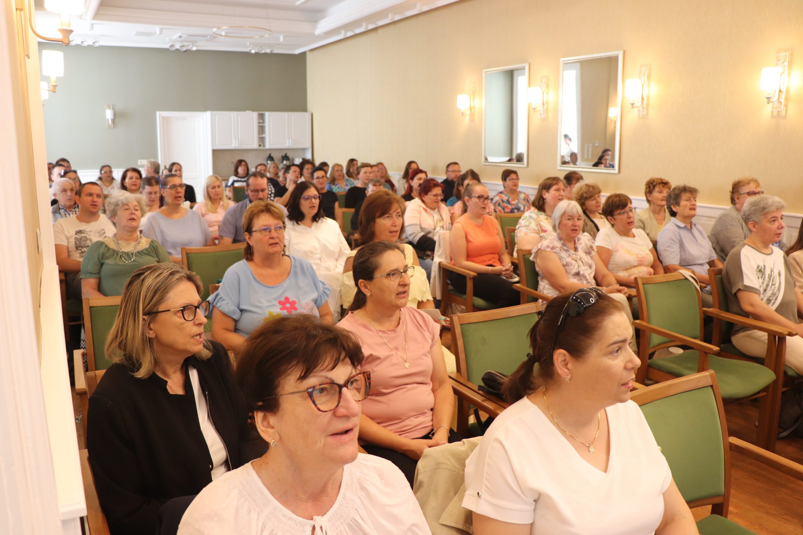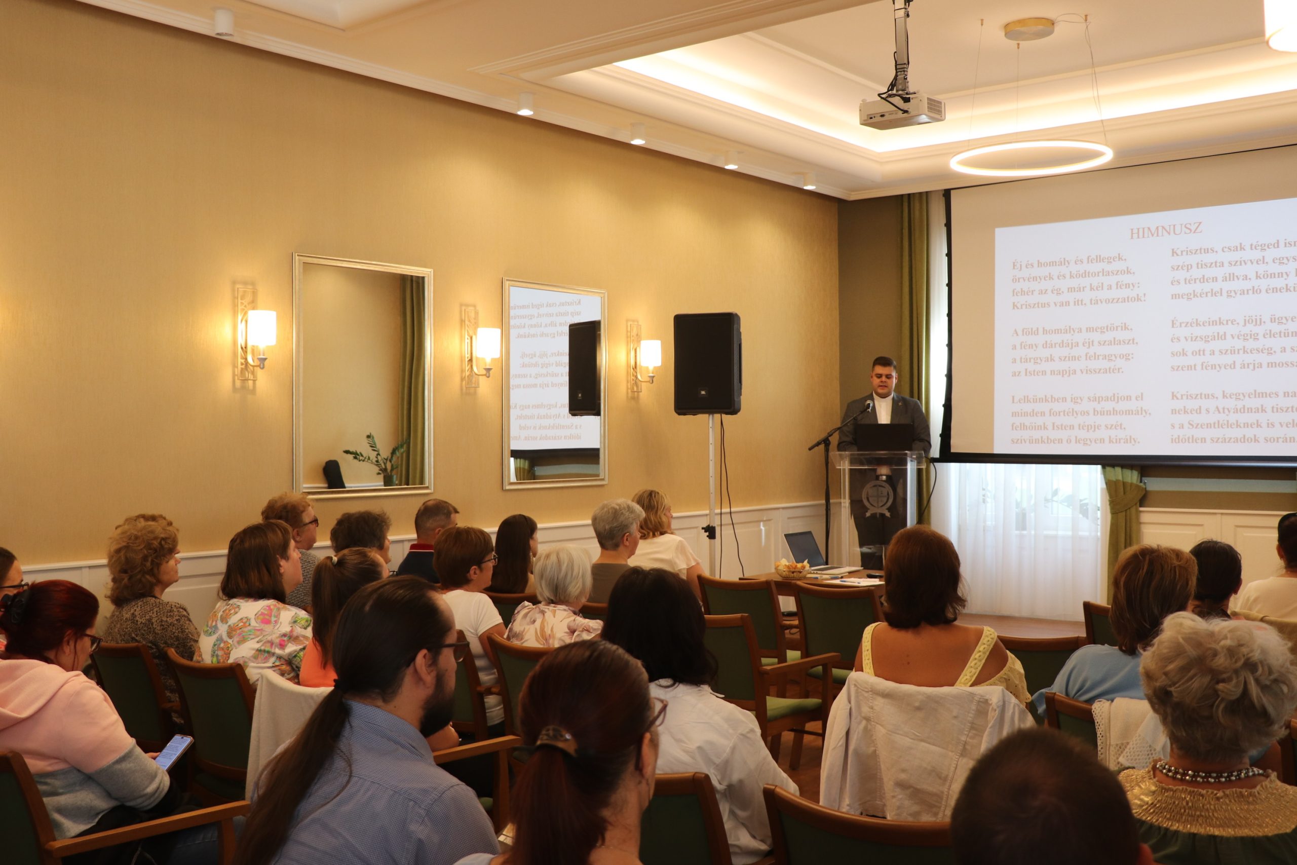Megtudhattuk, hogy a 2024/25-ös tanévben a Debrecen-Nyíregyházi egyházmegyében 233 közoktatási intézményben 11273 gyermek, illetve tanuló vett részt római katolikus hitoktatásban 136 hitoktató közreműködésével. Lelkesen fogadtuk a hírt, hogy az előttünk álló tanévben is megrendezzük a sokak által várt egyházmegyei szavaló, hittan- és rajzversenyt, valamint a harangodi gyermeknapot. Záró gondolataiban Németh István atya elismeréssel szólt a hitoktatók munkájáról, és nyomatékosan felhívta figyelmünket katolikus iskoláink jövő nemzedékek kereszténnyé nevelésében játszott elvitathatatlan szerepére, kérve a hitoktatókat ezek támogatására, nemkülönben a papi hivatások ügyének szem előtt tartására, majd az „O. A. M. D. G.”, „Mindent Isten nagyobb dicséretére!” felirattal indított útnak minket.
