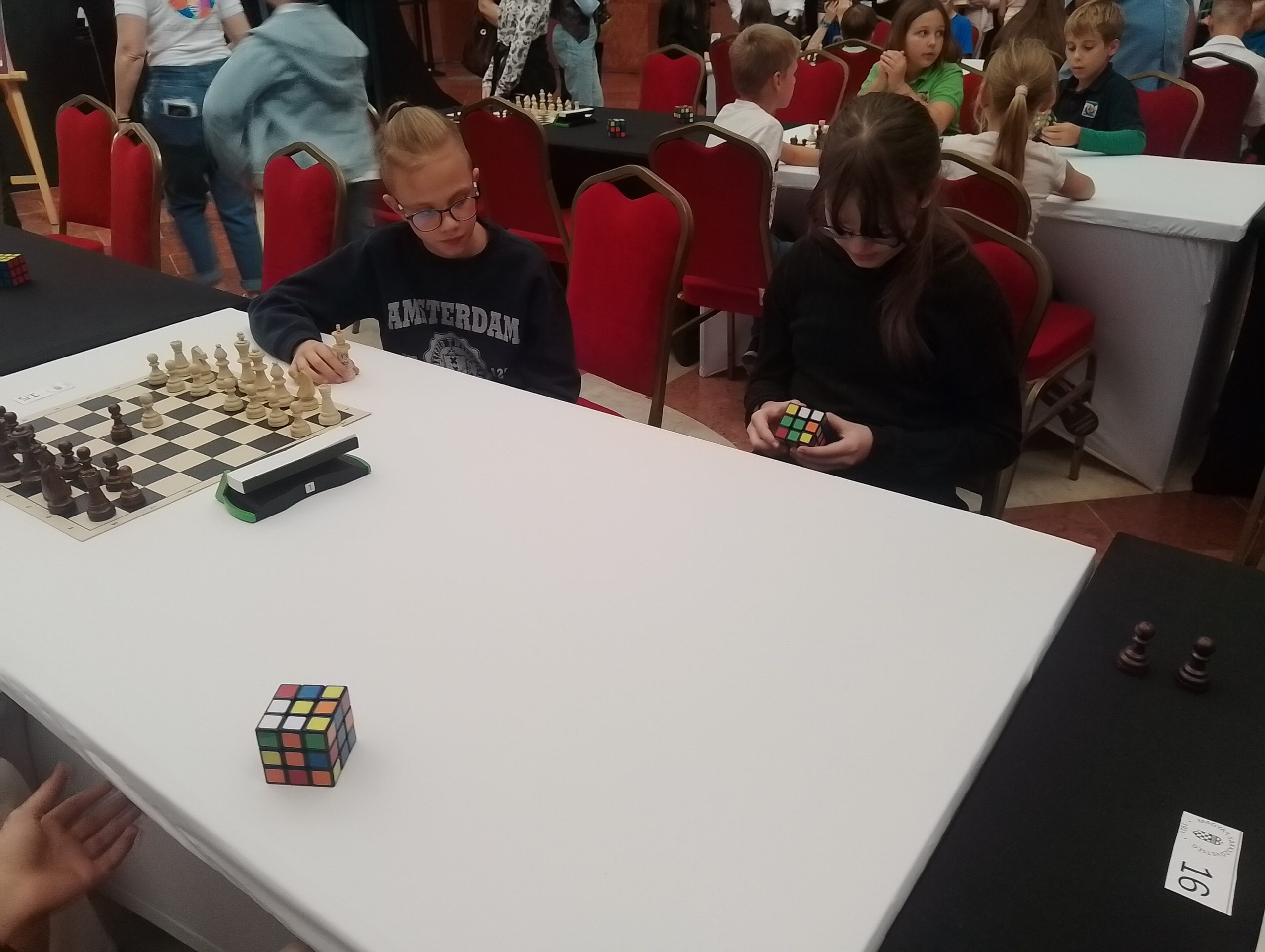 Személyesen is találkoztak Polgár Judit nagymester, sakkolimpiai bajnok, oktatási nagykövettel, akivel fényképet is készítettek és autogramot is kaptak tőle. A fesztivál egyik legnagyobb újdonsága a RubikSakk volt, amely a sakk stratégiai elemeit ötvözi a Rubik-kocka logikai kihívásaival. Ez a vegyes páros csapatjáték különleges élményt nyújtott a résztvevőknek, így a mi csapatunknak is. A fesztiválon számos érdekes program zajlott, többek között, Polgár Judit és nővérei szimultánt adtak, amely különleges élményt jelentett. A látogatók különböző kalandpályákon vehettek részt, amelyek a sakk és a logikai gondolkodás fejlesztésére összpontosítottak.