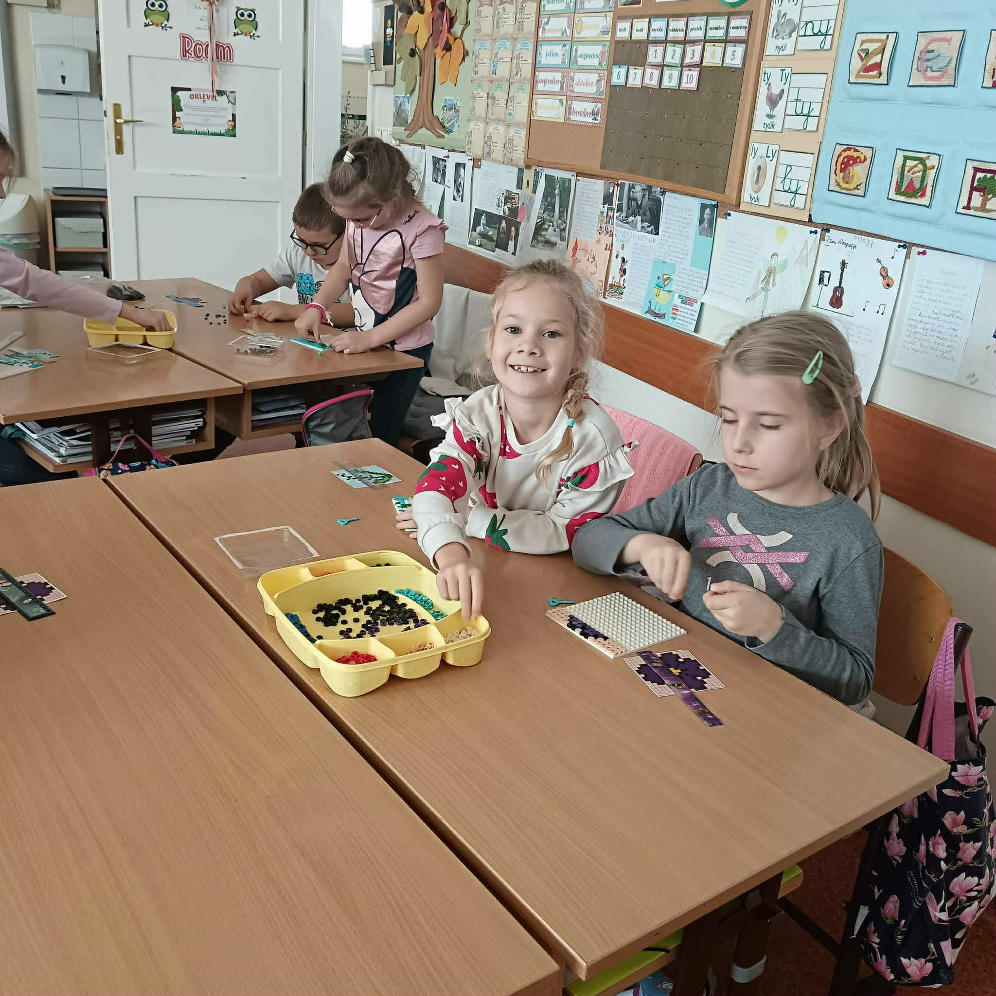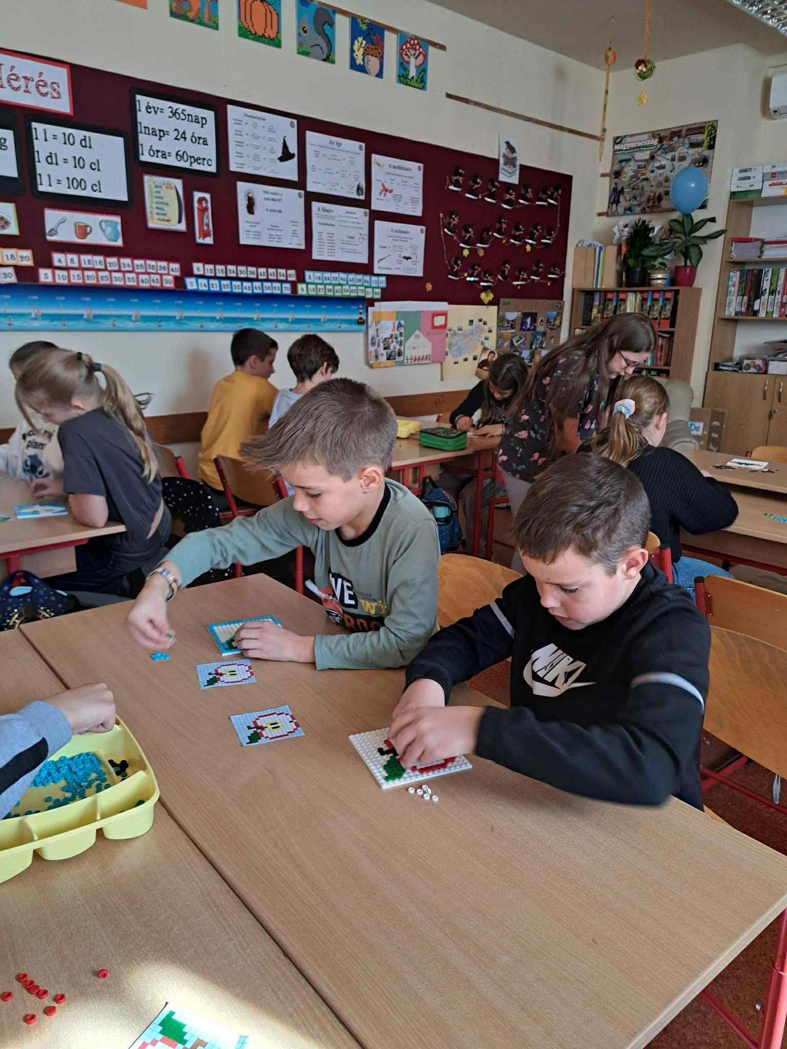 Az alsó tagozatos gyerekek november hónapban izgatottan, egy különleges projektbe fogtak. Apró LEGO darabkákból készített, az őszhöz kapcsolódó mozaikképeket az 1.a, 2.a, 3.b és a 4.b osztályos gyerekek. A feladat nemcsak türelmet, hanem kitartást is igényelt – a végeredmény pedig minden várakozást felülmúlt. A nyíregyházi LEGO gyár munkatársai is ellátogattak iskolánkba, akik a Játékon keresztüli tanulás élményét hozták el a gyerekeknek. A LEGO Csoport Helyi Közösségi Szerepvállalás programjának központjában az áll, hogy minden gyermeknek joga van a játékhoz. Az önfeledt játék, a játékos tanulás élménye a legfontosabb és leghatékonyabb módja olyan készségek elsajátításának, amelyekre a gyerekeknek a jövőben nagy szüksége lesz. Ilyen lehet a problémamegoldás, a kreativitás, a kommunikációs készségek, a kritikai gondolkodás vagy a csoportos, közös munka. A projekt során a gyerekek előre megkapott minták alapján, „pixelről pixelre” rakták össze a képet. Egymás mellé illesztették az apró elemeket, figyelve a színekre, formákra és a pontos elhelyezésre. A munka eleinte nehéznek tűnt, de hamar kiderült, hogy együtt sokkal könnyebb és élvezetesebb alkotni.