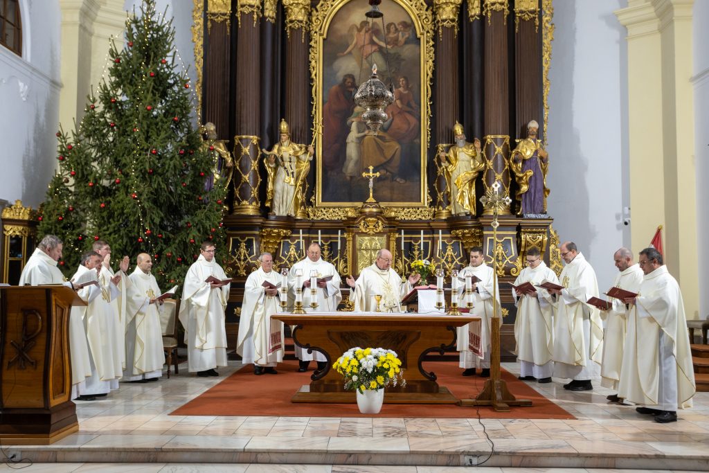 A nap szentmisével vette kezdetét, amelyet Palánki Ferenc megyéspüspök mutatott be és koncelebrált Heidelsperger István, Dr. Krakomperger Zoltán és Csordás Gábor helynök atyák, Dr. Németh István püspöki titkár valamint az egyházmegye oktatási és szociális intézmények lelki vezetői.