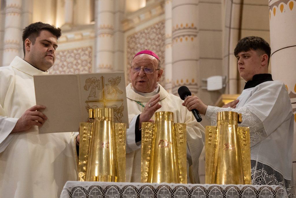 Az olajszentelési szentmise a szent három nap ünneplésének első állomása. A liturgián a papság fogadalomtételen kívül sor került a keresztelendők és a betegek olajának, valamint a – keresztség, bérmálás, egyházi rend kiszolgáltatásakor, illetve templomszenteléskor használatos – krizma megszentelésére.