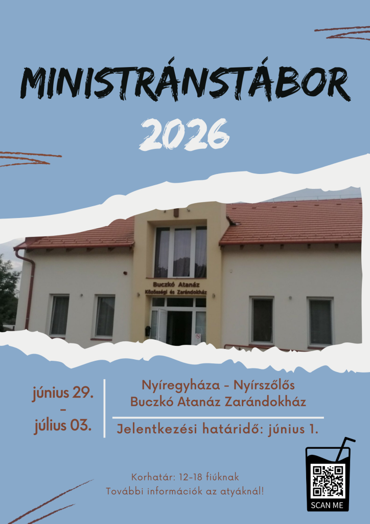 Szeretettel hívunk és várunk mindenkit az egyházmegyei nyári ministránstáborba is, amelyre már elérhető a jelentkezés a plakáton található QR kód segítségével.