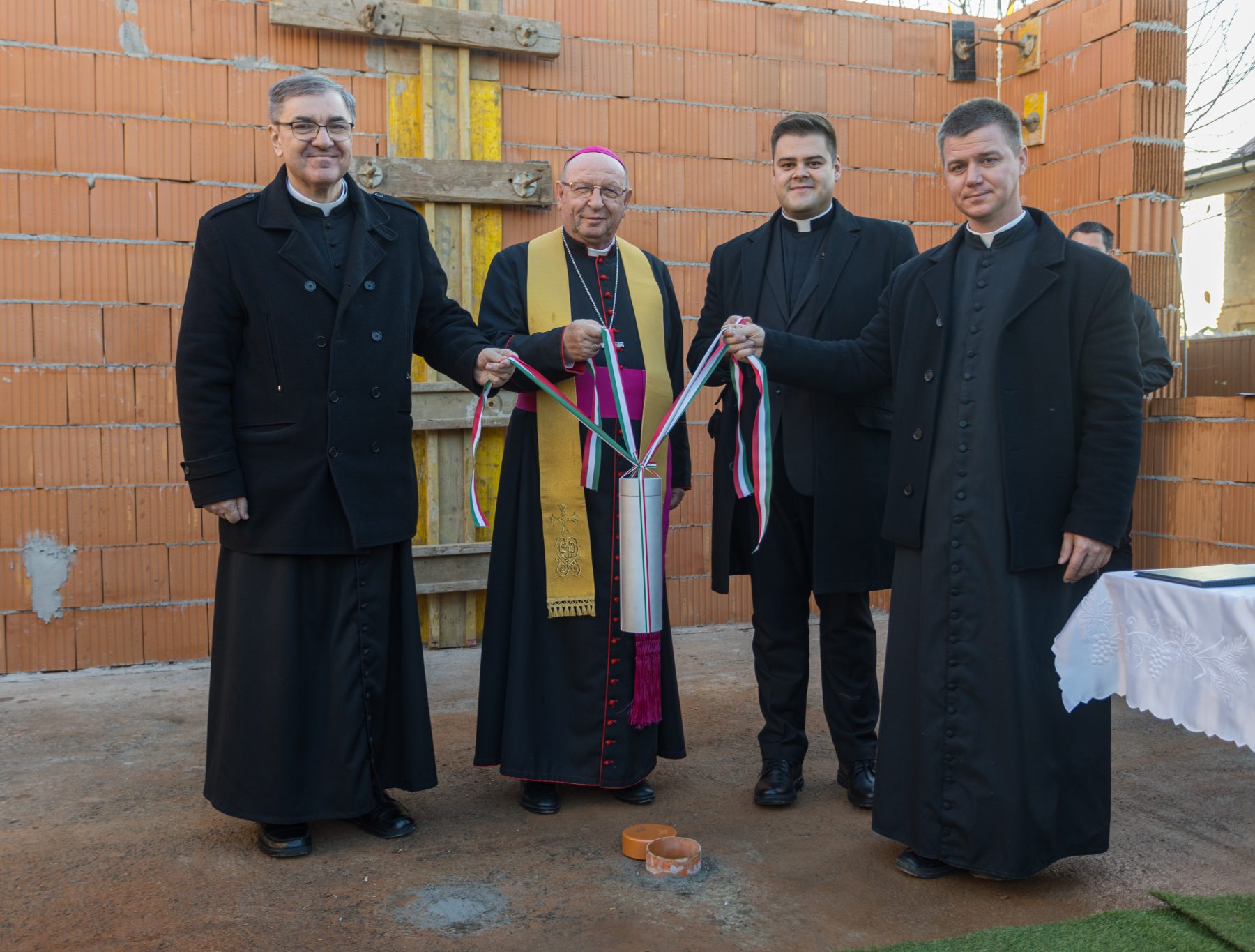 Palánki Ferenc megyéspüspök megáldotta az épülő dombrádi plébánia és közösségi ház alapkövét